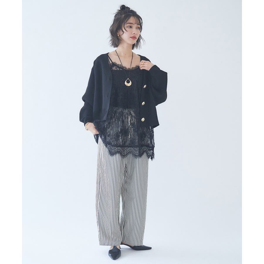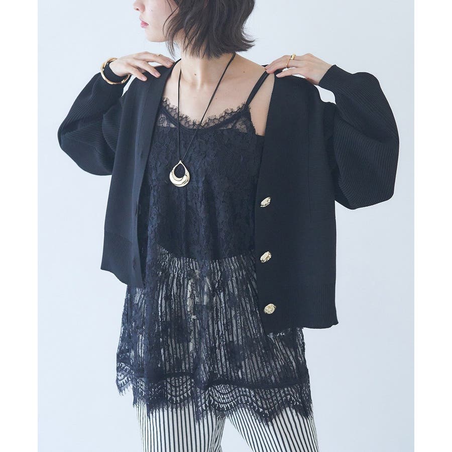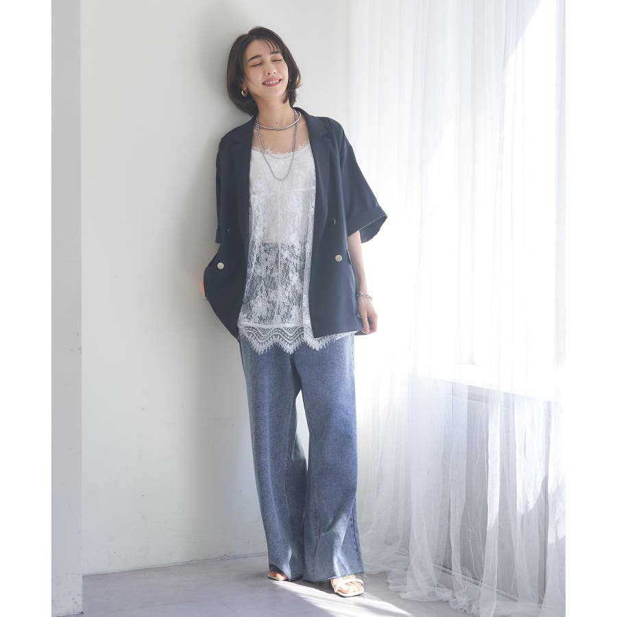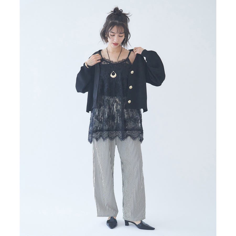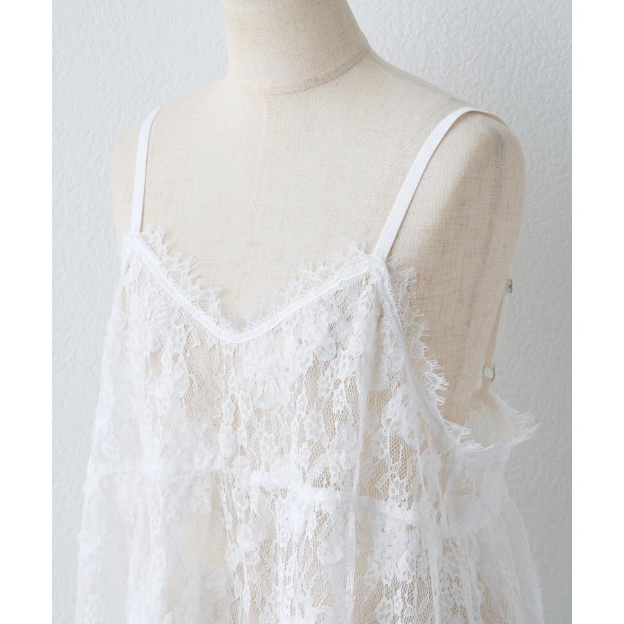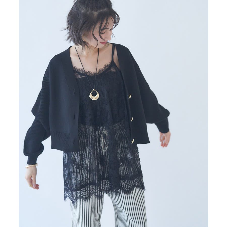 ・繊細な総レースのキャミチュニックはトレンドのレイヤードコーデにぴったり
