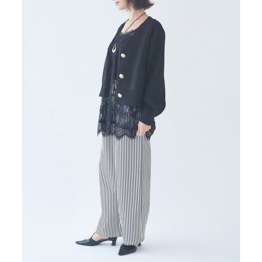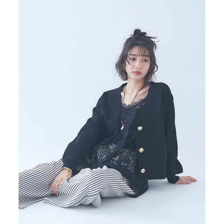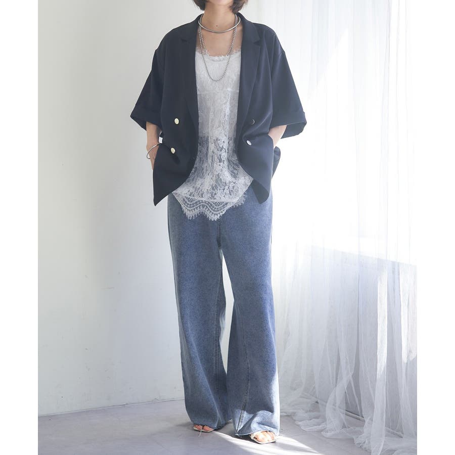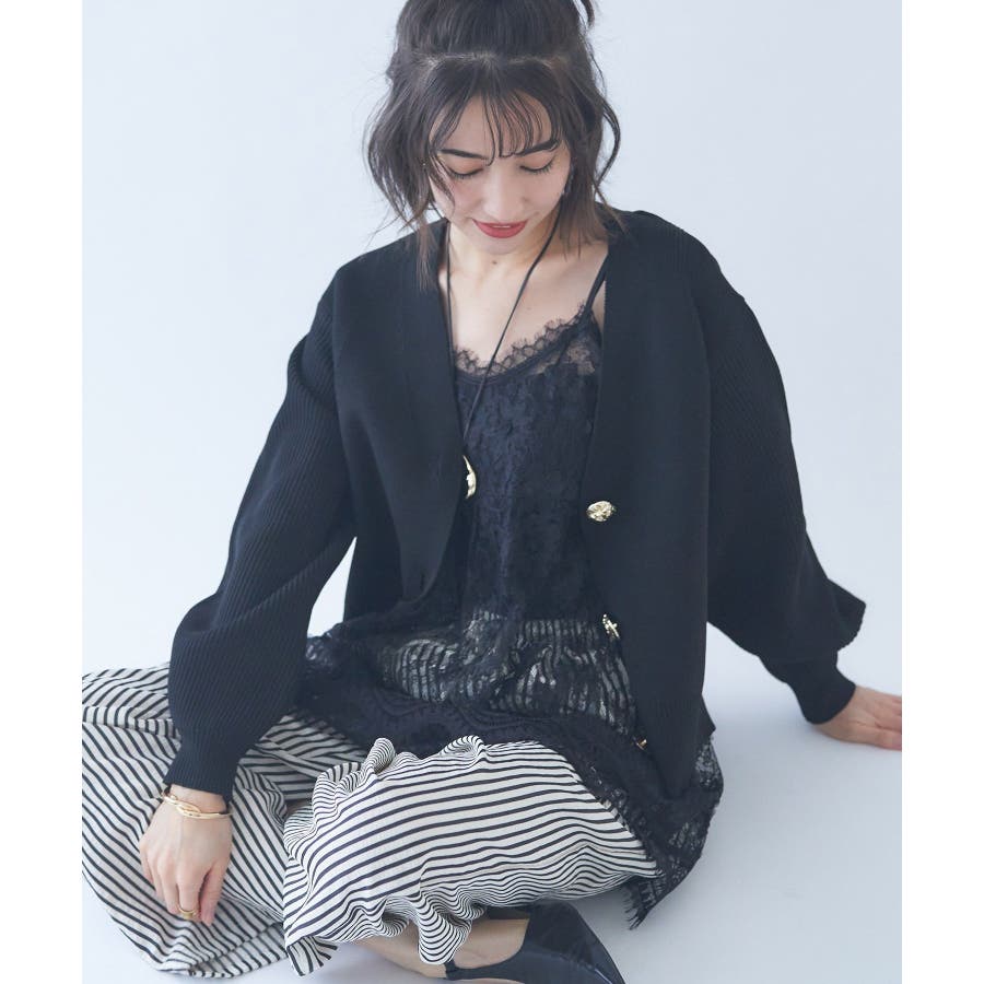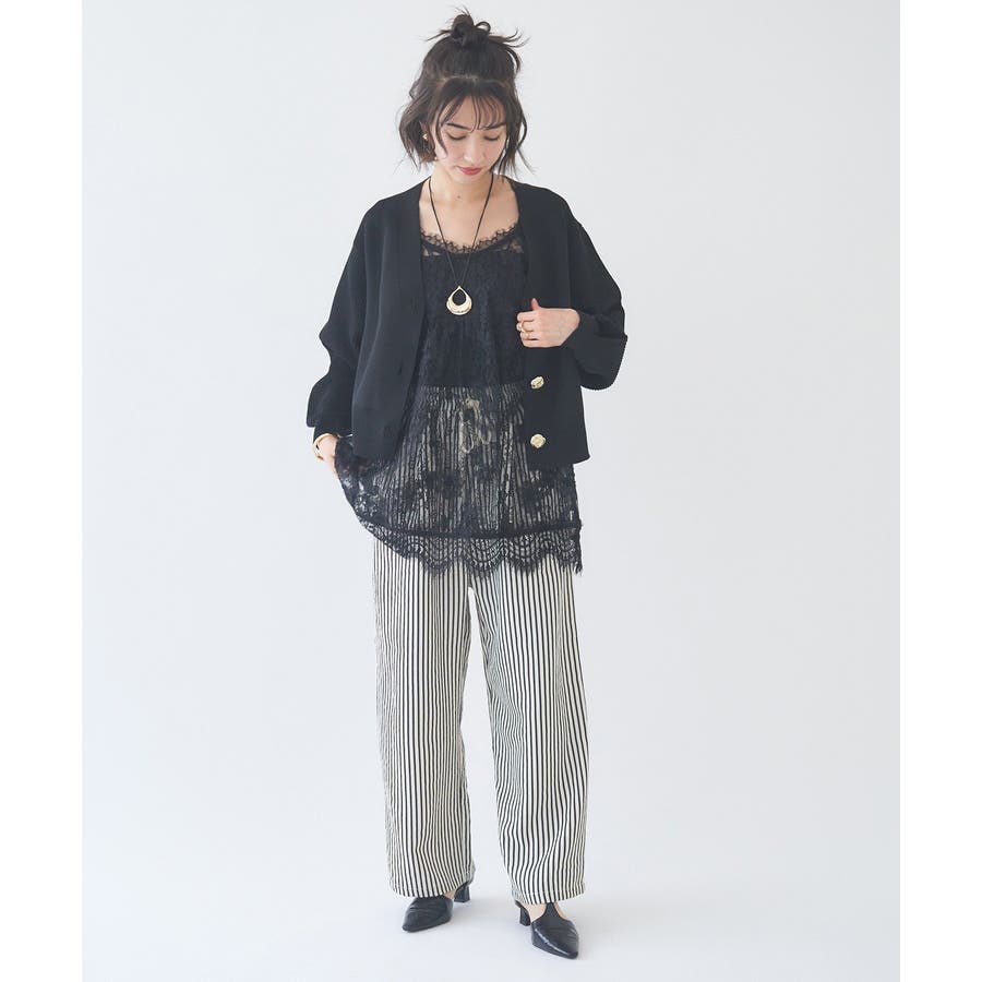 ・繊細な総レースのキャミチュニックはトレンドのレイヤードコーデにぴったり