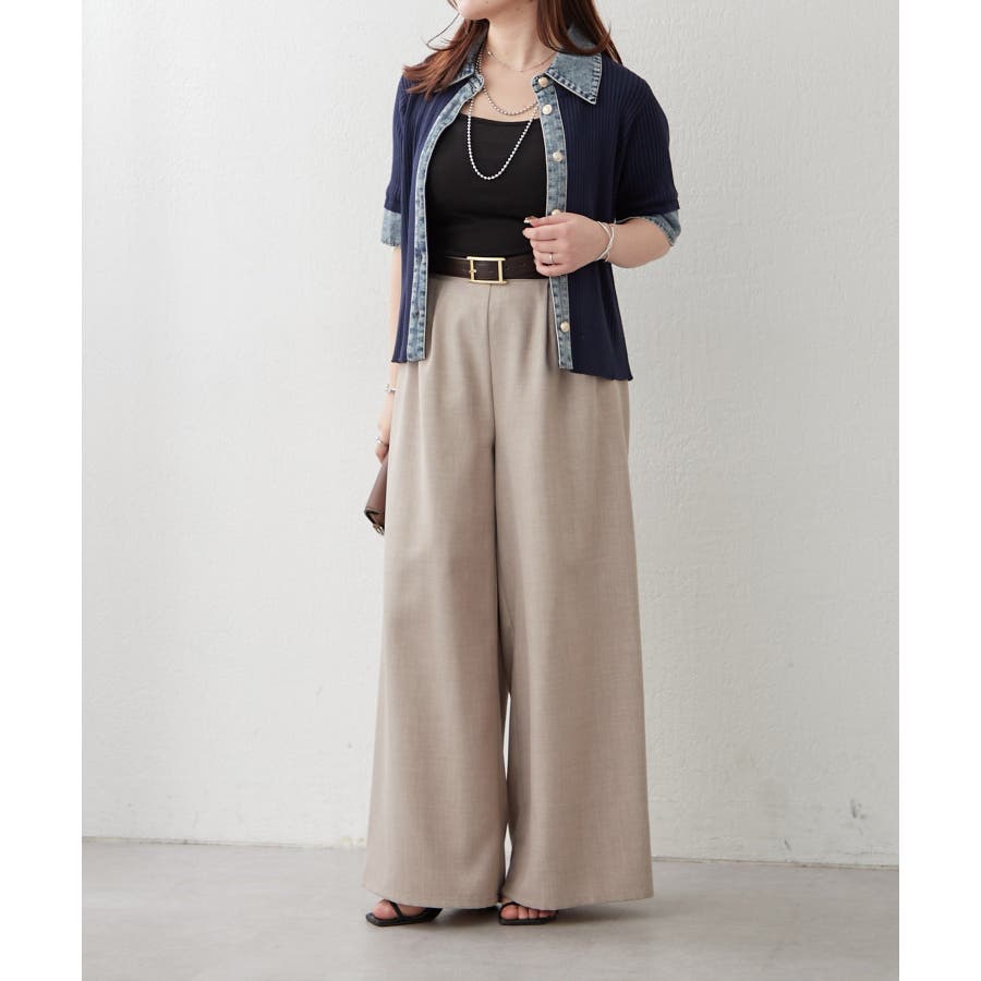 ・タイトスカートやスラックスと合わせて、オフィスにも。足元はパンプスで上品にまとめて