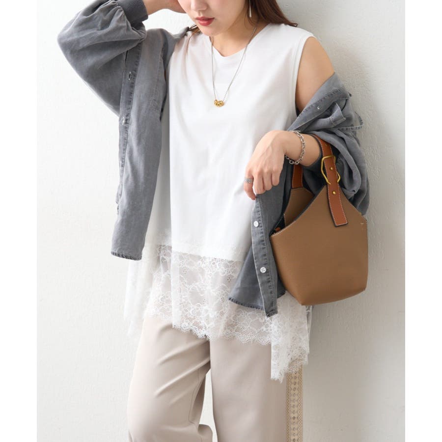 ・シンプルなシルエットに、繊細なレースがフェミニンなアクセントを添えるタンクトップ
