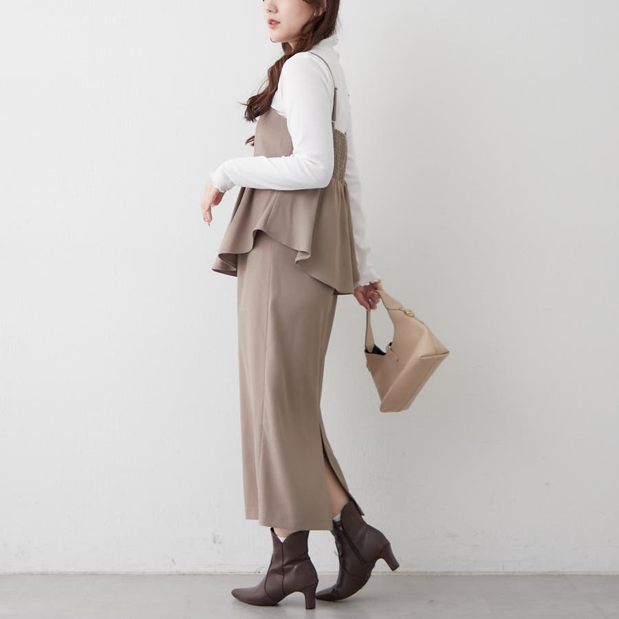 ・着回し力の高いテレコトップスと、ペプラムワンピースのセットアイテム