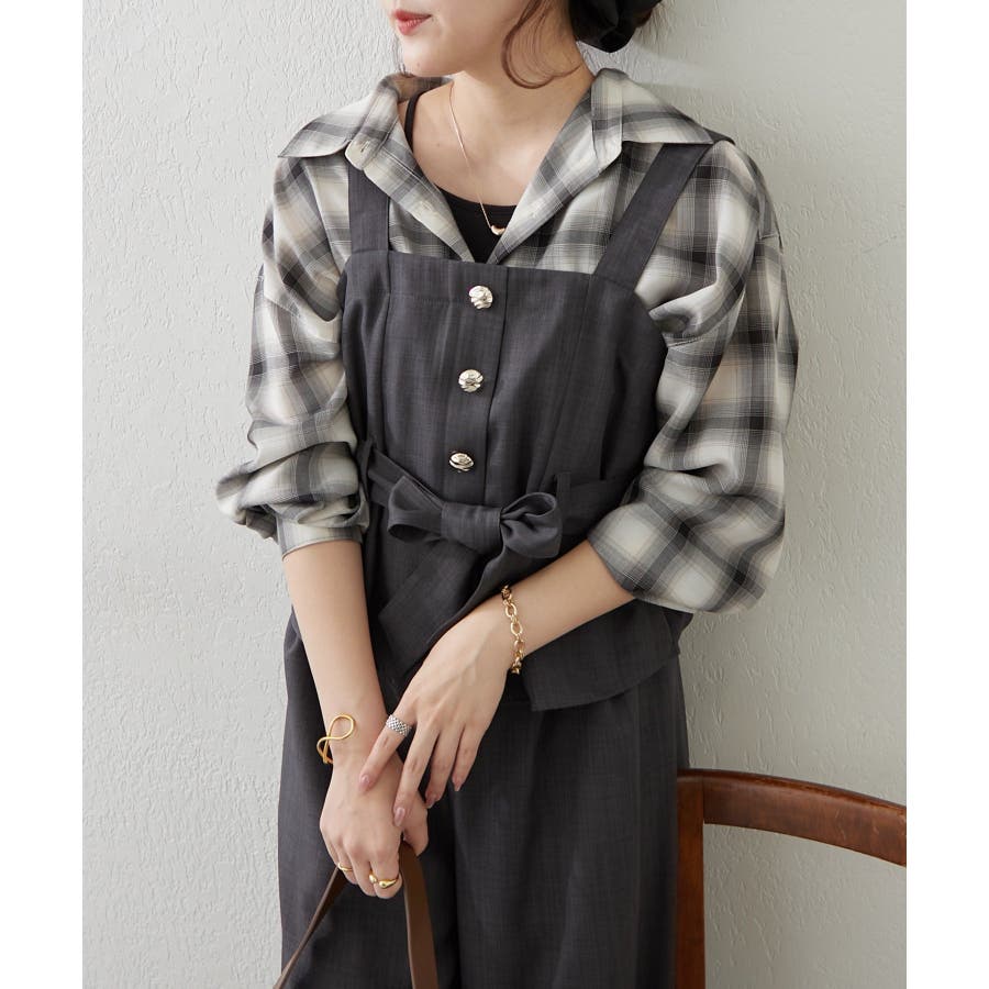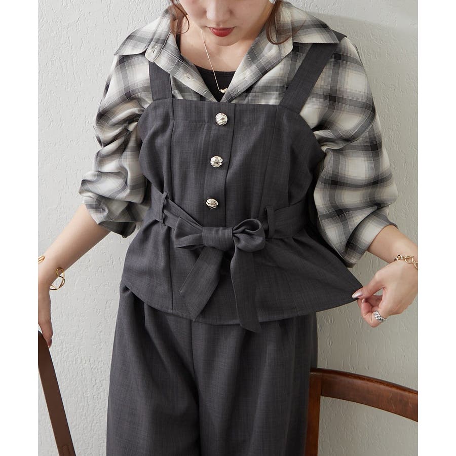 ・ビスチェは、上品なボタンとリボンがアクセントになり、女性らしさを演出