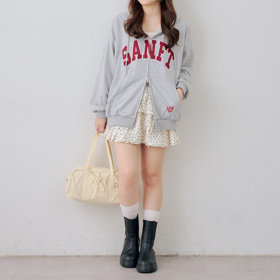 ・チェック柄のスカートにスウェットを合わせたスタイルに、アクセントとしてプラス