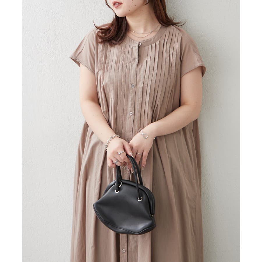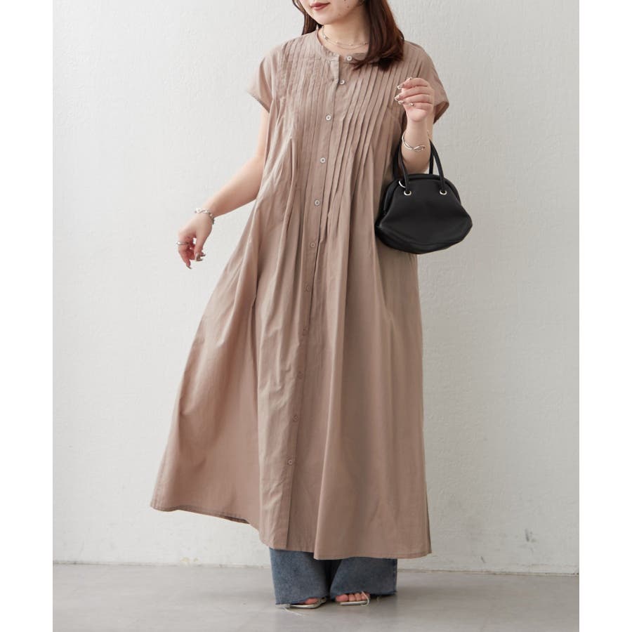 ・フロントのピンタックが上品なフレンチスリーブワンピース