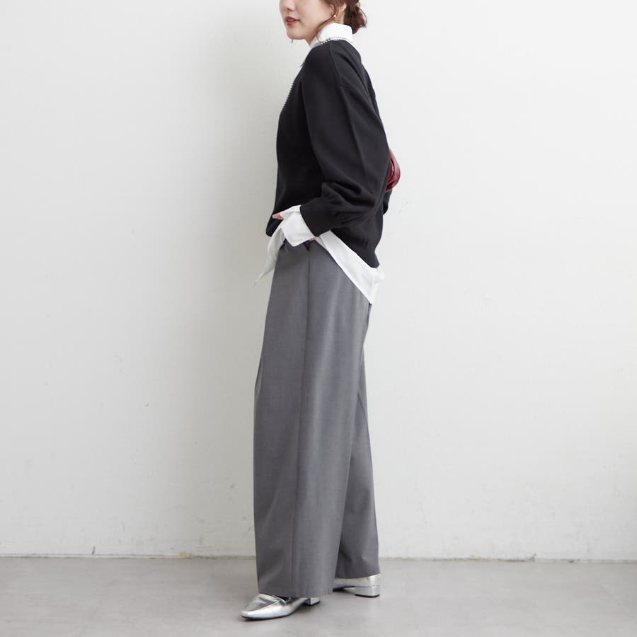 ・シンプルなデザインなので、首周りはネックレスなどアクセサリーで飾るのがマスト