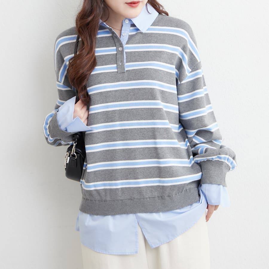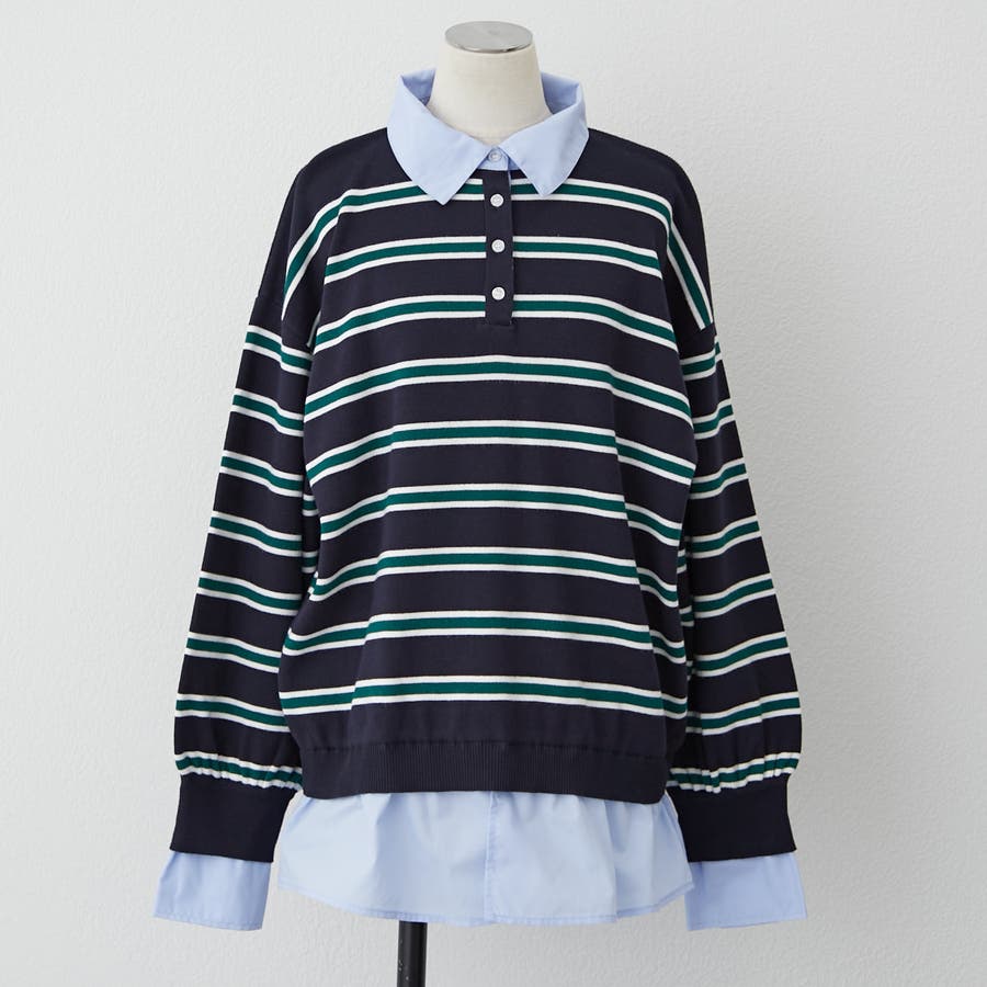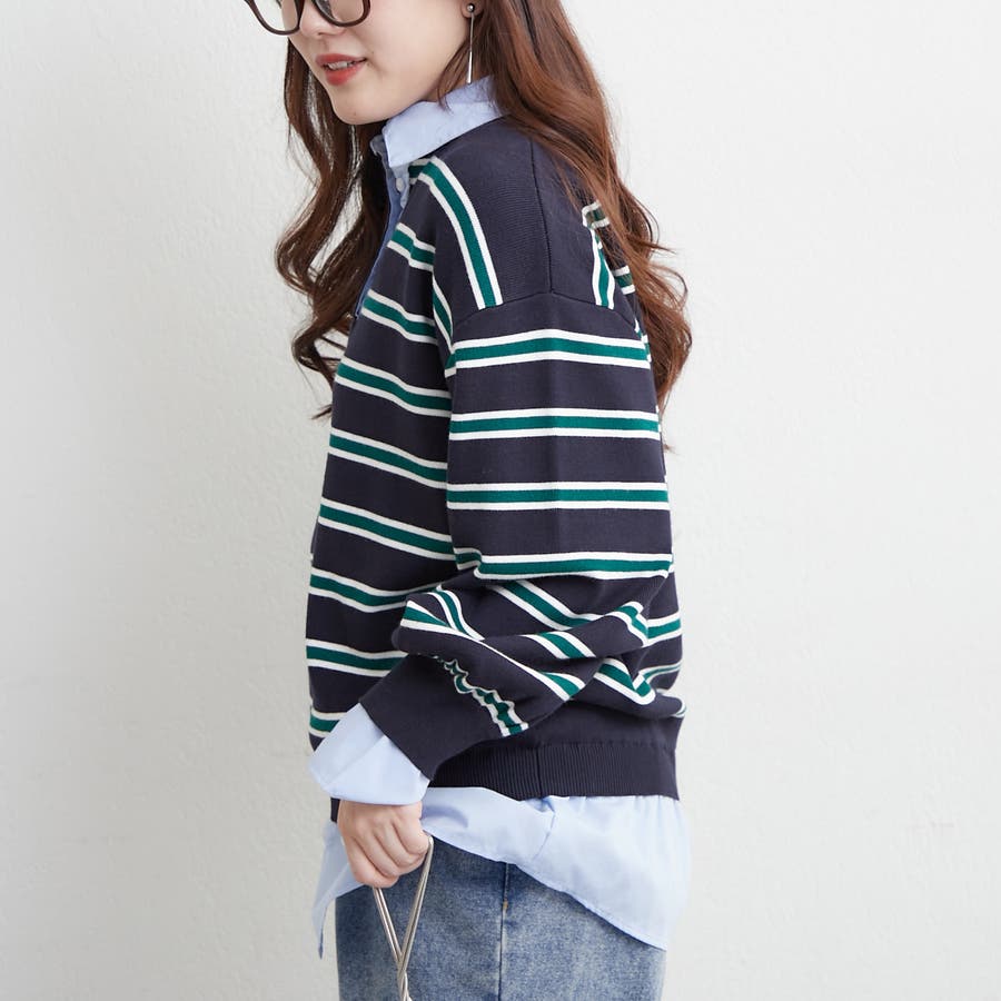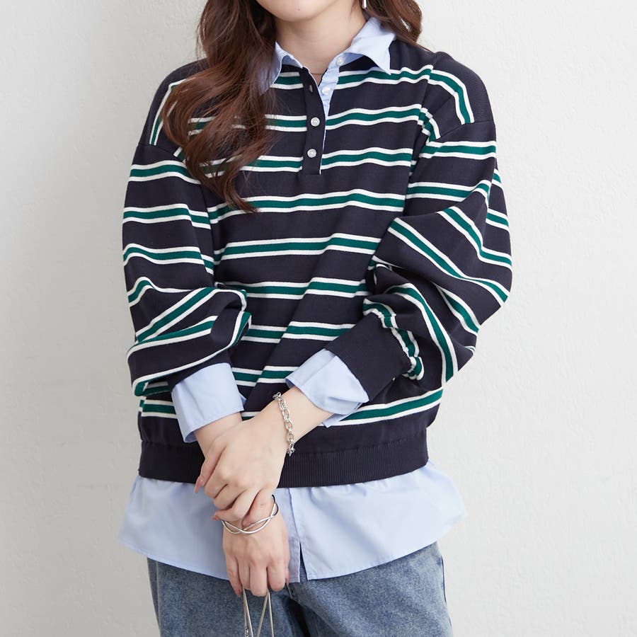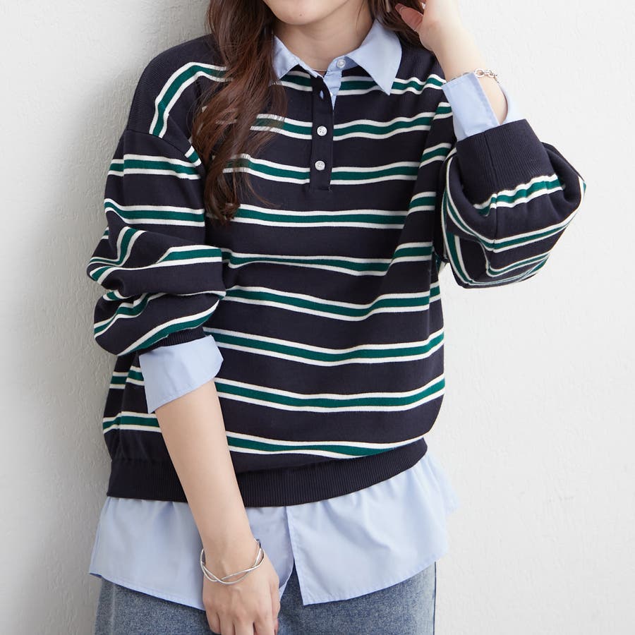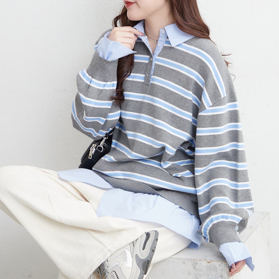 RMAF Remindmeandforever olivedesolive niceclaup 冬 冬服 冬物 春 春服 春物 韓国 韓国系 韓国風 韓国ファッション 10代 20代 30代 大人 人気 大人かわいい 大人カジュアル トレンド 新作 プチプラ ゆったり トップス ニットトップス ニット ドッキングニット ボーダー ボーダーニット シャツドッキング 5061180360