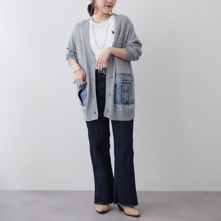 ・ポケットがデニム素材になった主役級カーディガン