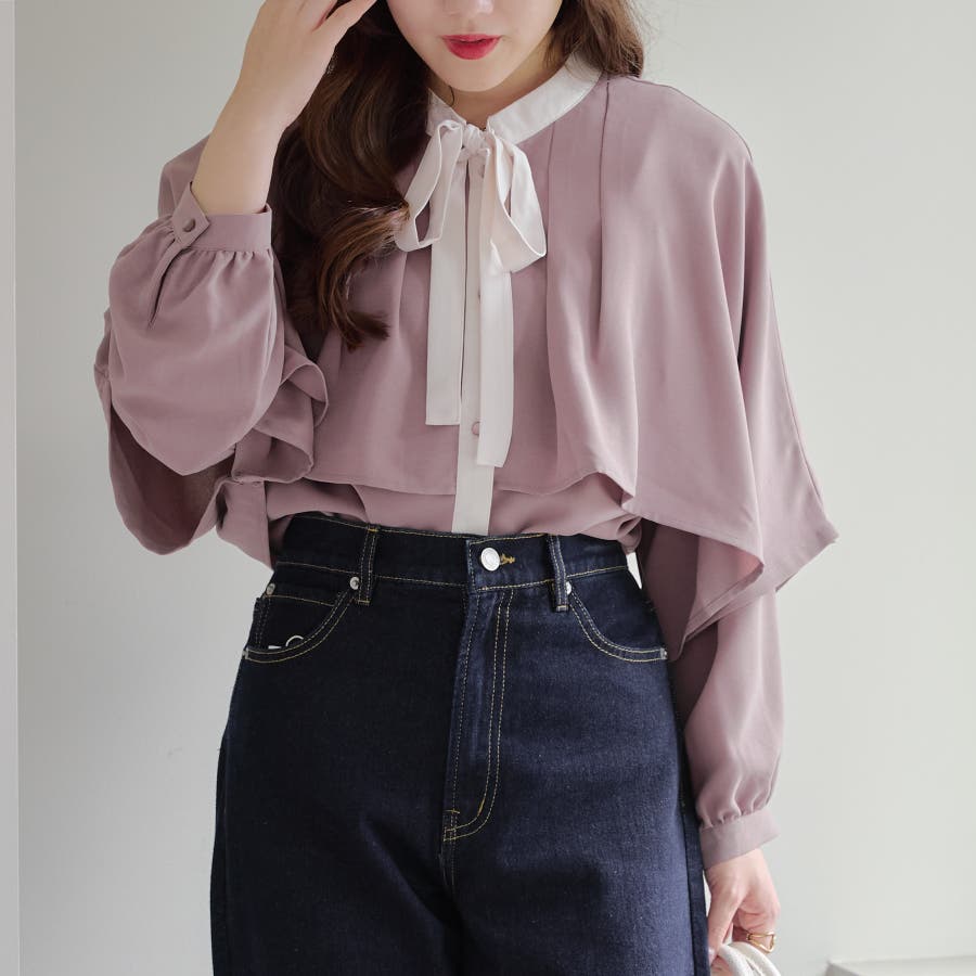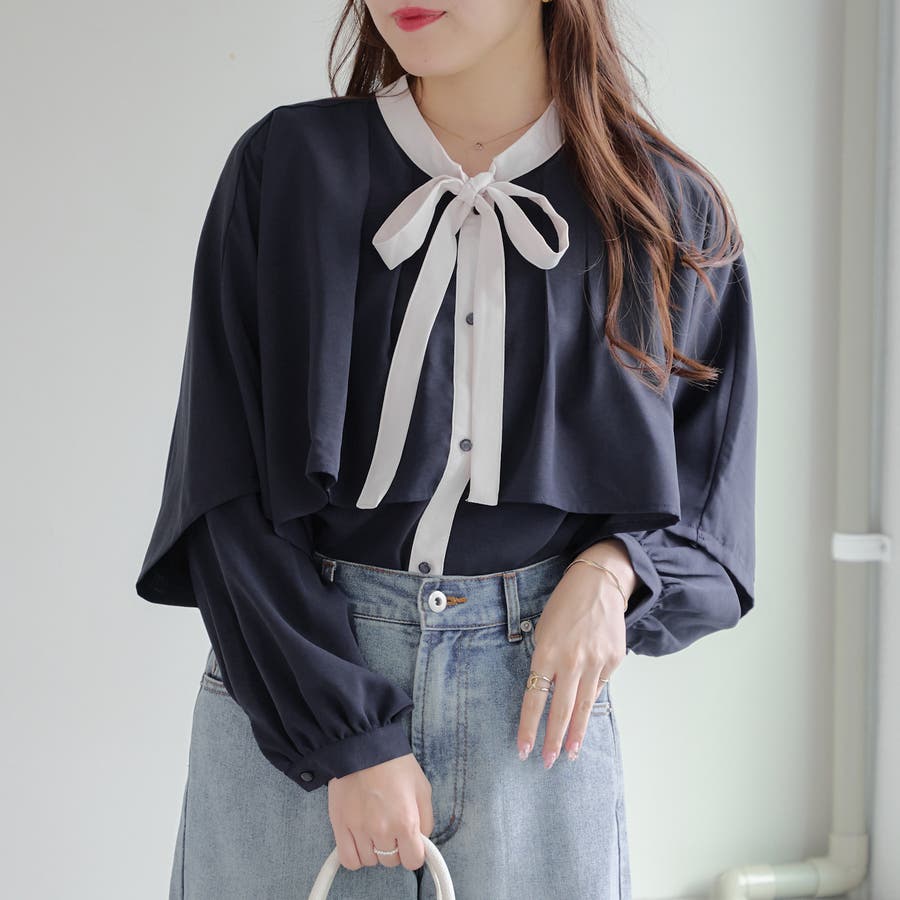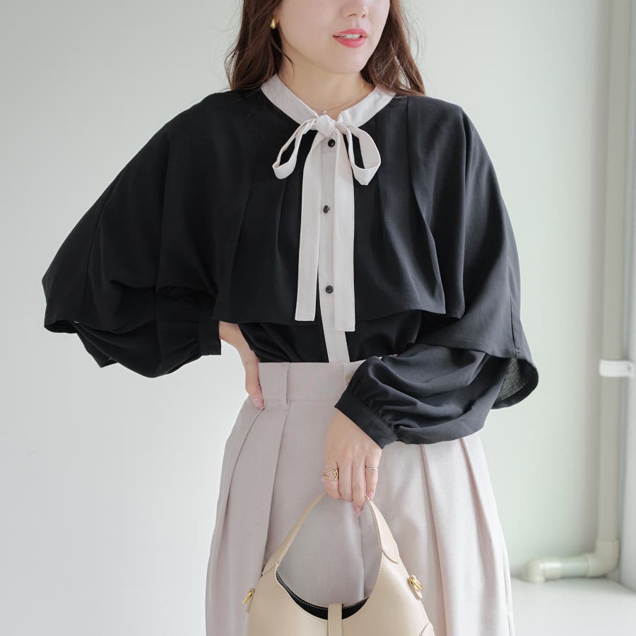 RMAF Remindmeandforever olivedesolive niceclaup 秋 秋服 秋物 冬 冬服 冬物 韓国 韓国系 韓国風 韓国ファッション 10代 20代 30代 大人 人気 大人かわいい 大人カジュアル トレンド 新作 プチプラ オフィス オフィスカジュアル オフィス服 オフィスブラウス ブラウス 配色 ケープブラウス ケープ 配色ブラウス 6042040200
