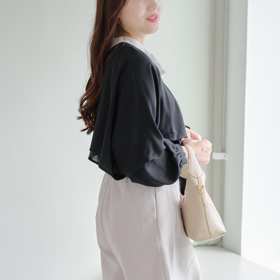 【アイボリー】【オフィスカジュアル】配色ケープブラウス