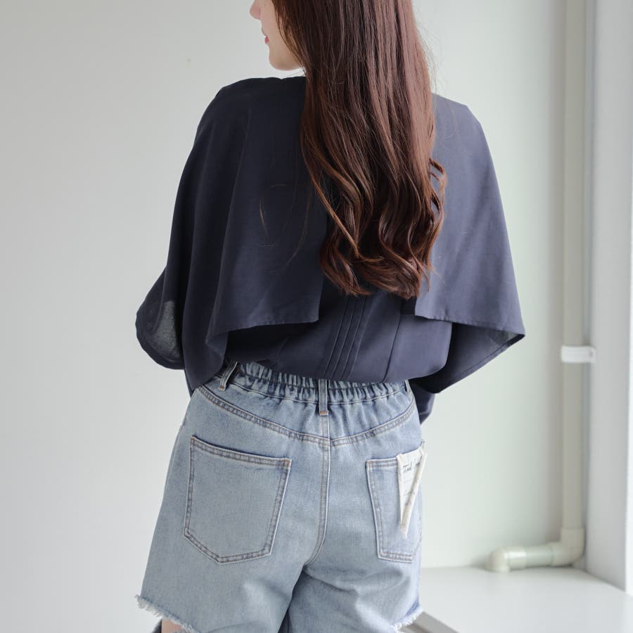 ・ケープはボタンで留めて折り込むことができ、雰囲気を変えて着用いただけます