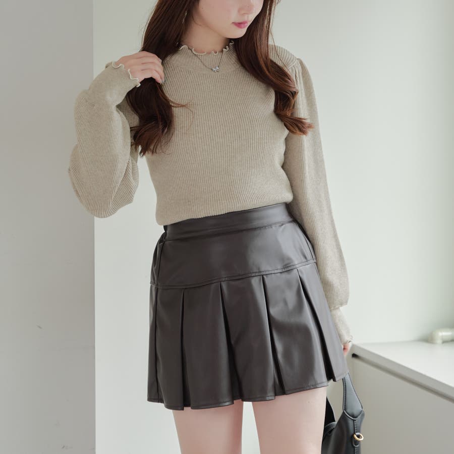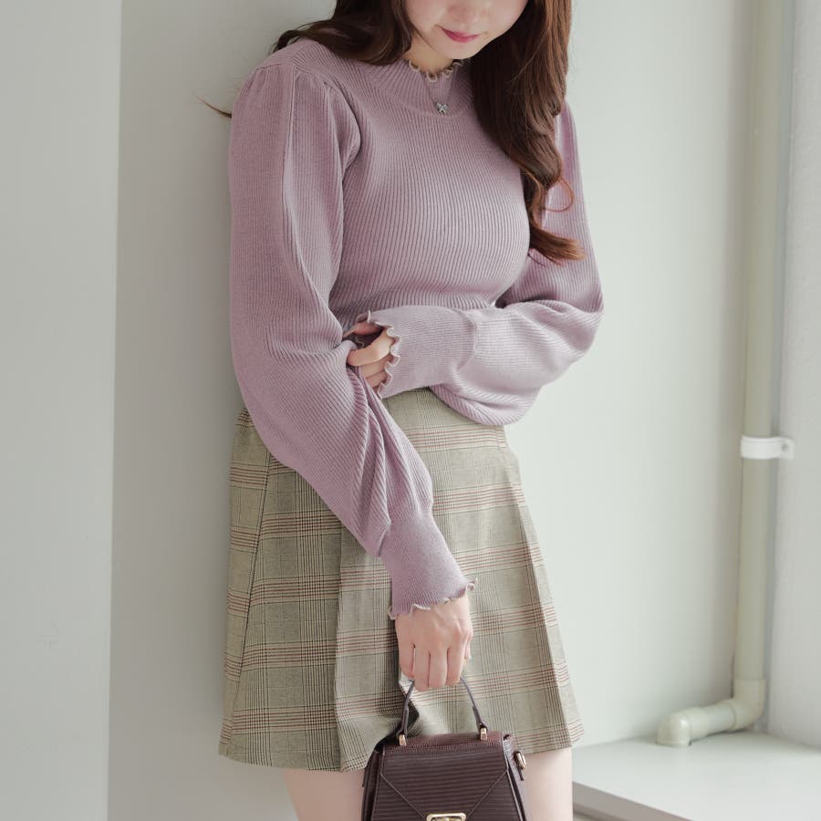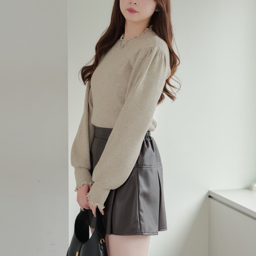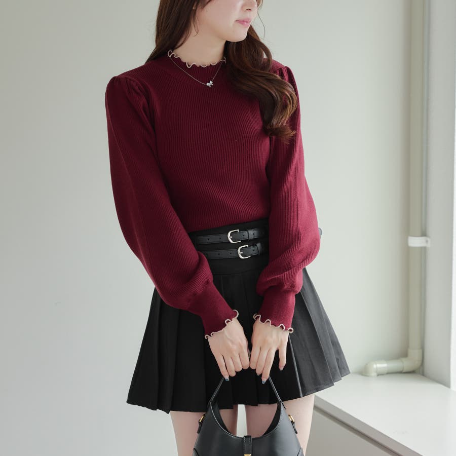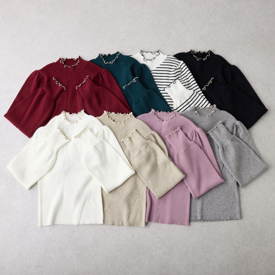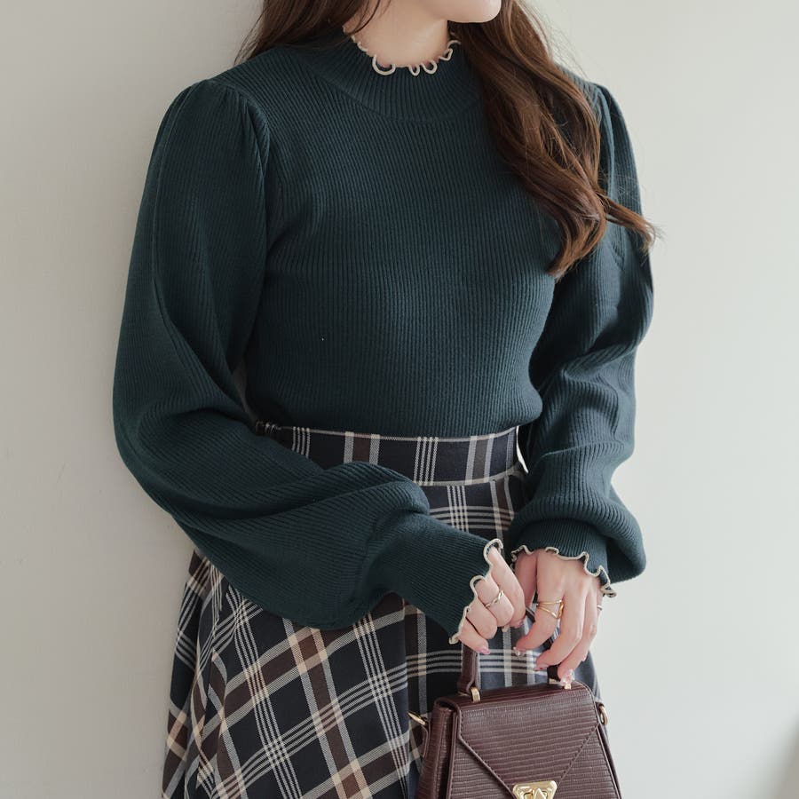 ・毎年人気の首元と袖口にメロウ加工が施された甘さのあるデザインニット。