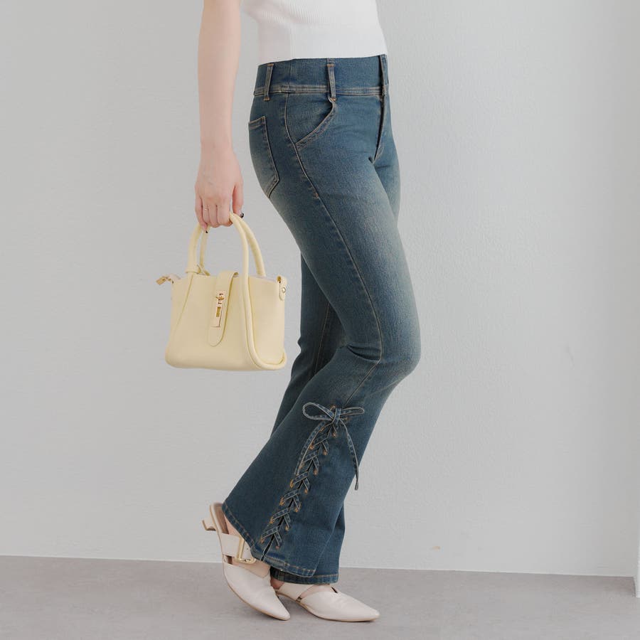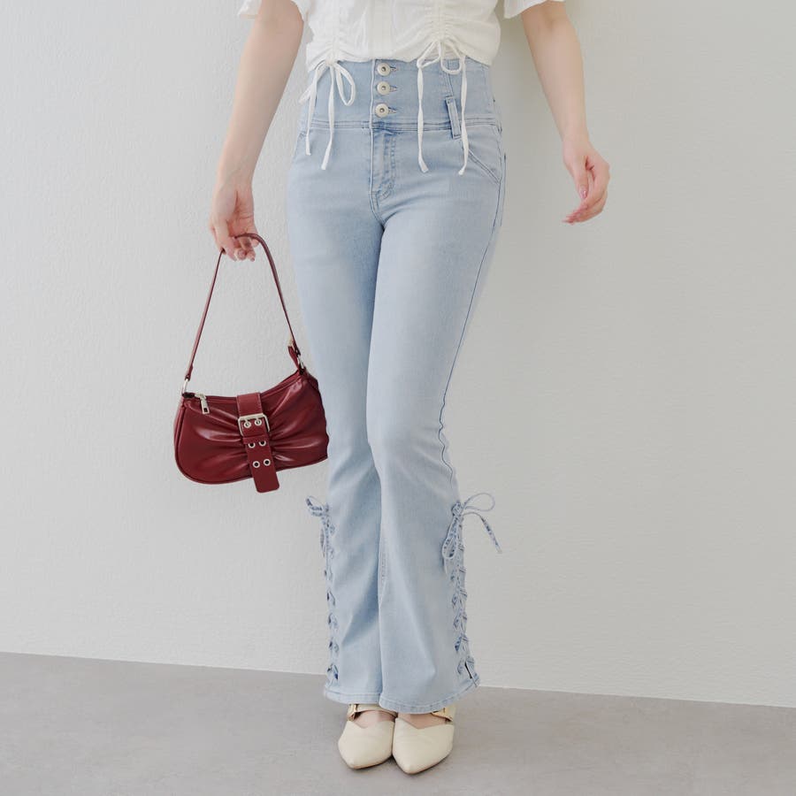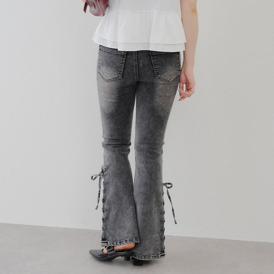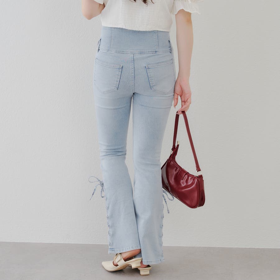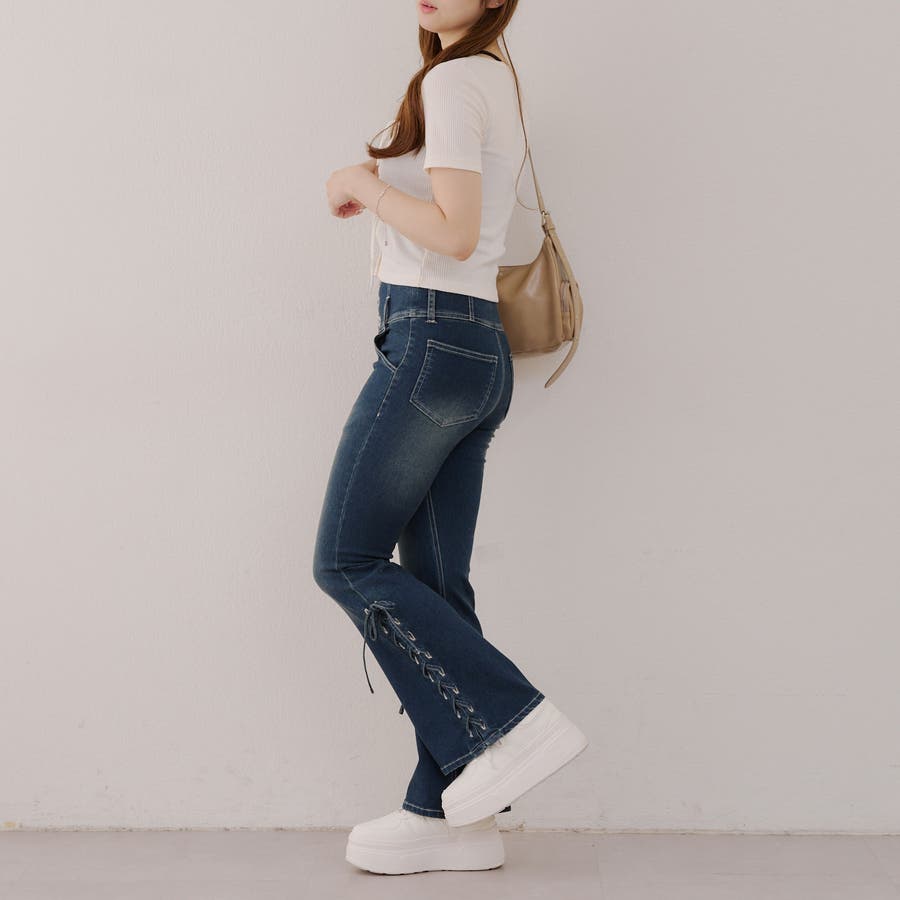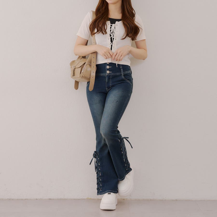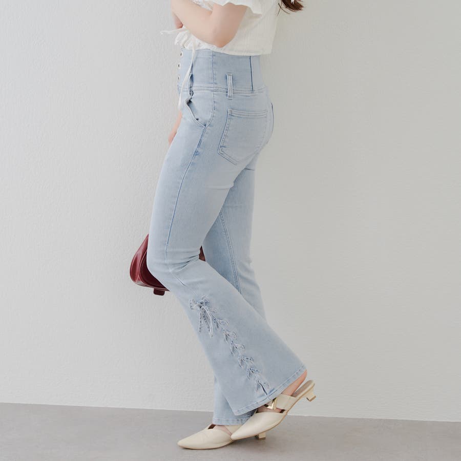 【2サイズ展開】サイドレースアップセミフレアデニム