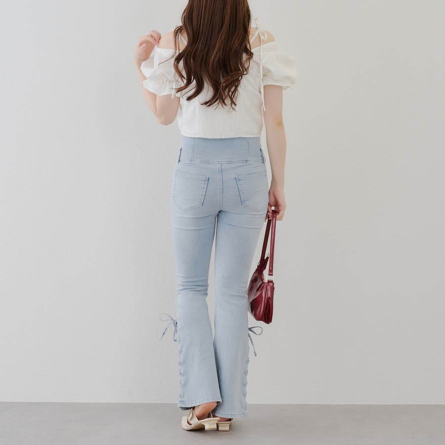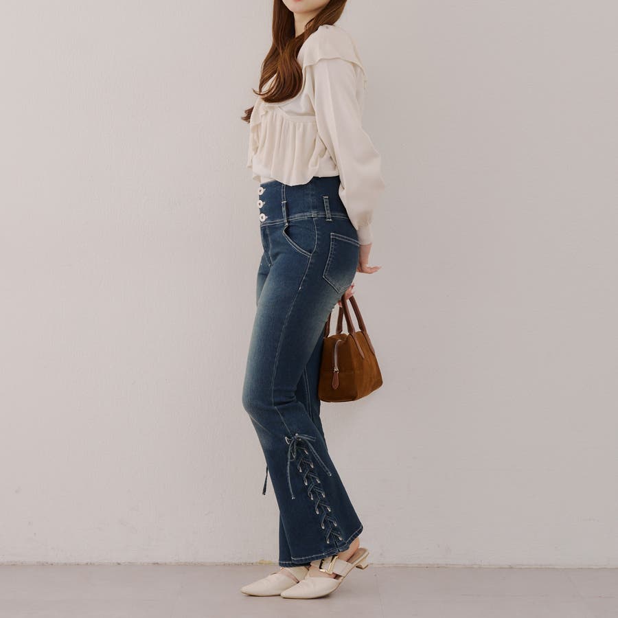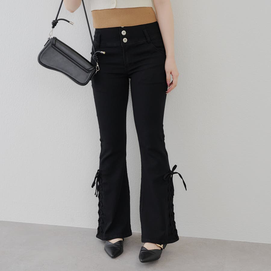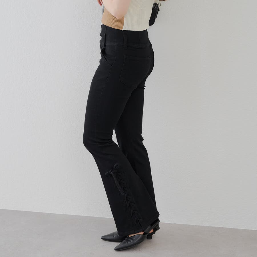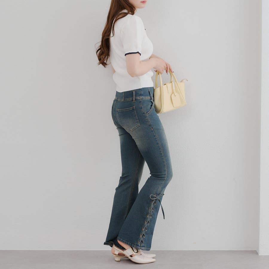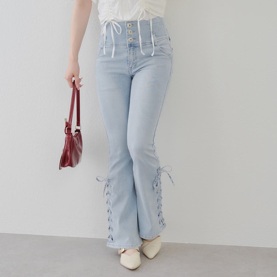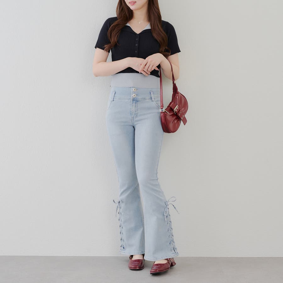 【2サイズ展開】サイドレースアップセミフレアデニム