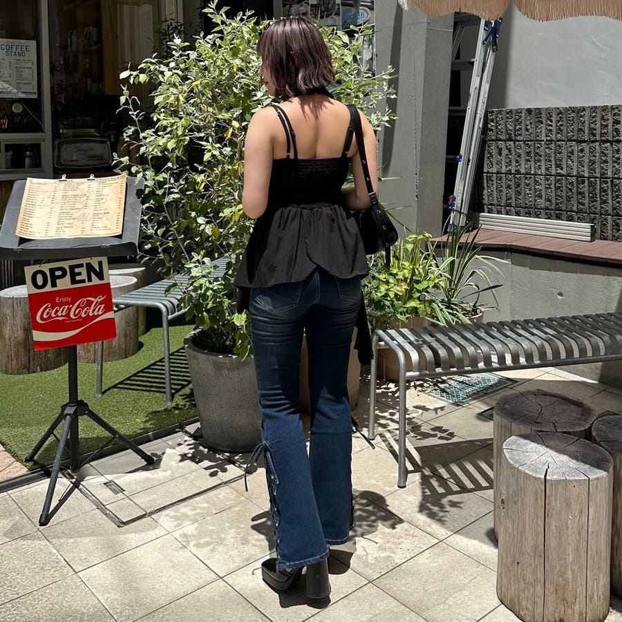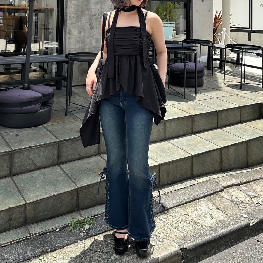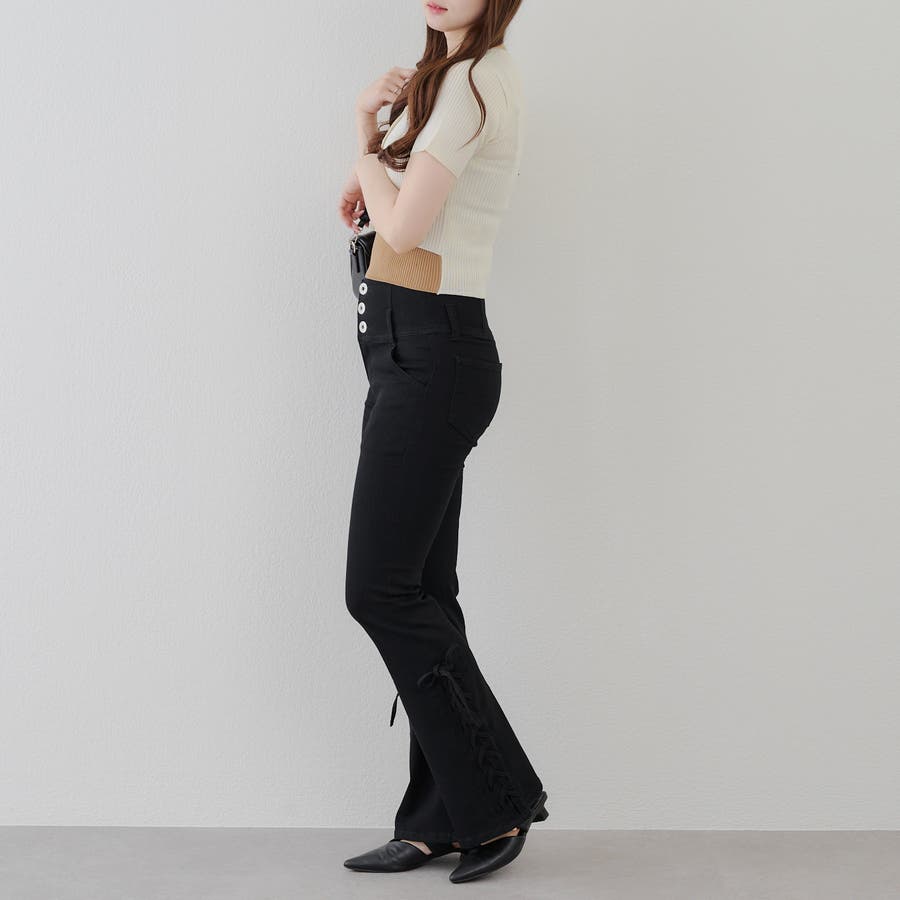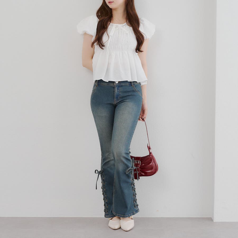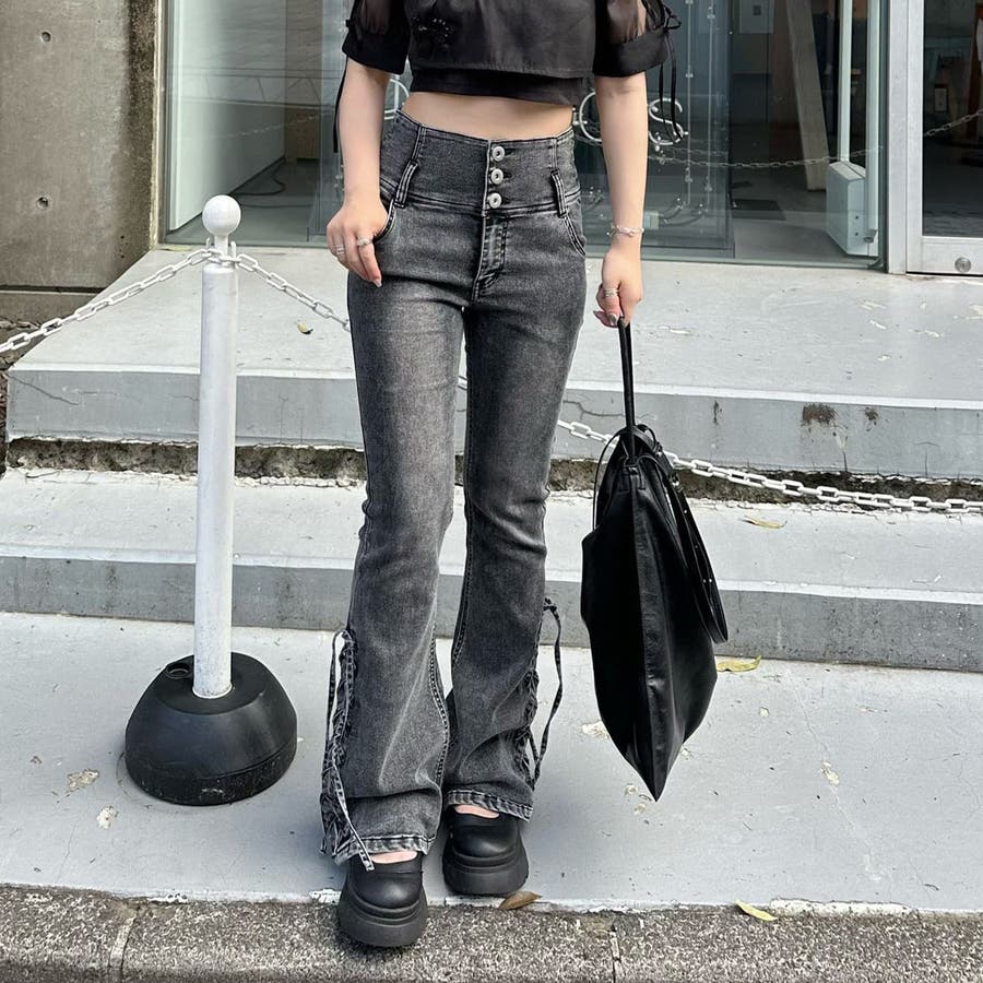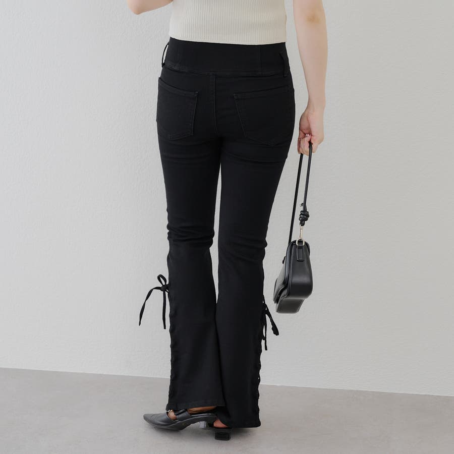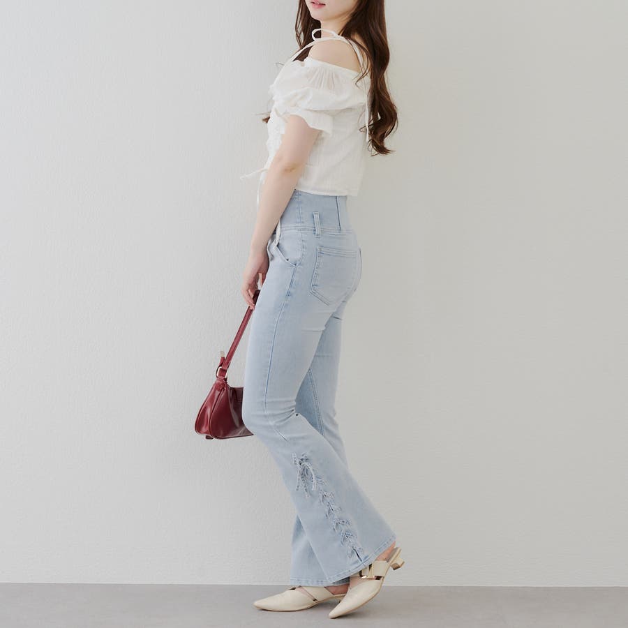【2サイズ展開】サイドレースアップセミフレアデニム