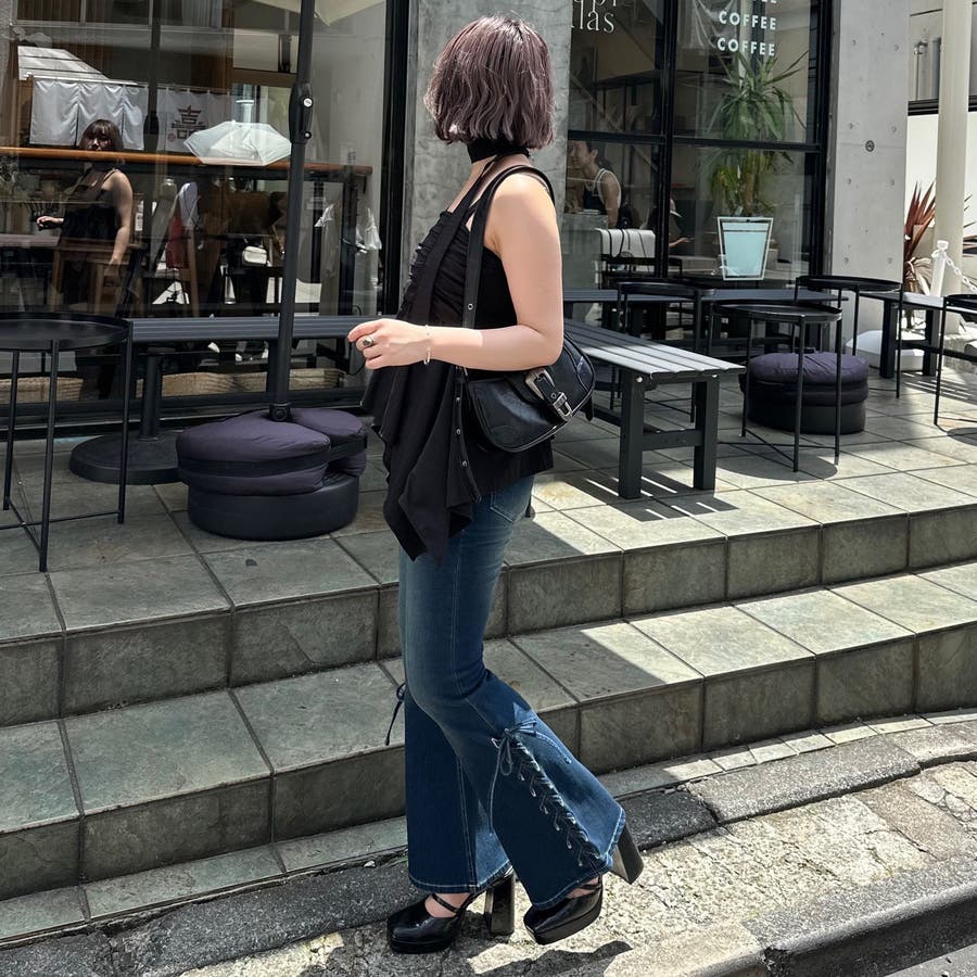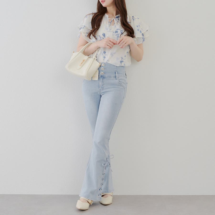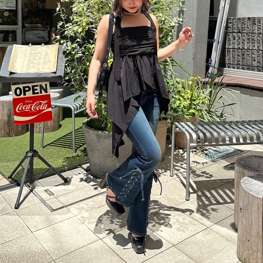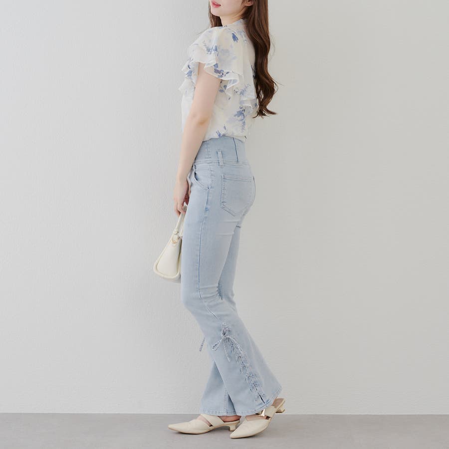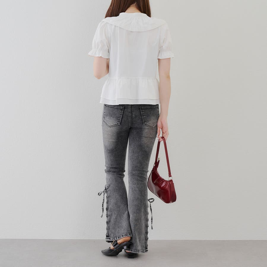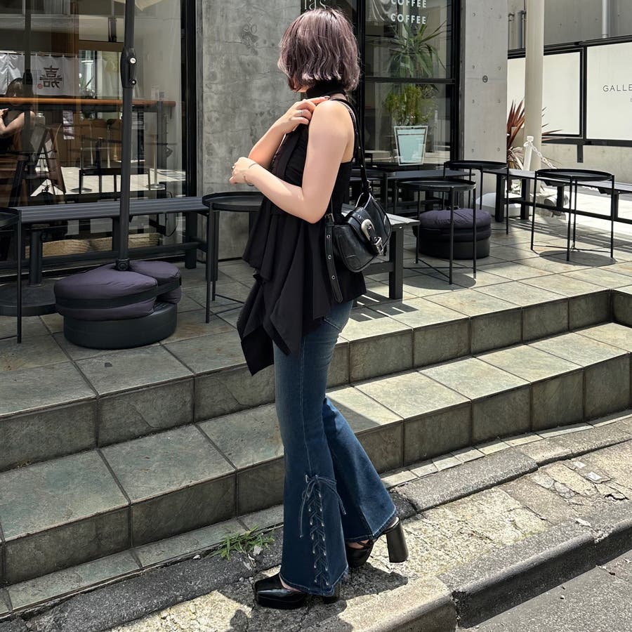 【2サイズ展開】サイドレースアップセミフレアデニム