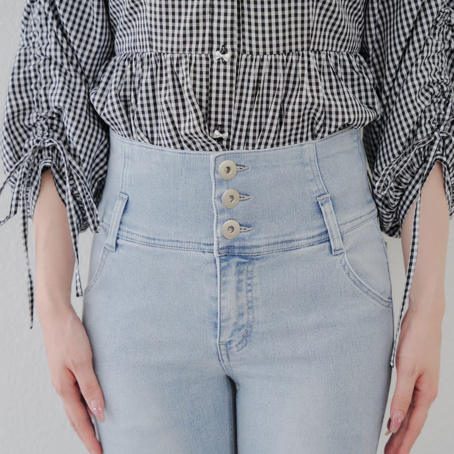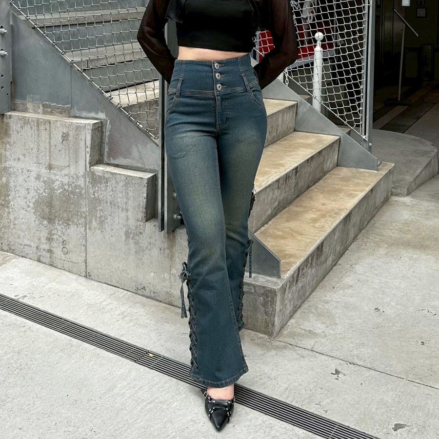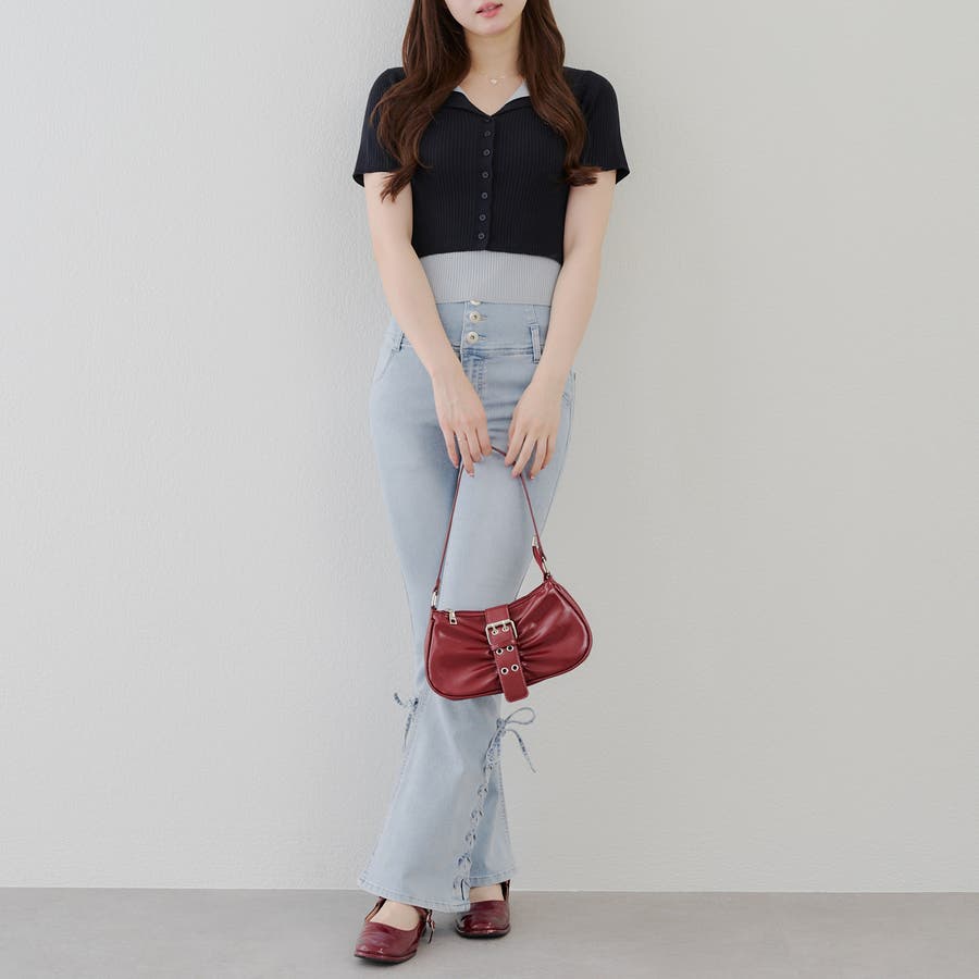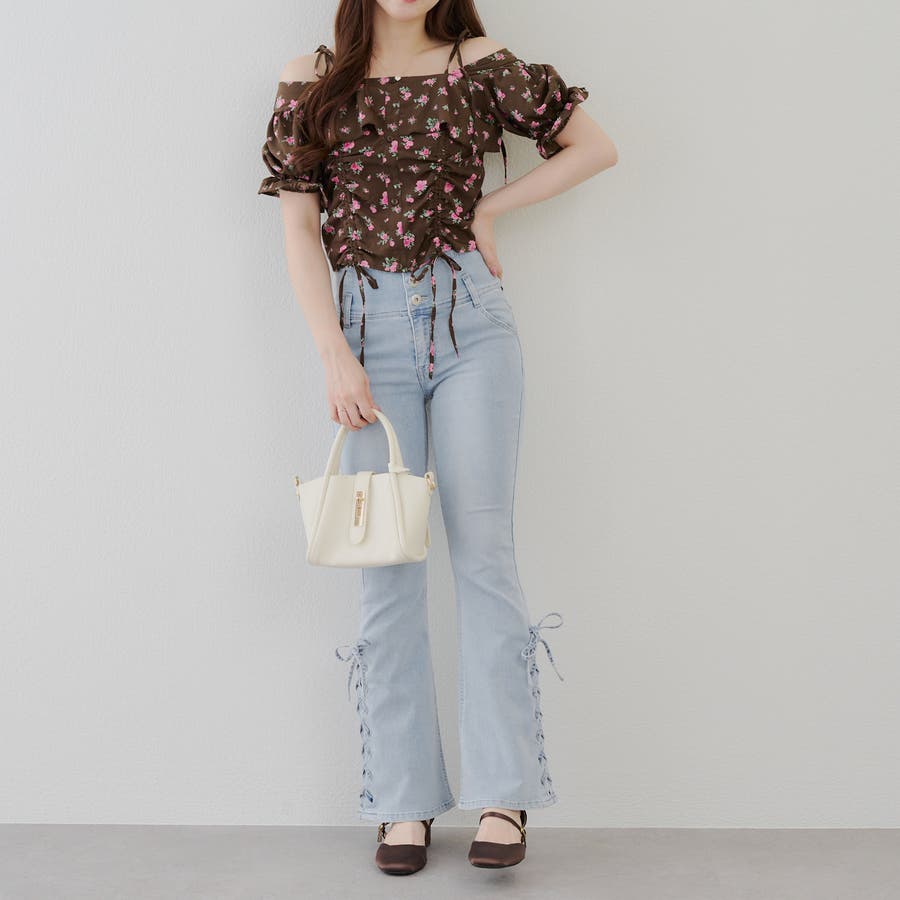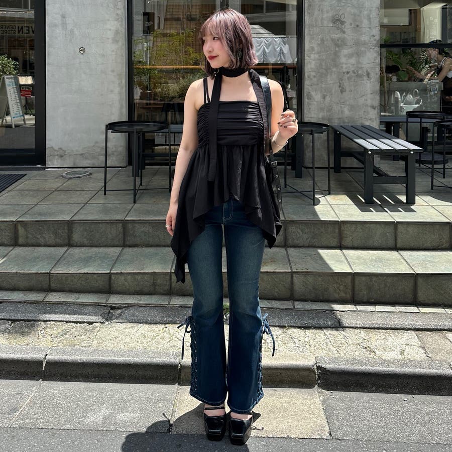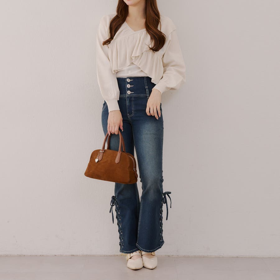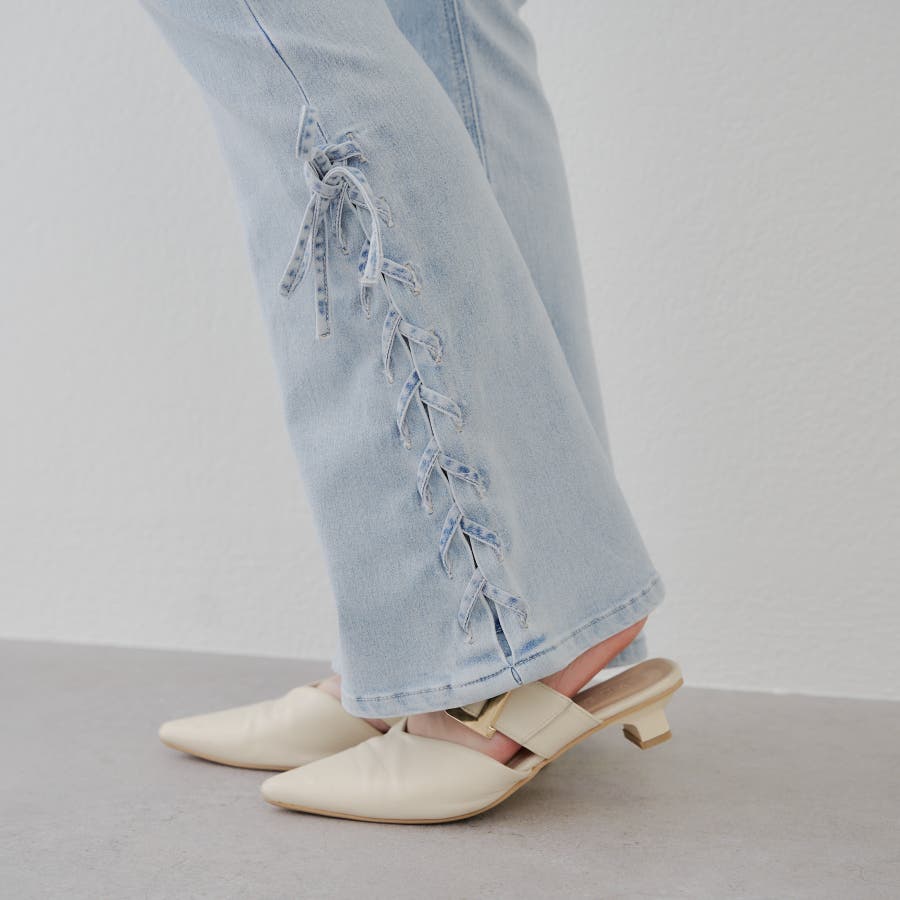 【2サイズ展開】サイドレースアップセミフレアデニム