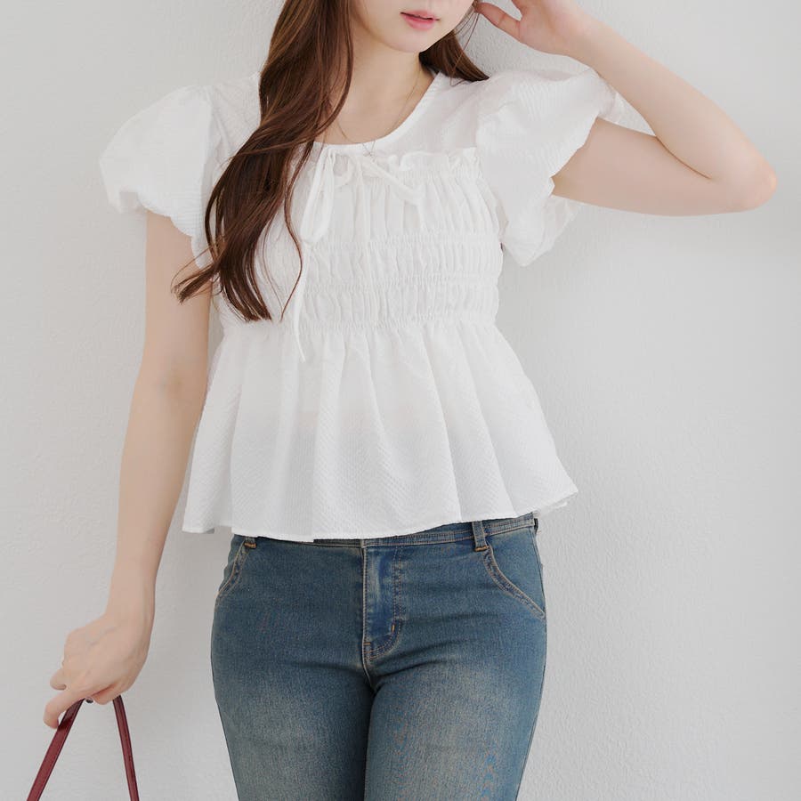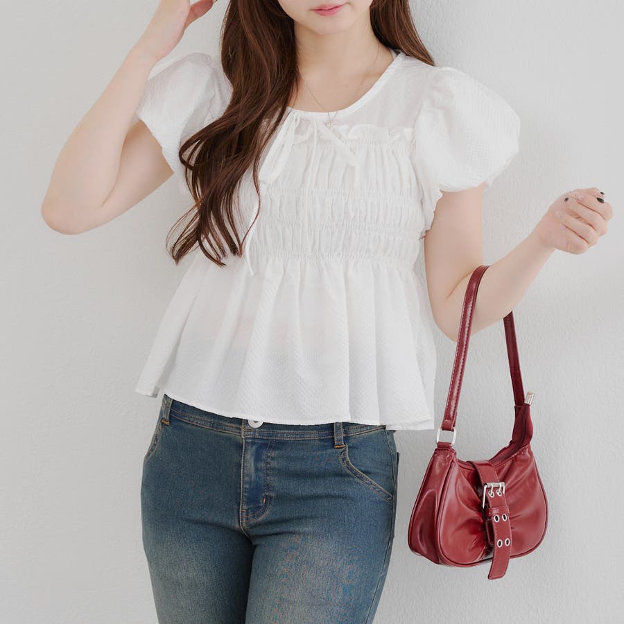 RMAF Remindmeandforever olivedesolive niceclaup 夏 夏服 夏物 韓国 韓国系 韓国風 韓国ファッション 10代 20代 30代 大人 人気 大人かわいい 大人カジュアル トレンド 新作 プチプラ トップス ブラウス シャーリングブラウス シャーリング ガーリー 6051040400