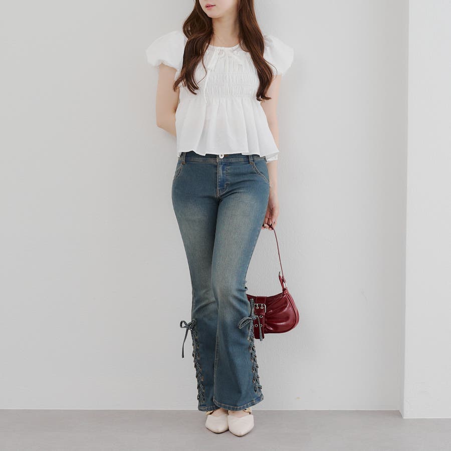 ・今季はややスリムなフレアデニムでレディライクに着こなすのがおすすめ。
