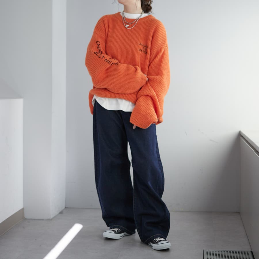 ・ワイドなサイズ感なので、コンパクトなニットやカットと相性◎