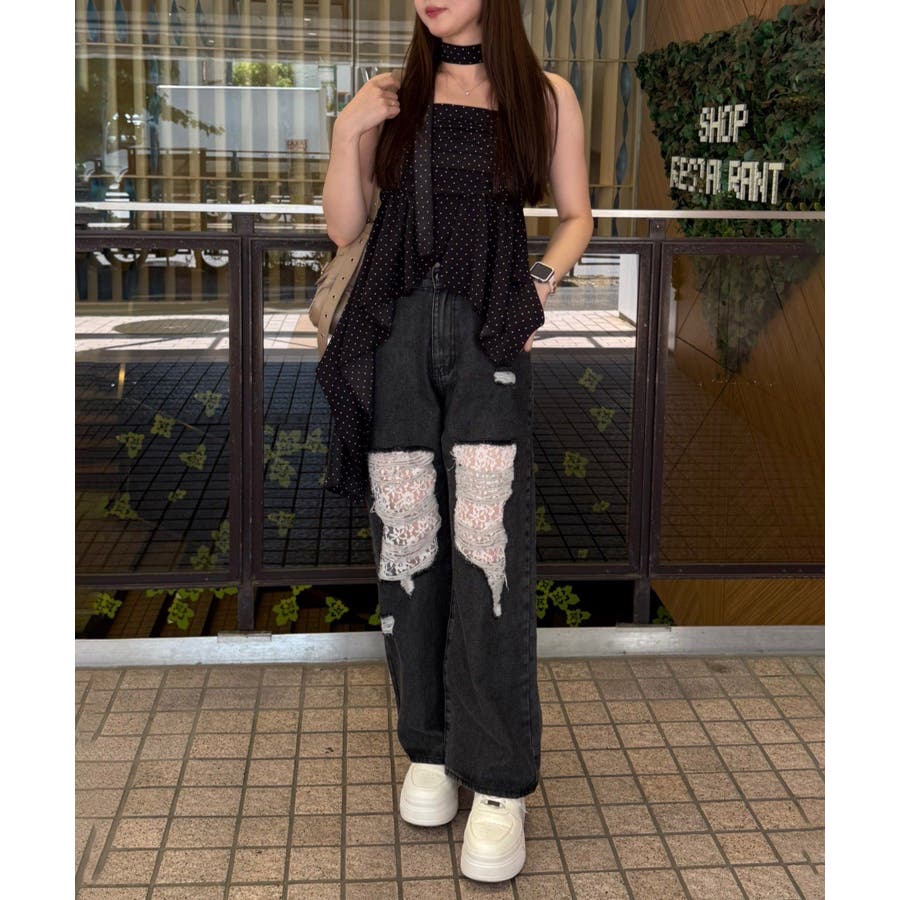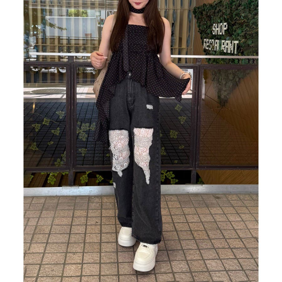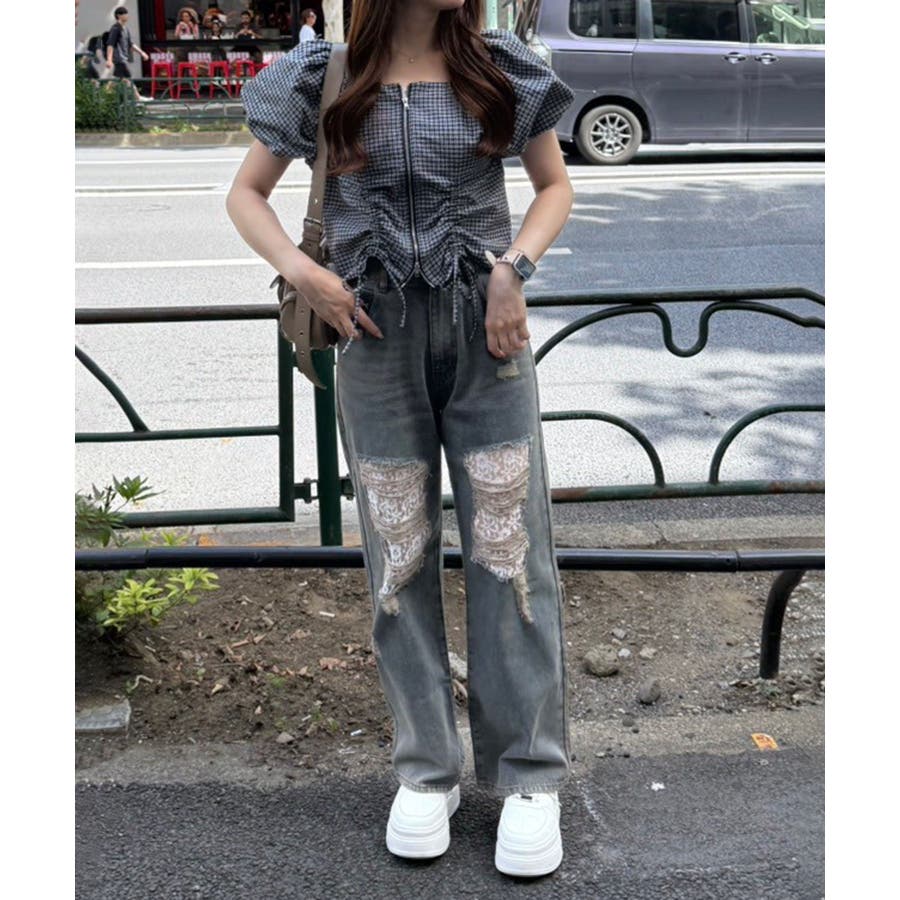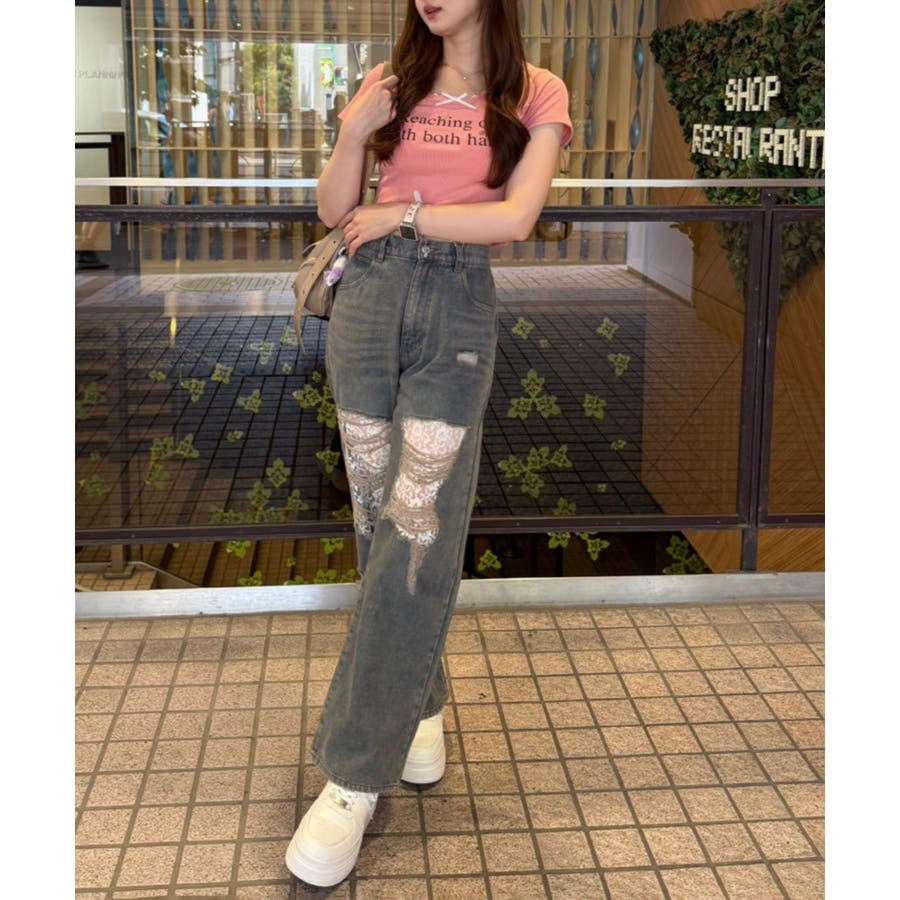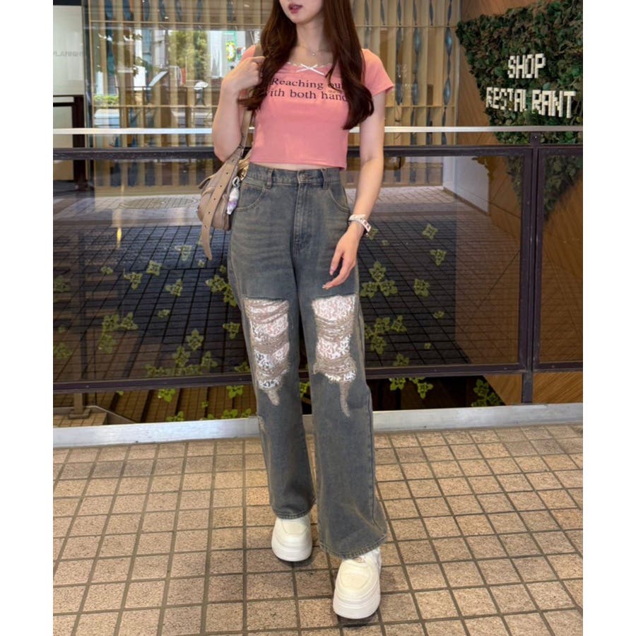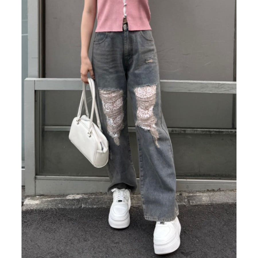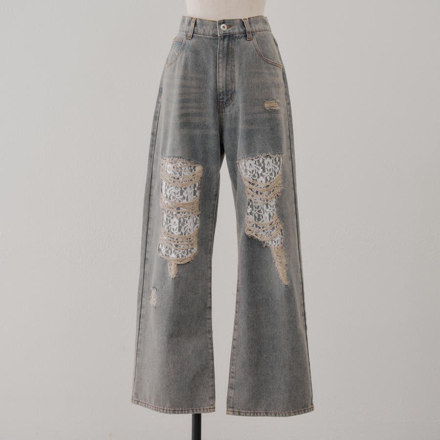 RMAF Remindmeandforever olivedesolive niceclaup 夏 夏服 夏物 秋 秋服 秋物 冬 冬服 冬物 韓国 韓国系 韓国風 韓国ファッション 10代 20代 30代 大人 人気 大人かわいい 大人カジュアル トレンド 新作 プチプラ ゆったり パンツ ズボン ボトム デニム デニムパンツ ワイドパンツ デニムワイドパンツ レース レースデニムパンツ 6052020060