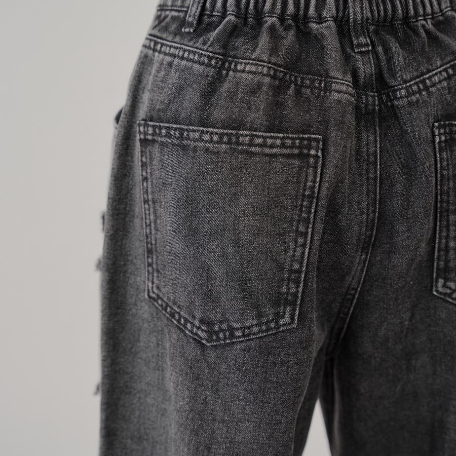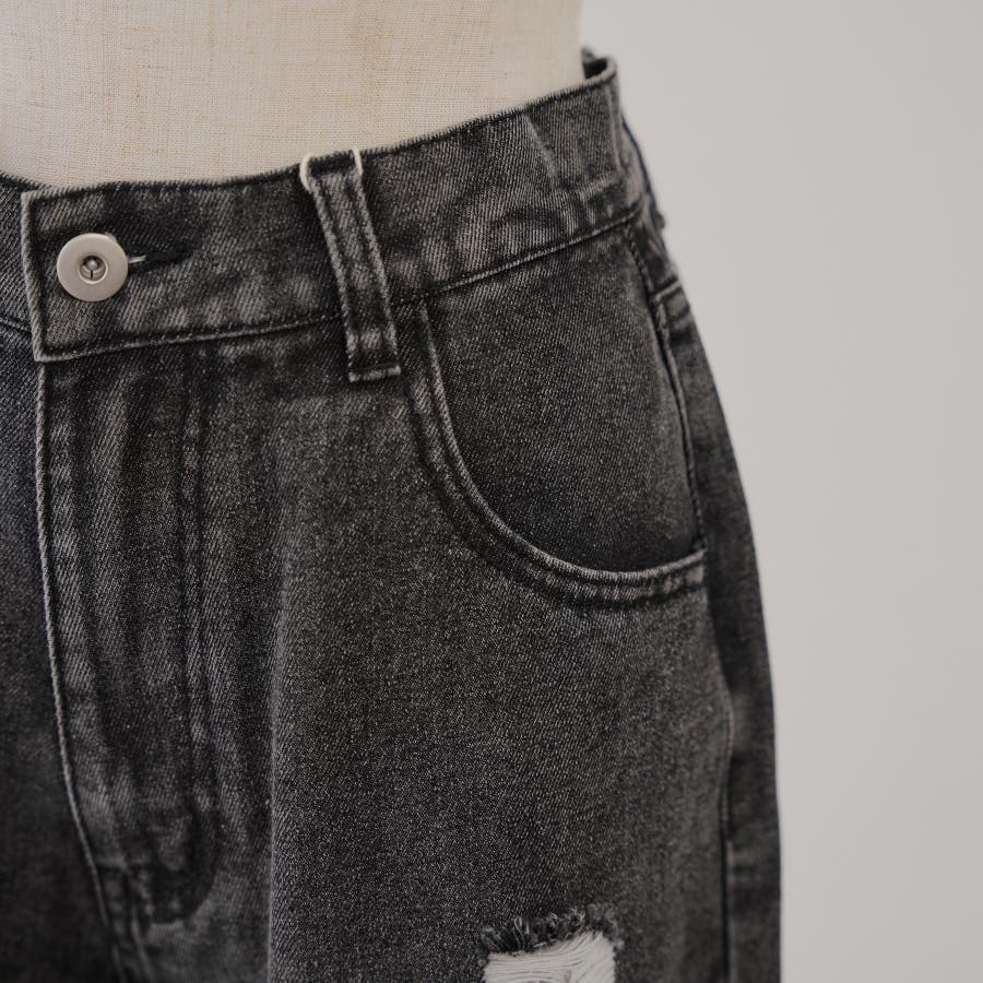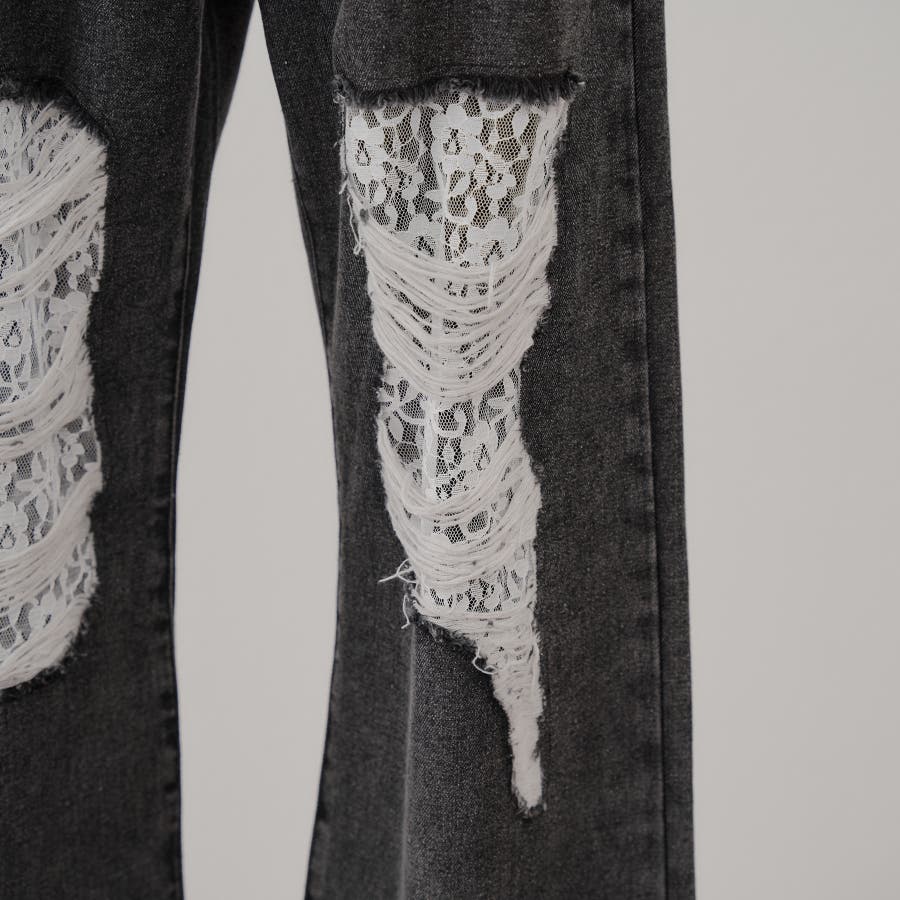 ・大胆なクラッシュ加工に繊細なレースをあしらった、甘辛MIXデニム。