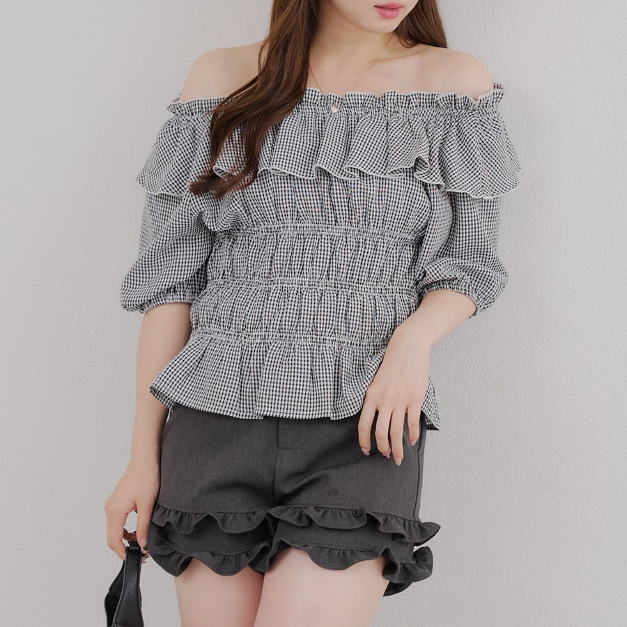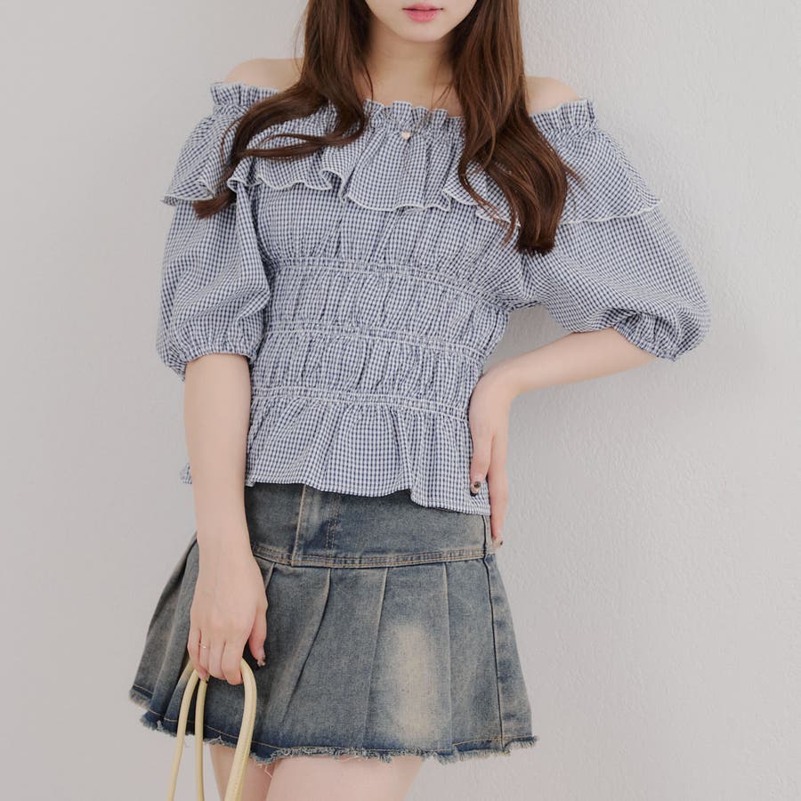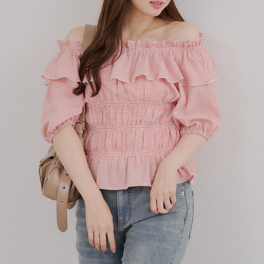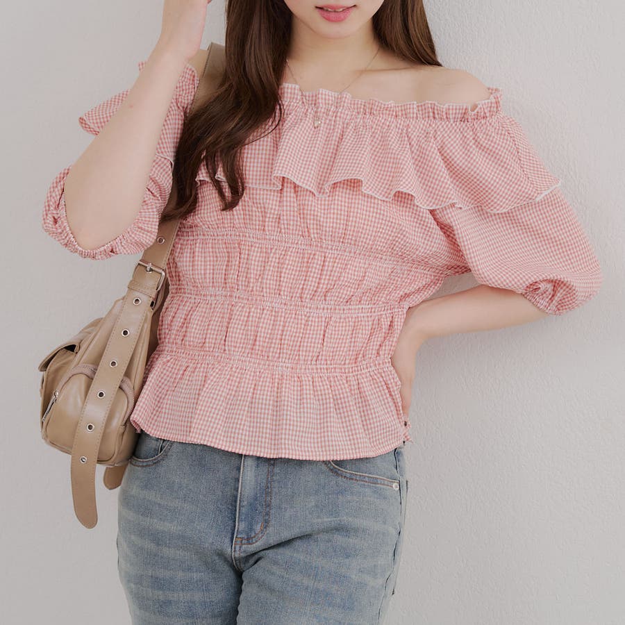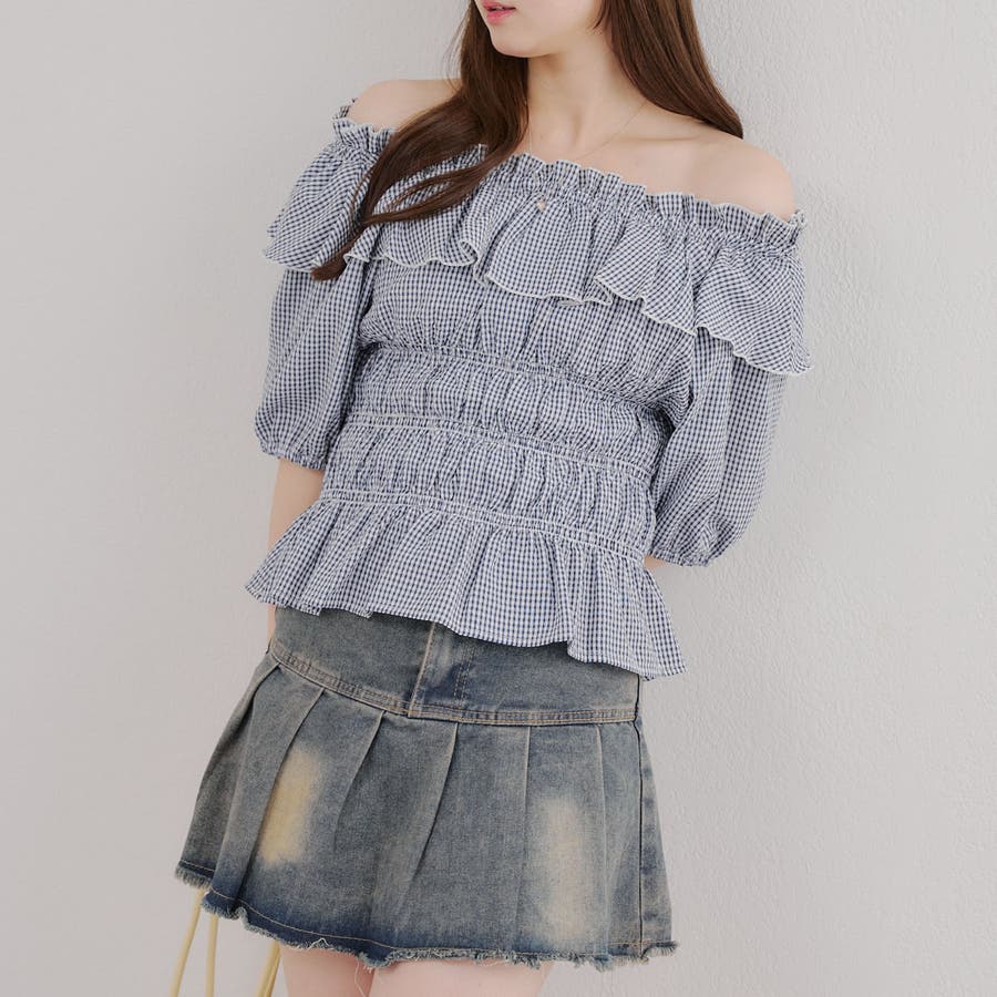RMAF Remindmeandforever olivedesolive niceclaup 夏 夏服 夏物 秋 秋服 秋物 韓国 韓国系 韓国風 韓国ファッション 10代 20代 30代 大人 人気 大人かわいい 大人カジュアル トレンド 新作 プチプラ トップス ブラウス シャーリング シャーリングブラウス チェック柄ブラウス チェック柄 ギンガムチェックブラウス ギンガムチェック オフショルブラウス オフショル 6052040040