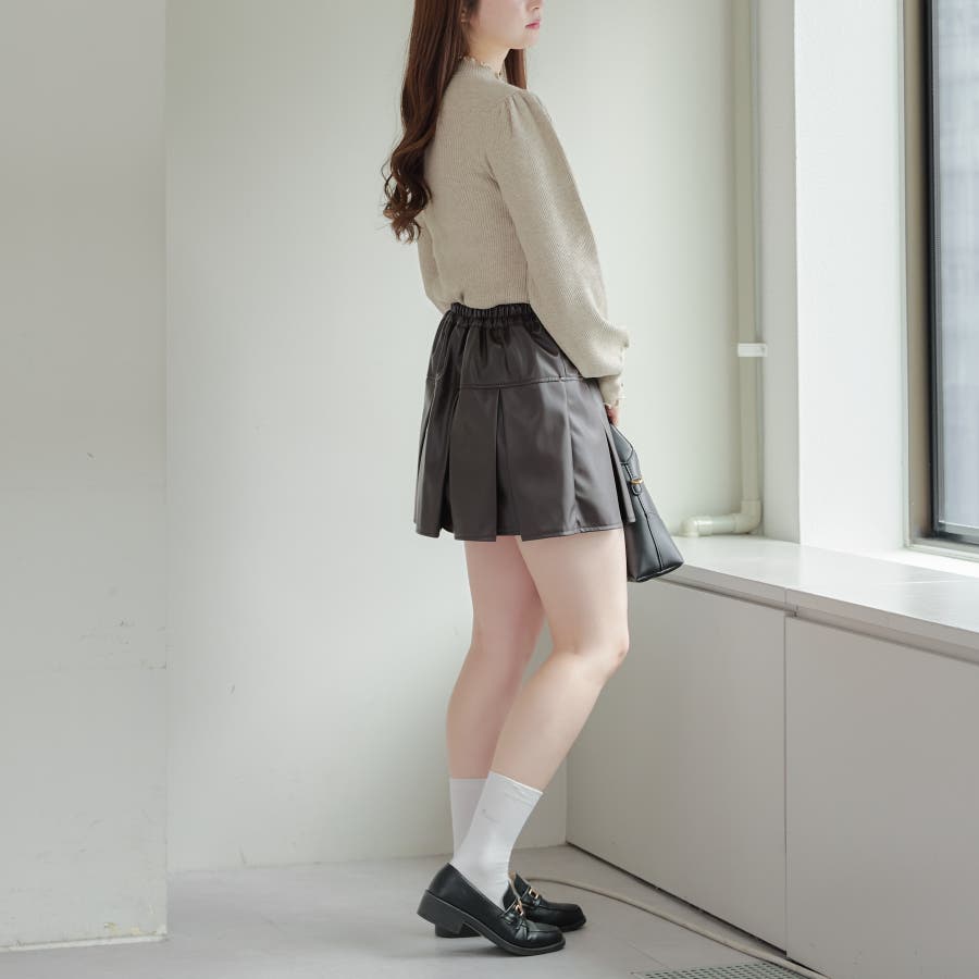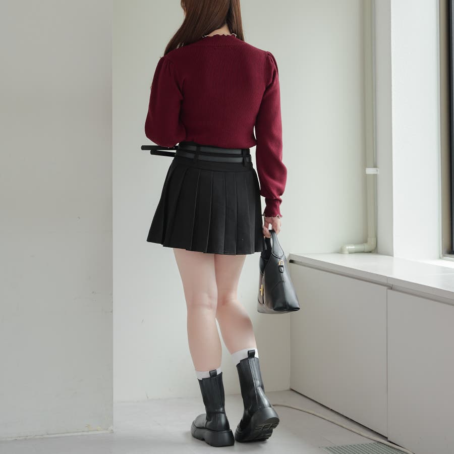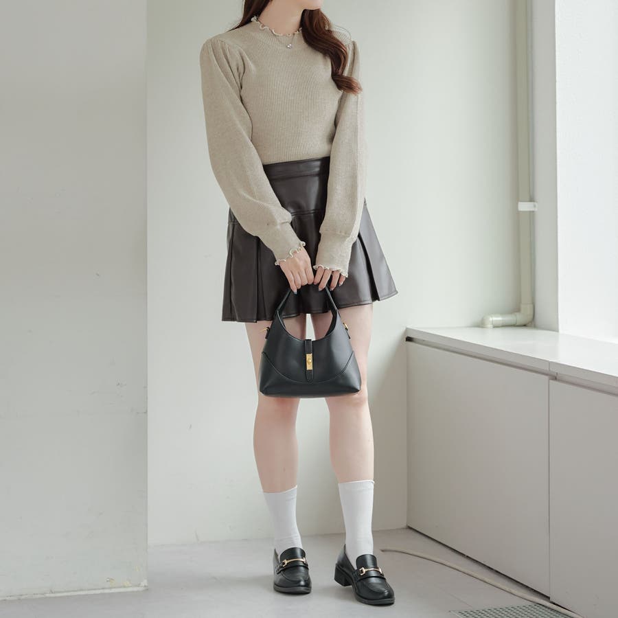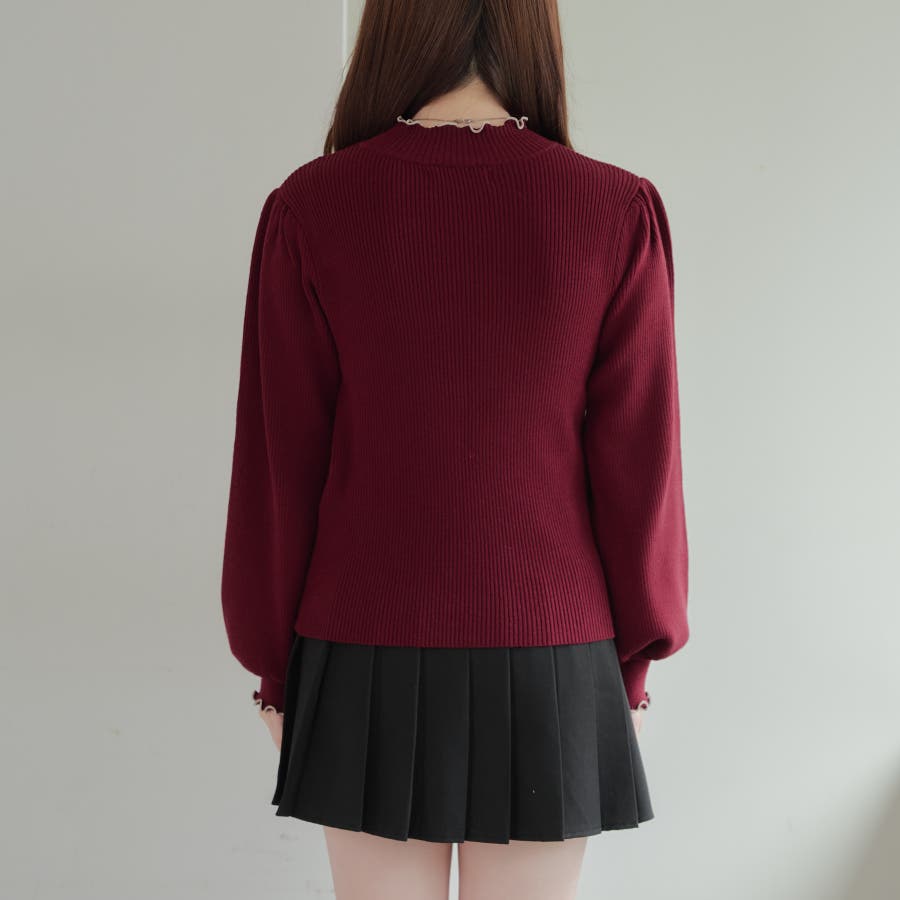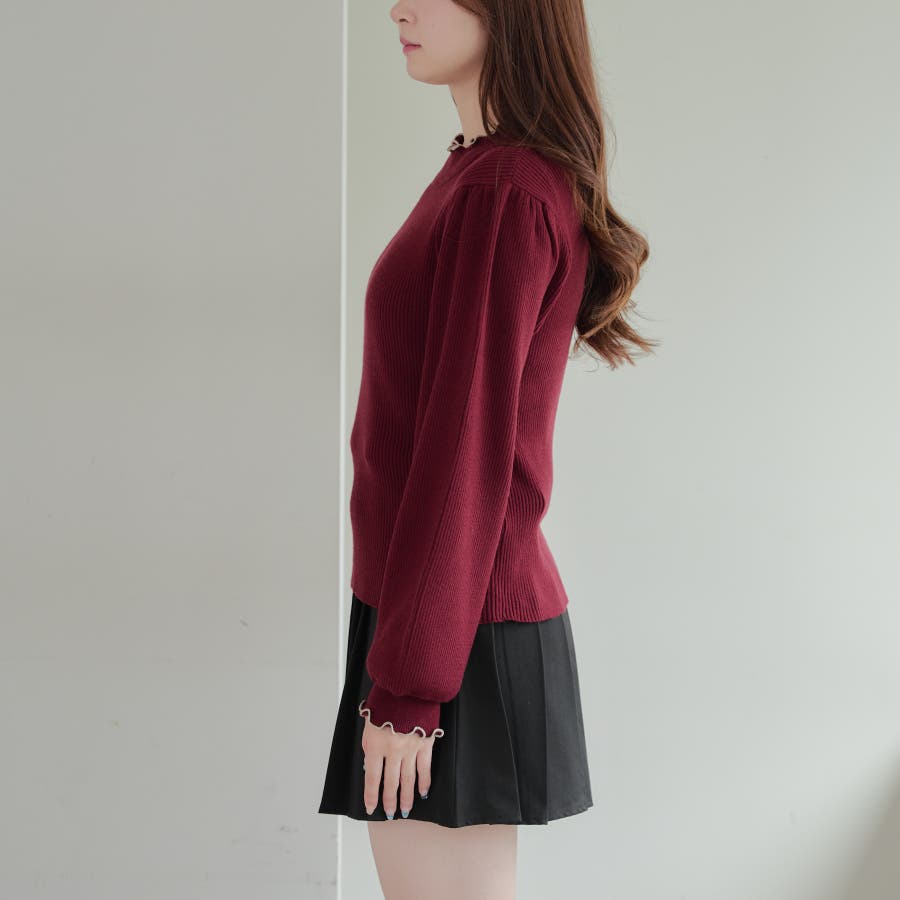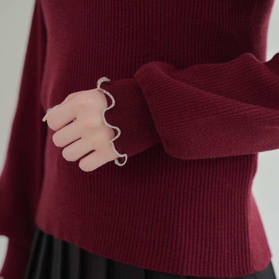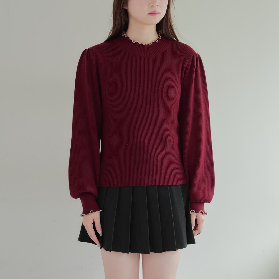 ・毎年人気の首元と袖口にメロウ加工が施された甘さのあるデザインニット。