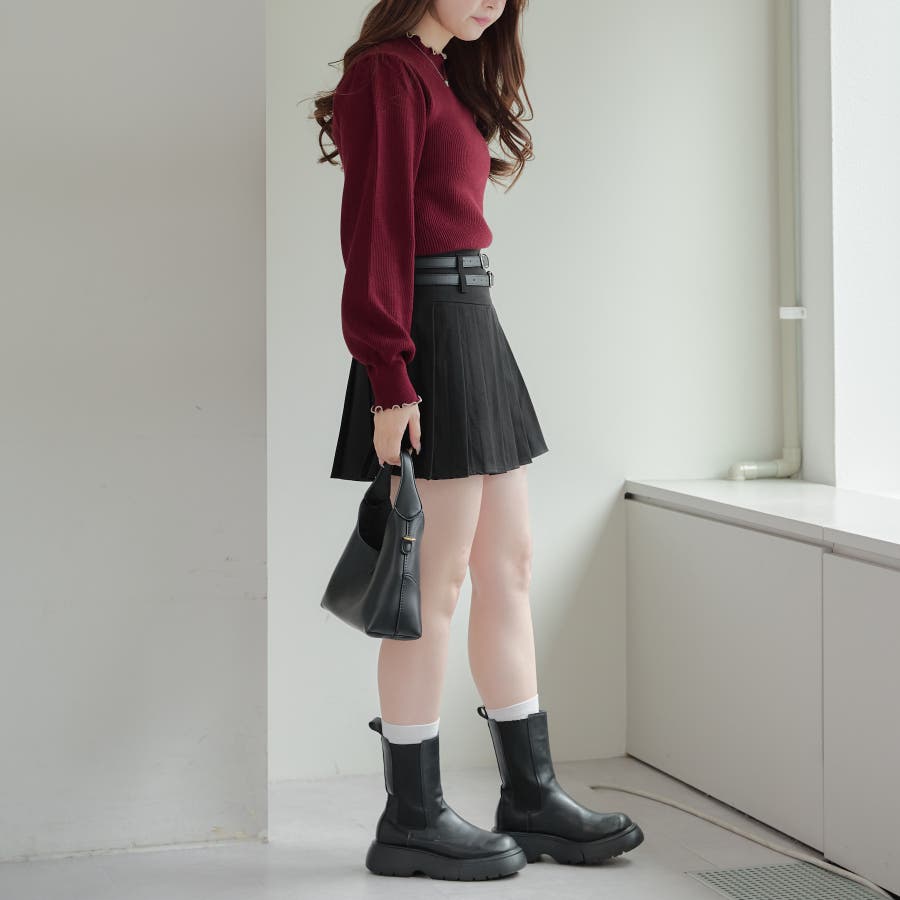 ・ショート丈のボトムとロングブーツで合わせたトレンド感のある旬な着こなしも◎