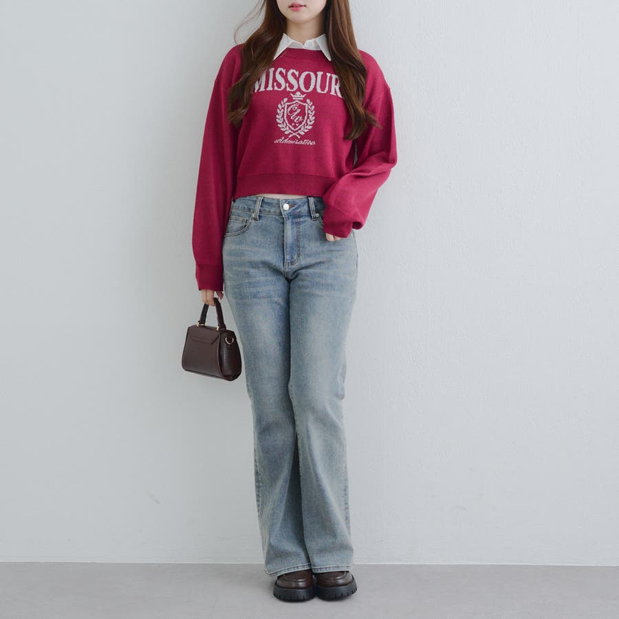 ・ハイウエストのデニムフレアパンツと合わせてスタイルアップ!