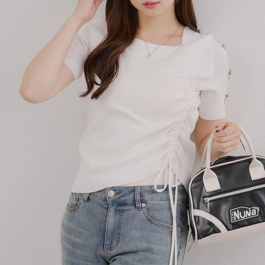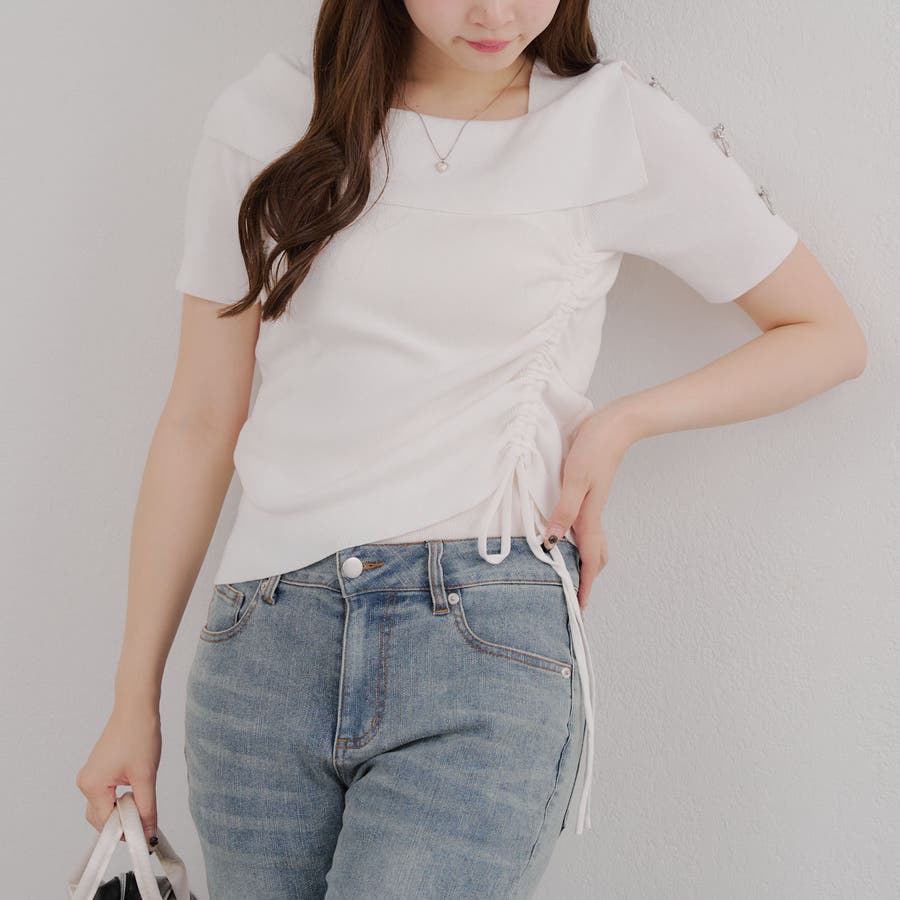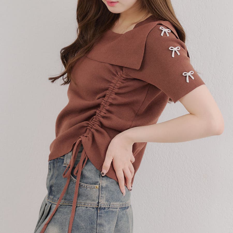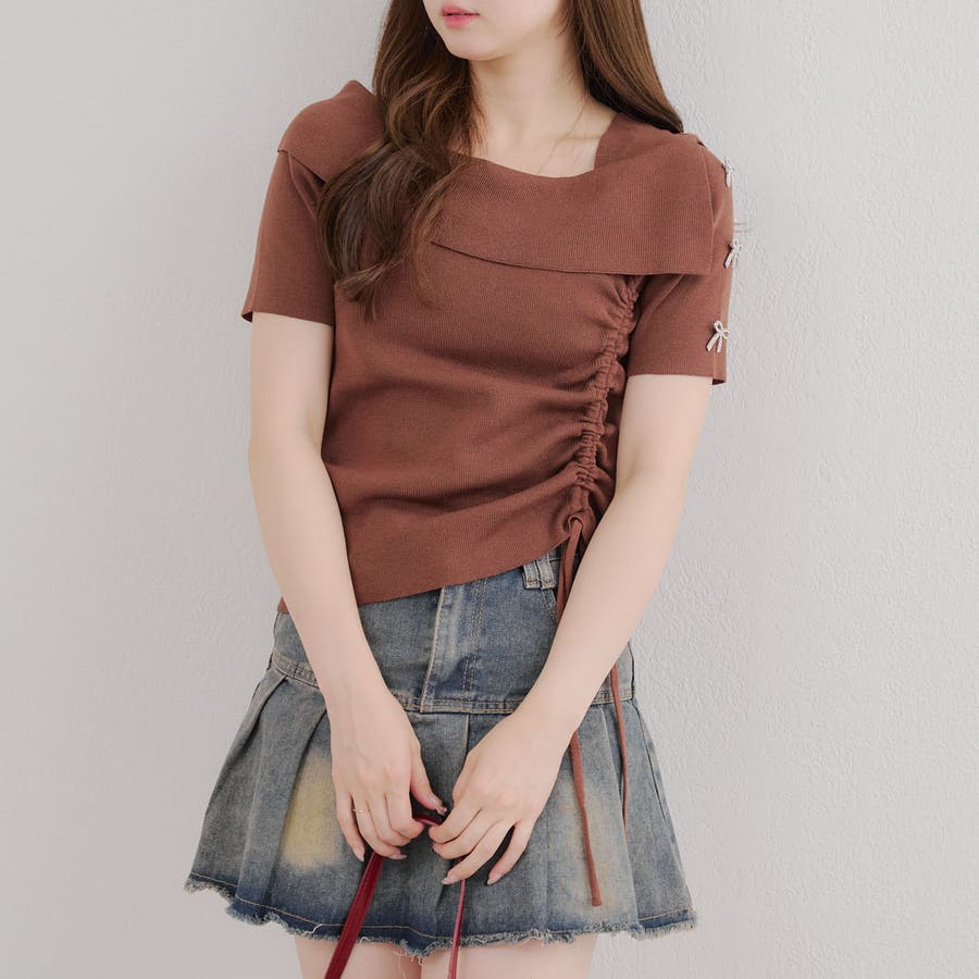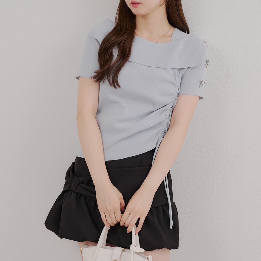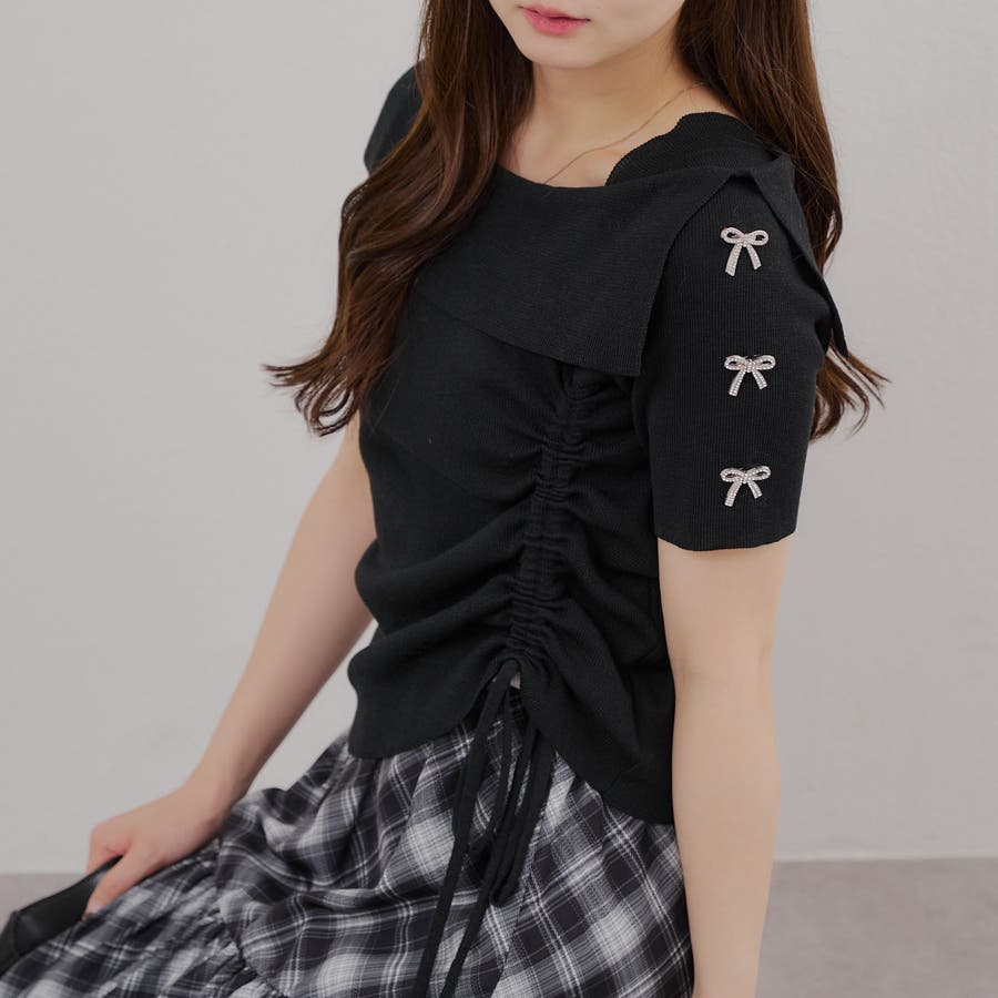 RMAF Remindmeandforever olivedesolive niceclaup 夏 夏服 夏物 韓国 韓国系 韓国風 韓国ファッション 10代 20代 30代 大人 人気 大人かわいい 大人カジュアル トレンド 新作 プチプラ トップス ドロストトップス リボン リボントップス 半袖 オフショル オフショルトップス 6052050310