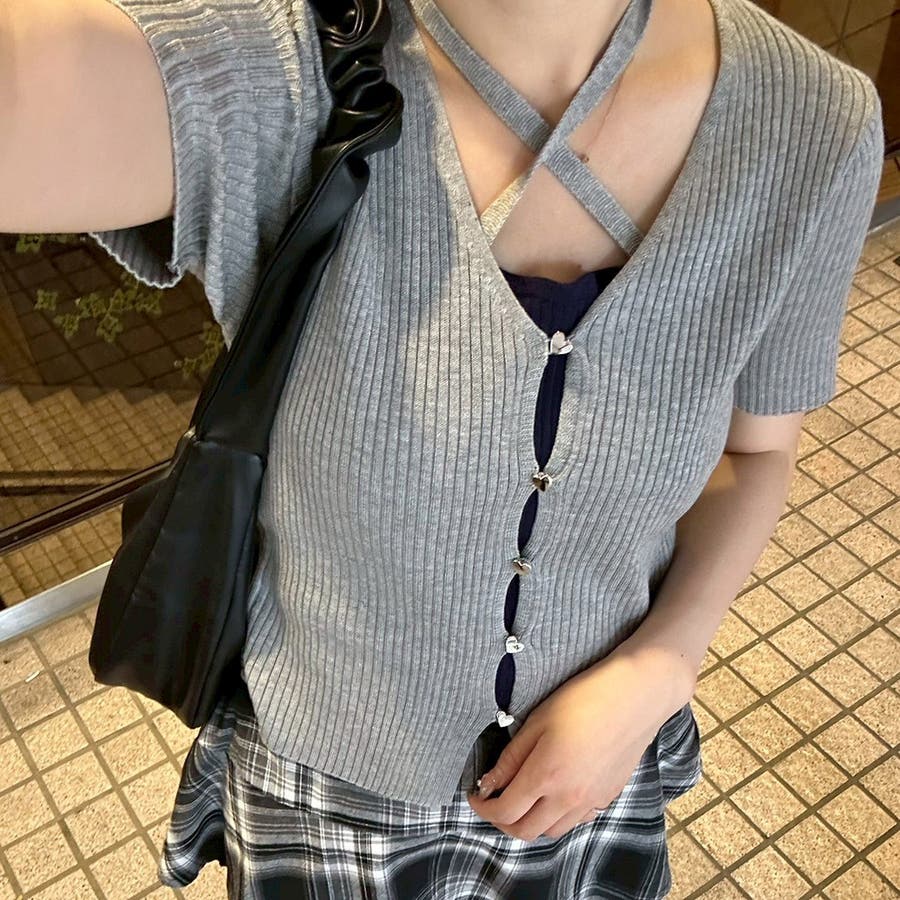 RMAF Remindmeandforever olivedesolive niceclaup 夏 夏服 夏物 秋 秋服 秋物 韓国 韓国系 韓国風 韓国ファッション 10代 20代 30代 大人 人気 大人かわいい 大人カジュアル トレンド 新作 プチプラ トップス 半袖 半袖ニット ハート カーディガン カーデ ドッキングトップス サマーニット ガーリー 6052050350