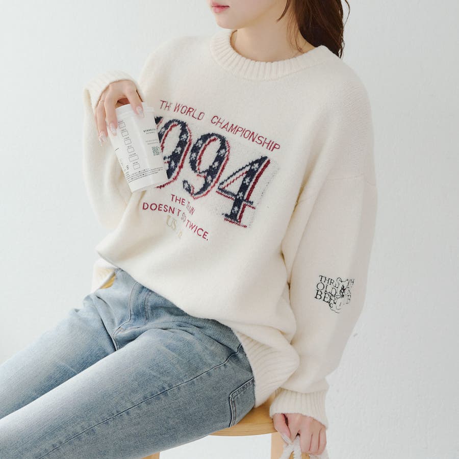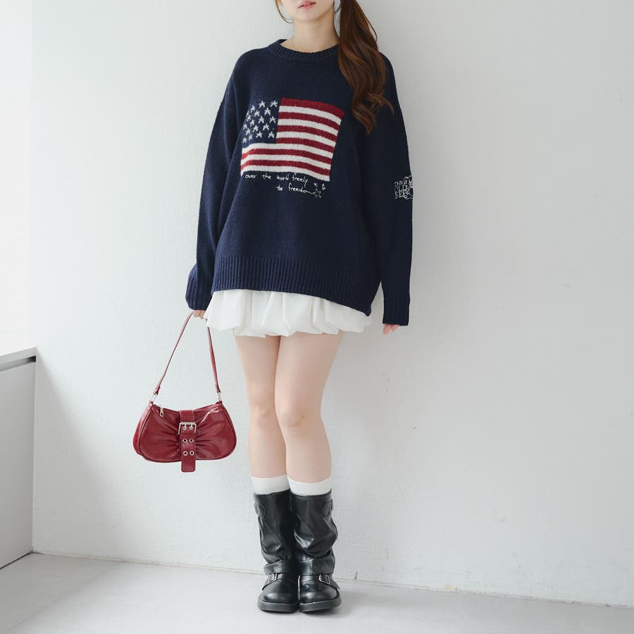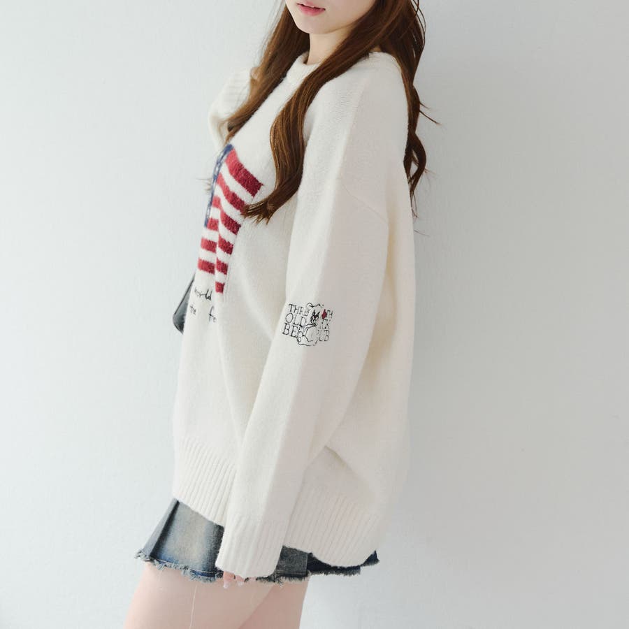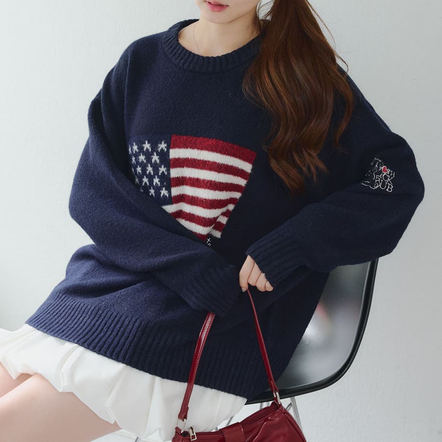 RMAF Remindmeandforever olivedesolive niceclaup 秋 秋服 秋物 冬 冬服 冬物 韓国 韓国系 韓国風 韓国ファッション 10代 20代 30代 大人 人気 大人かわいい 大人カジュアル トレンド 新作 プチプラ ゆったり トップス ニット ニットトップス 長袖 プルオーバー 国旗ニット ロゴニット ゆったりニット オーバーサイズ 6052050520