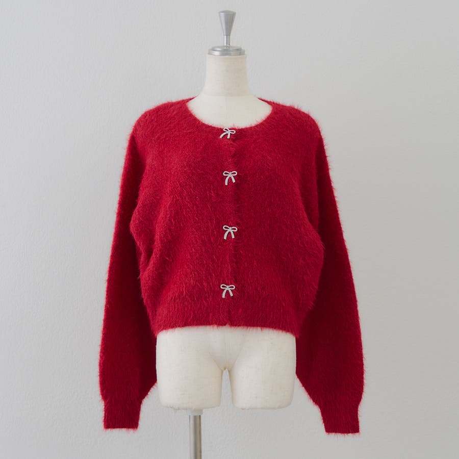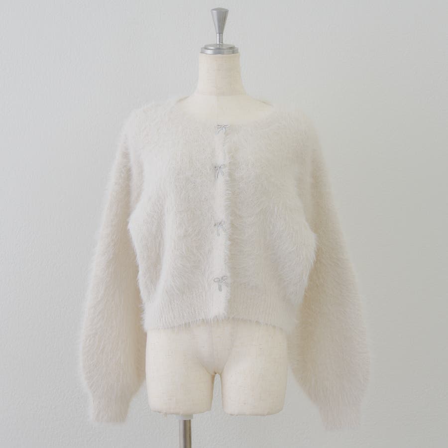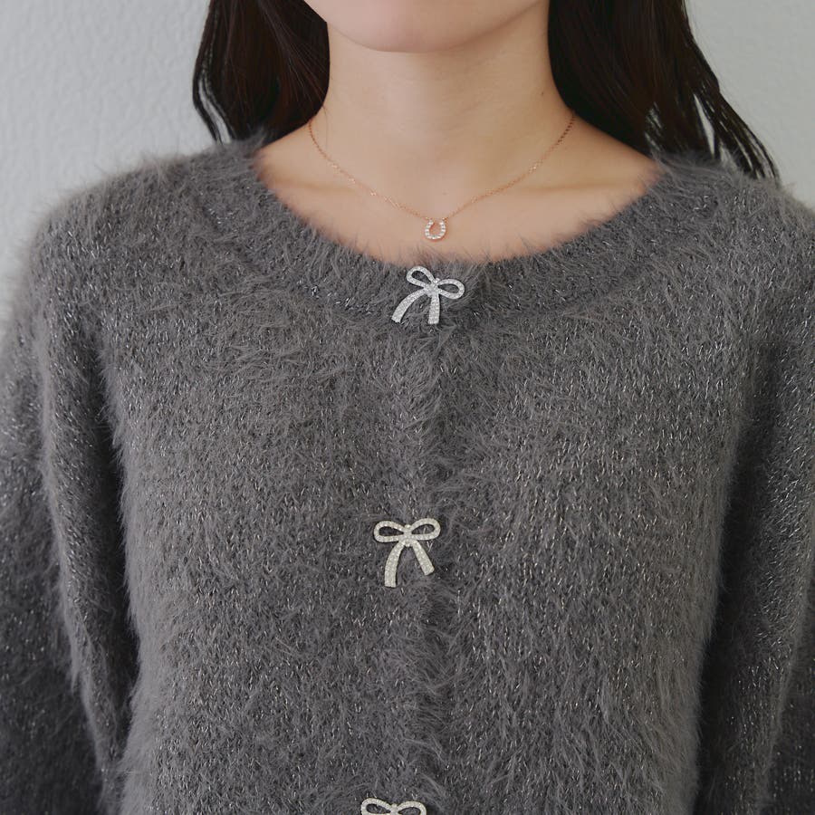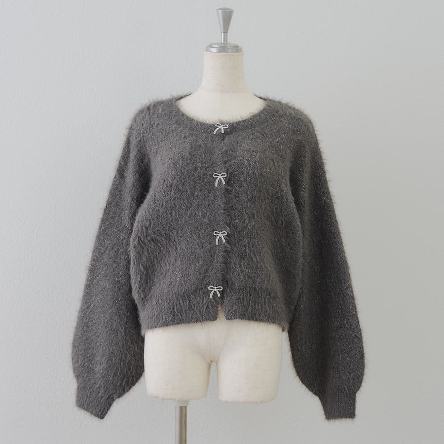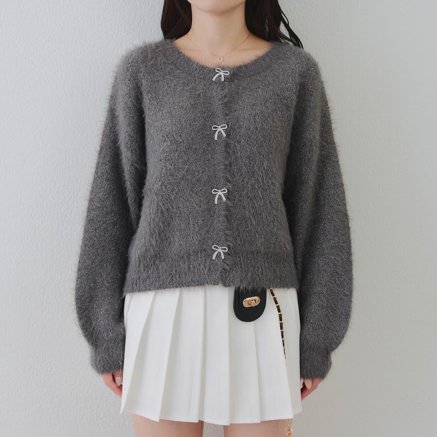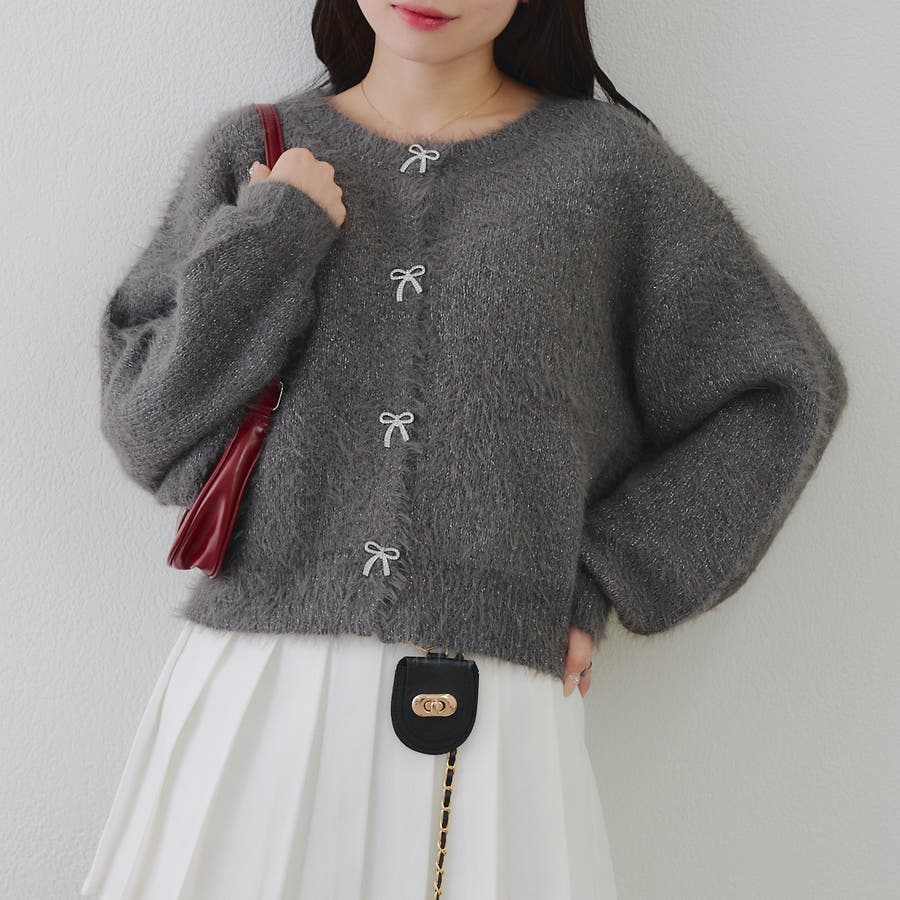 ・キラキラとしたビジューのリボンモチーフが可愛いカーディガン
