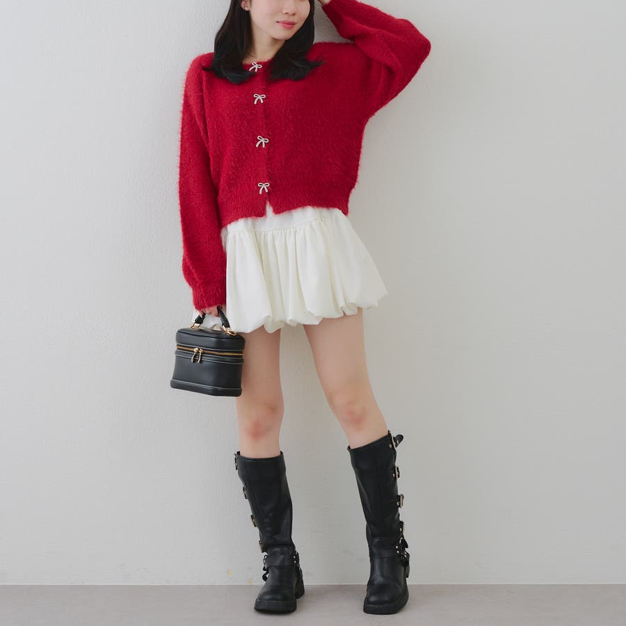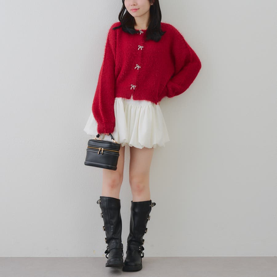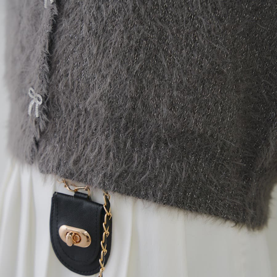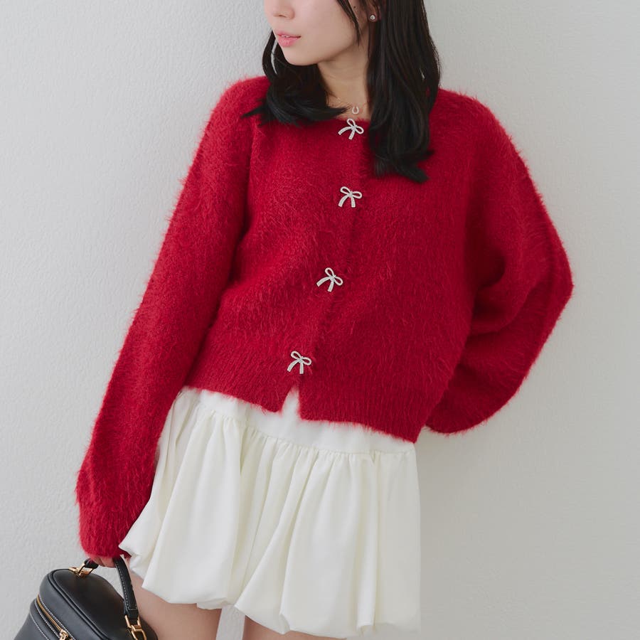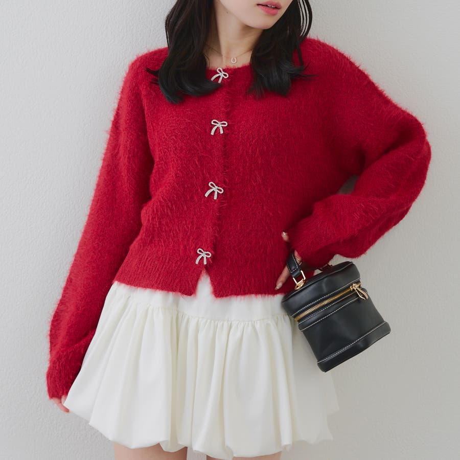・キラキラとしたビジューのリボンモチーフが可愛いカーディガン