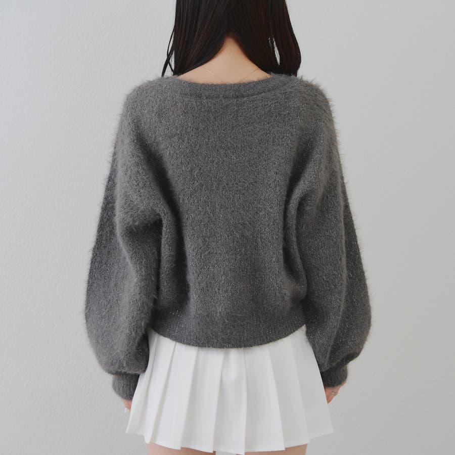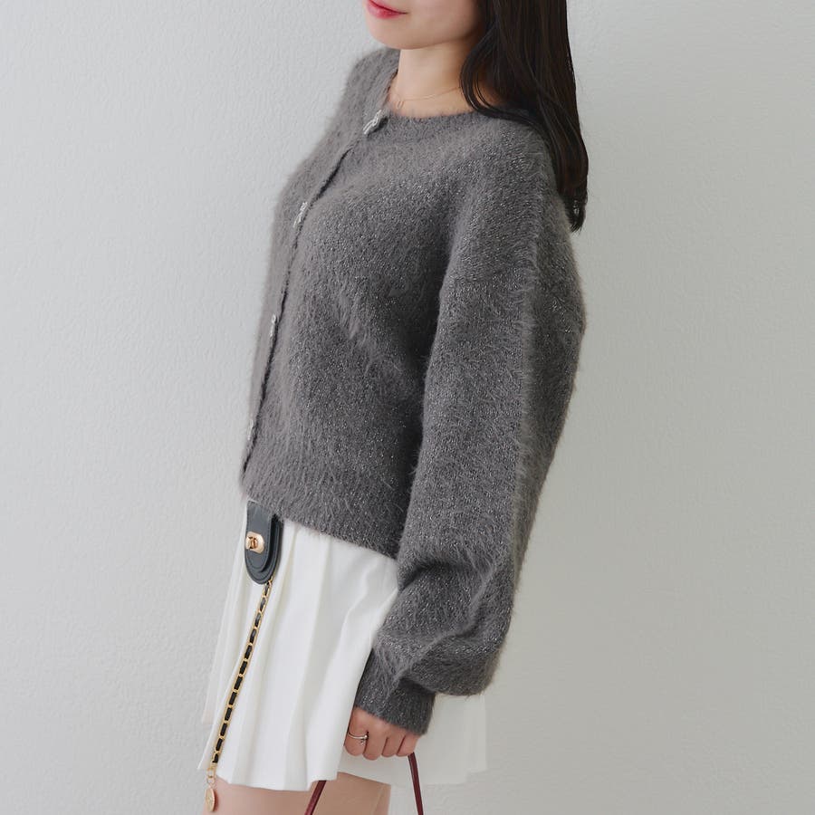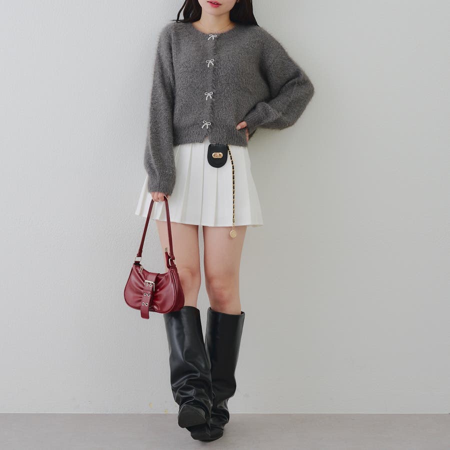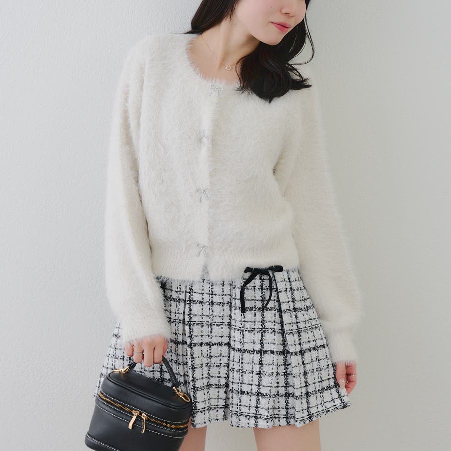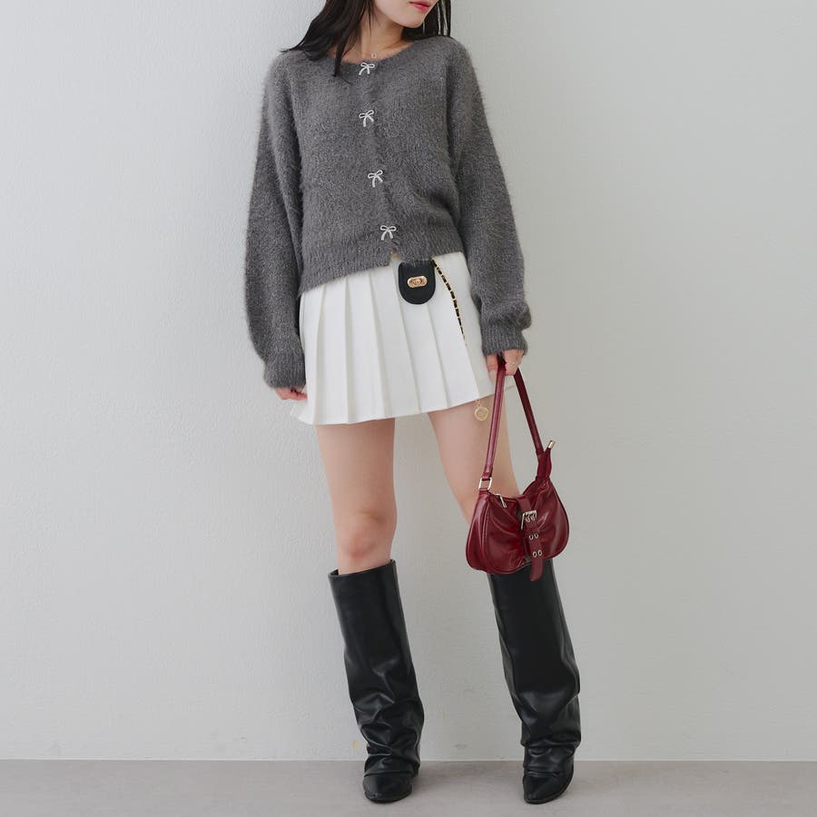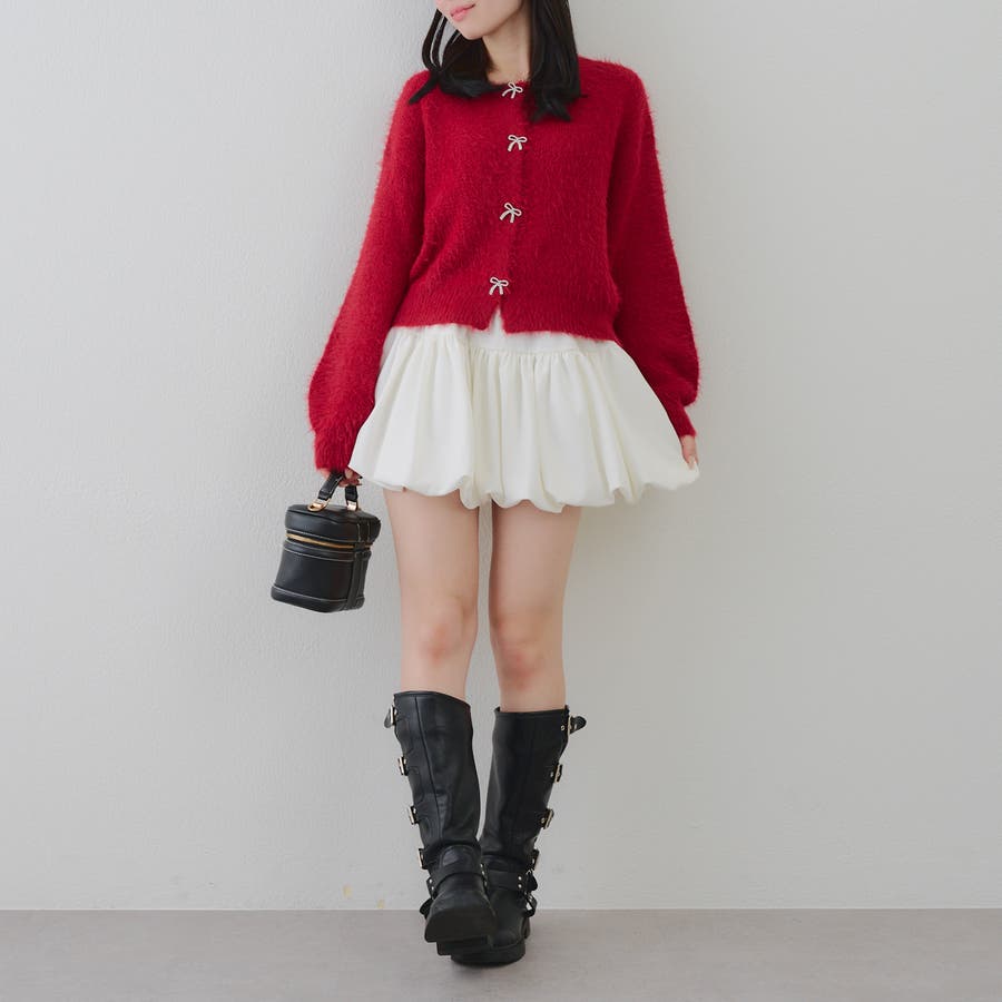 ・キラキラとしたビジューのリボンモチーフが可愛いカーディガン
