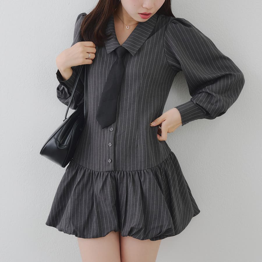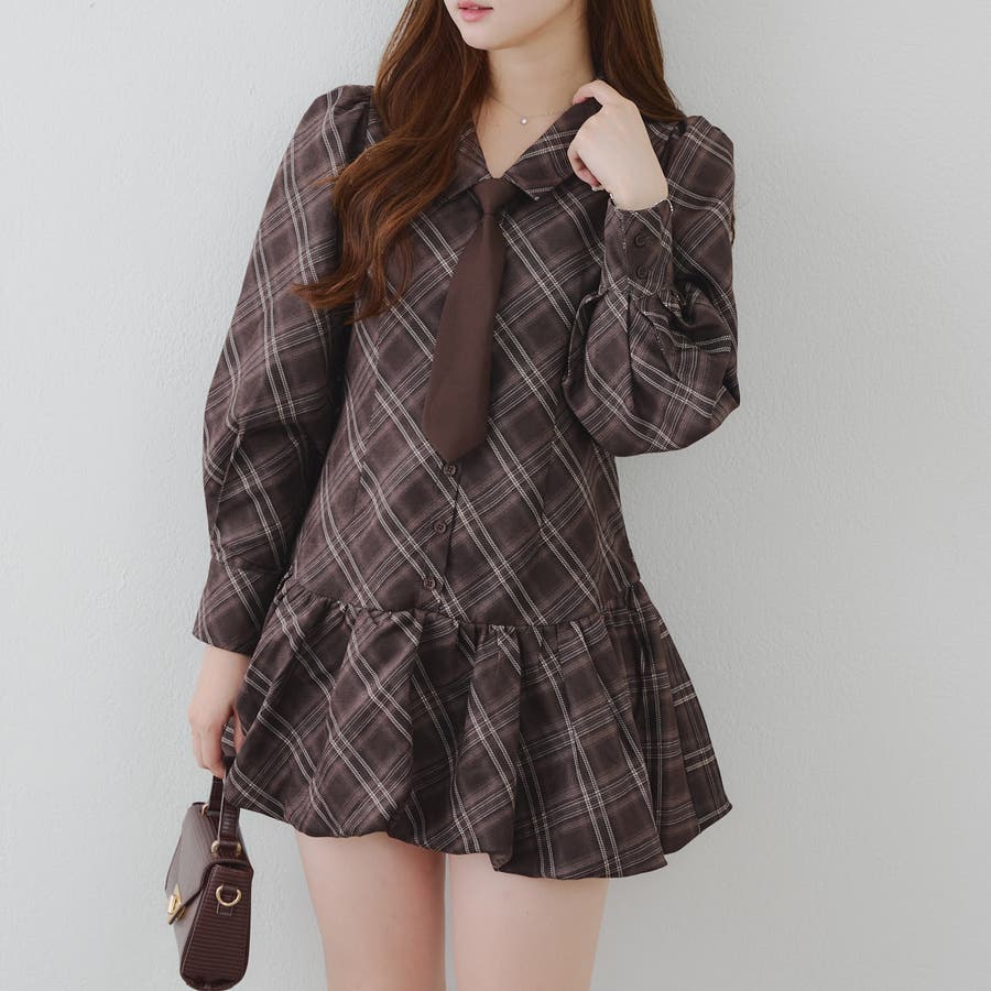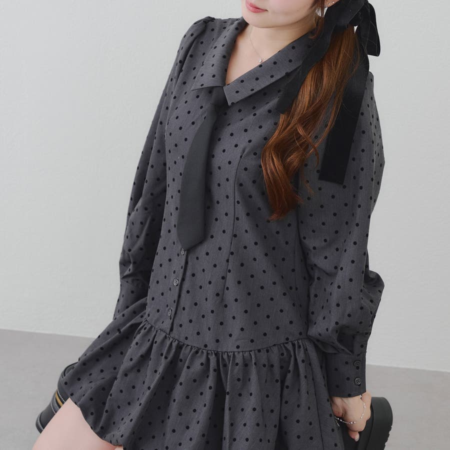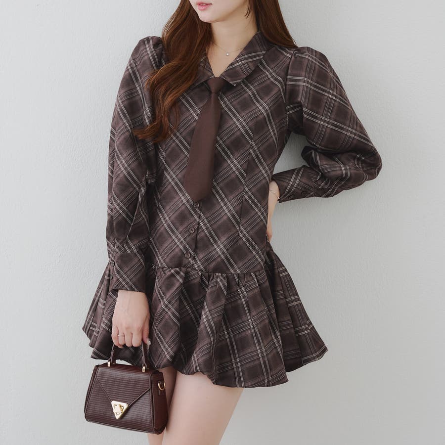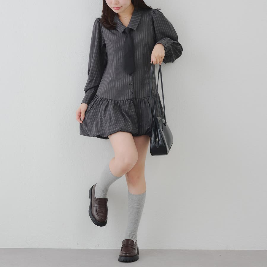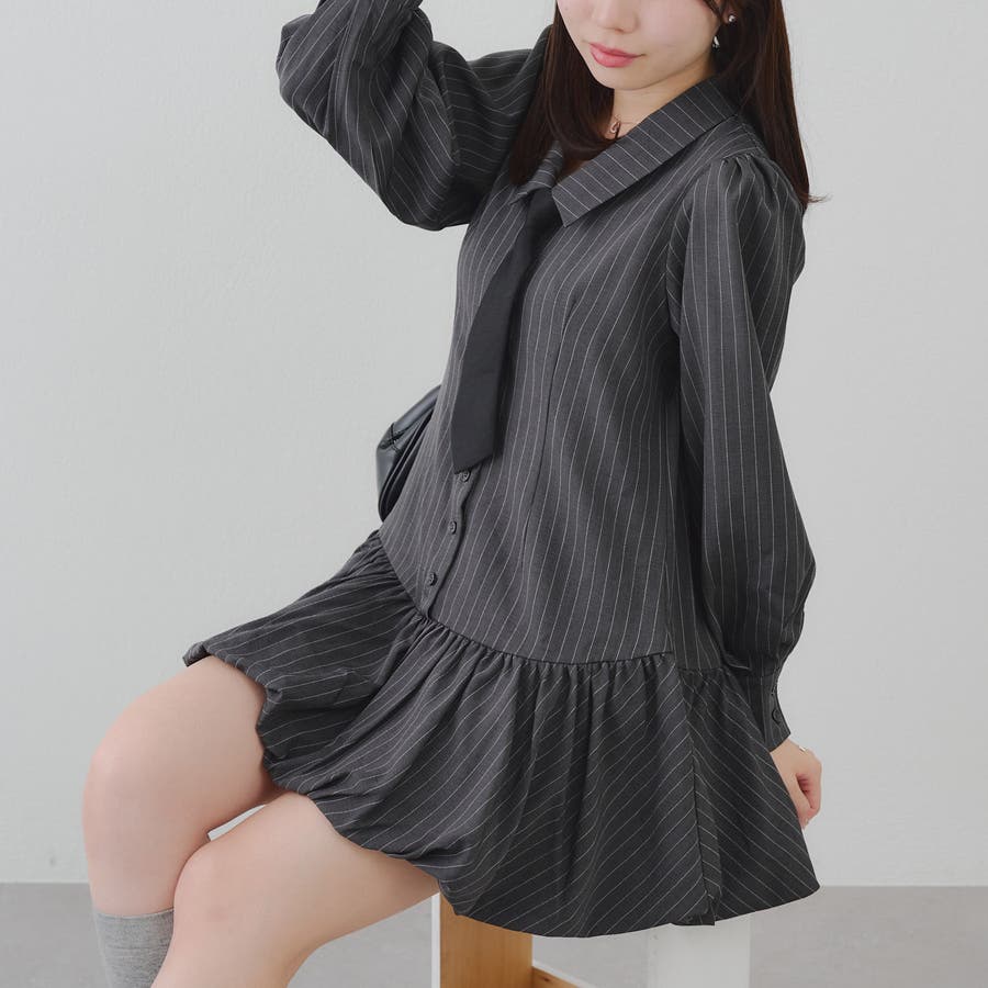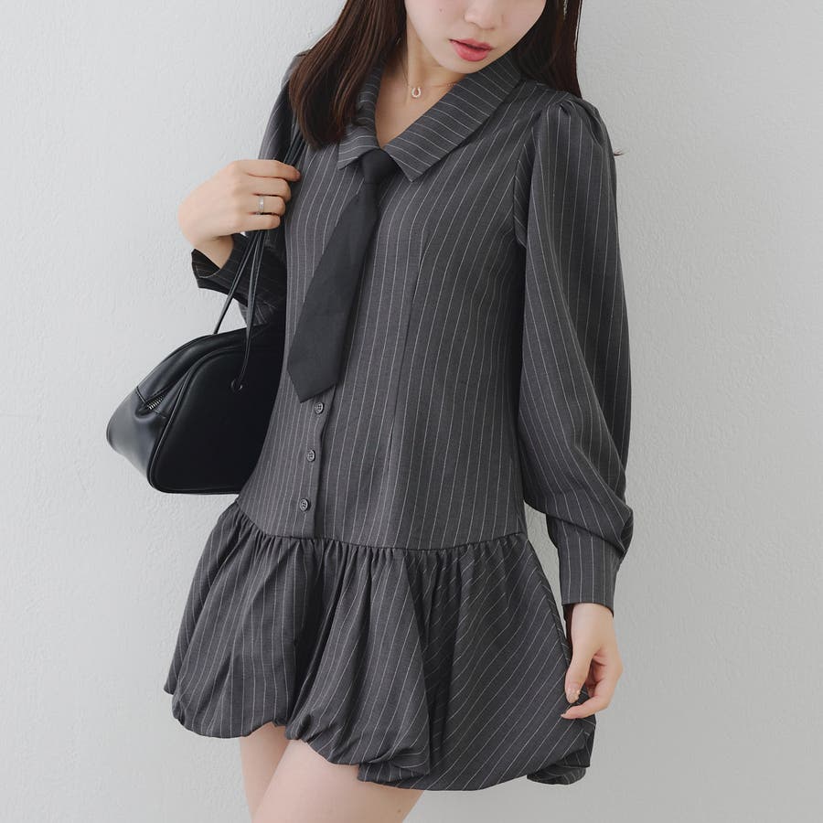 ・ネクタイ付きでクラシカルな雰囲気のトレンドワンピース