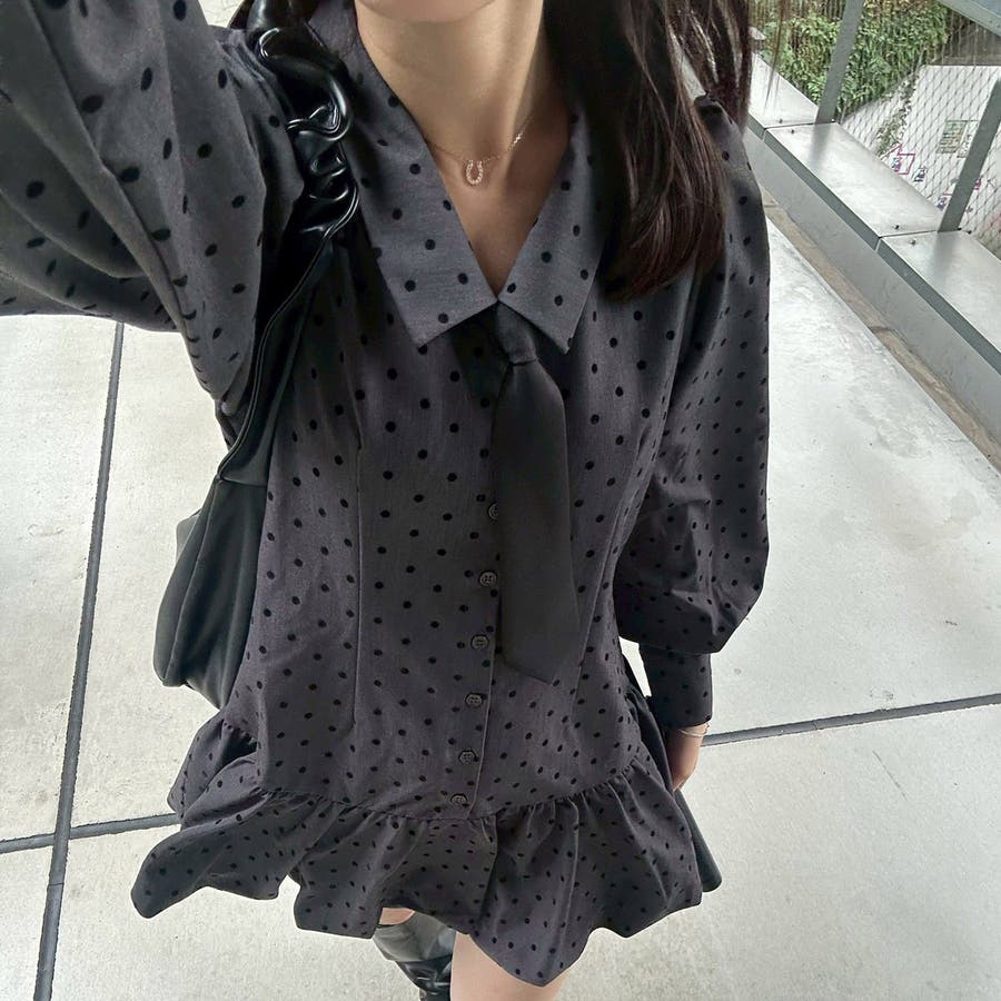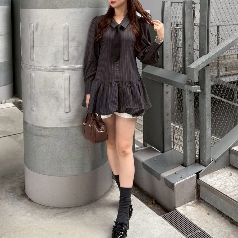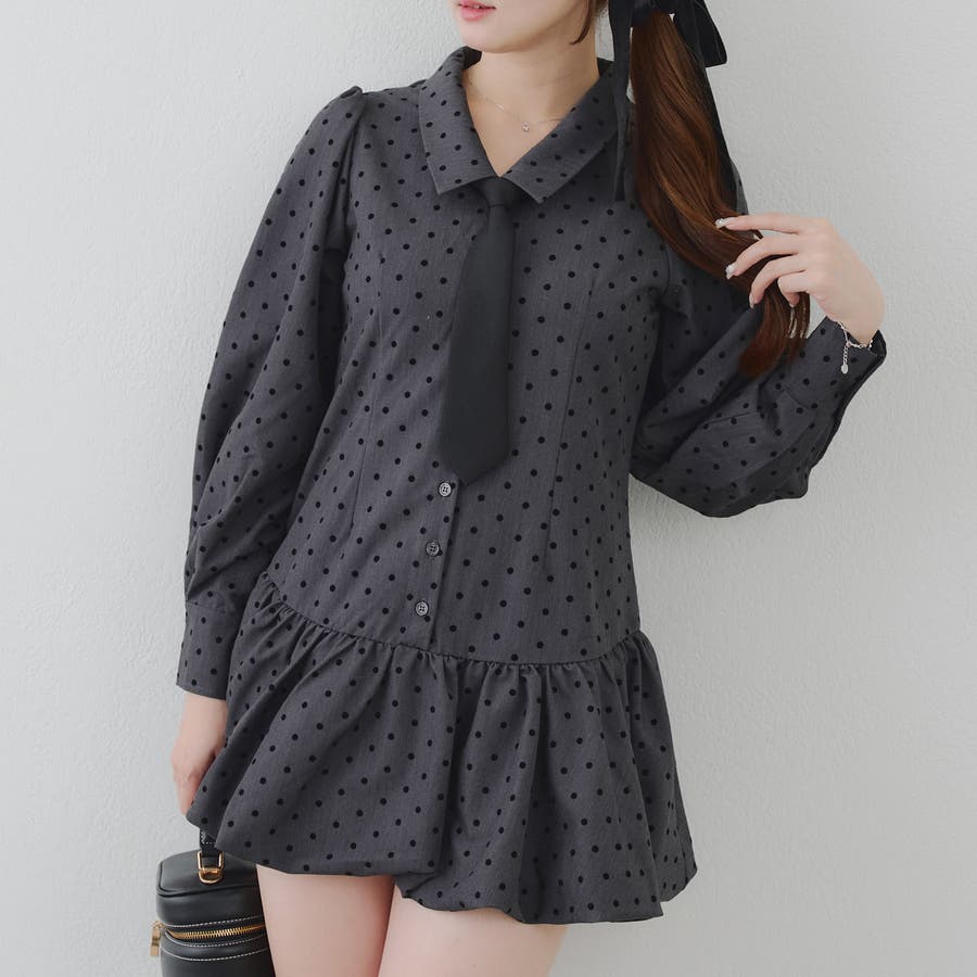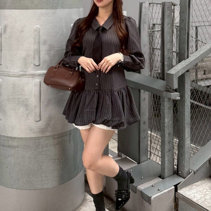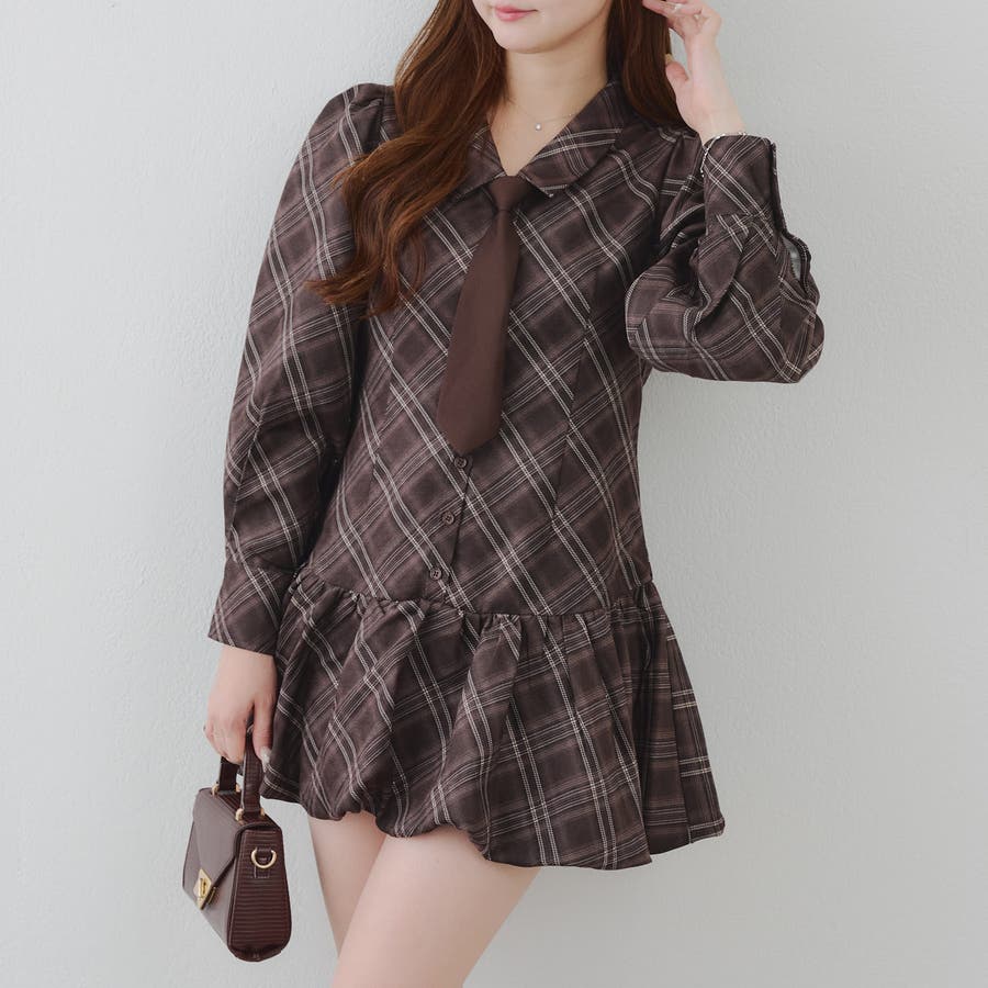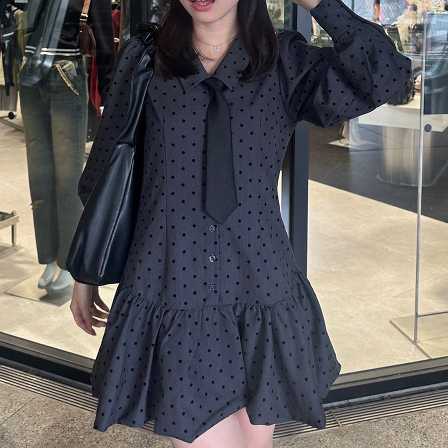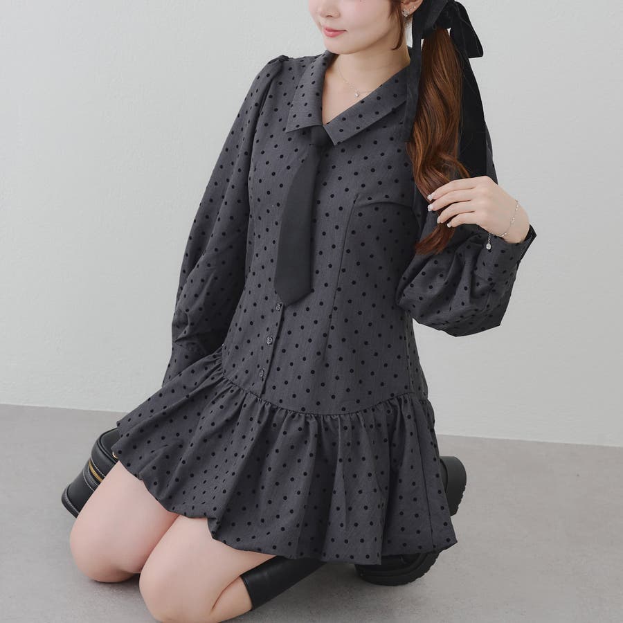 ・ネクタイ付きでクラシカルな雰囲気のトレンドワンピース
