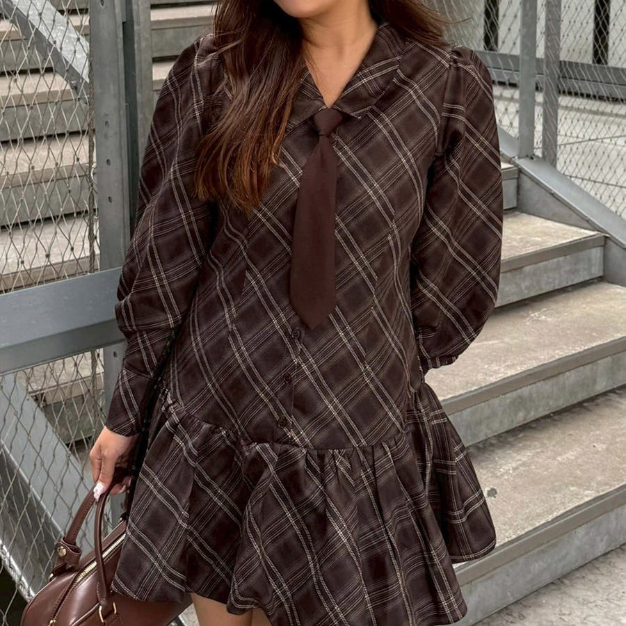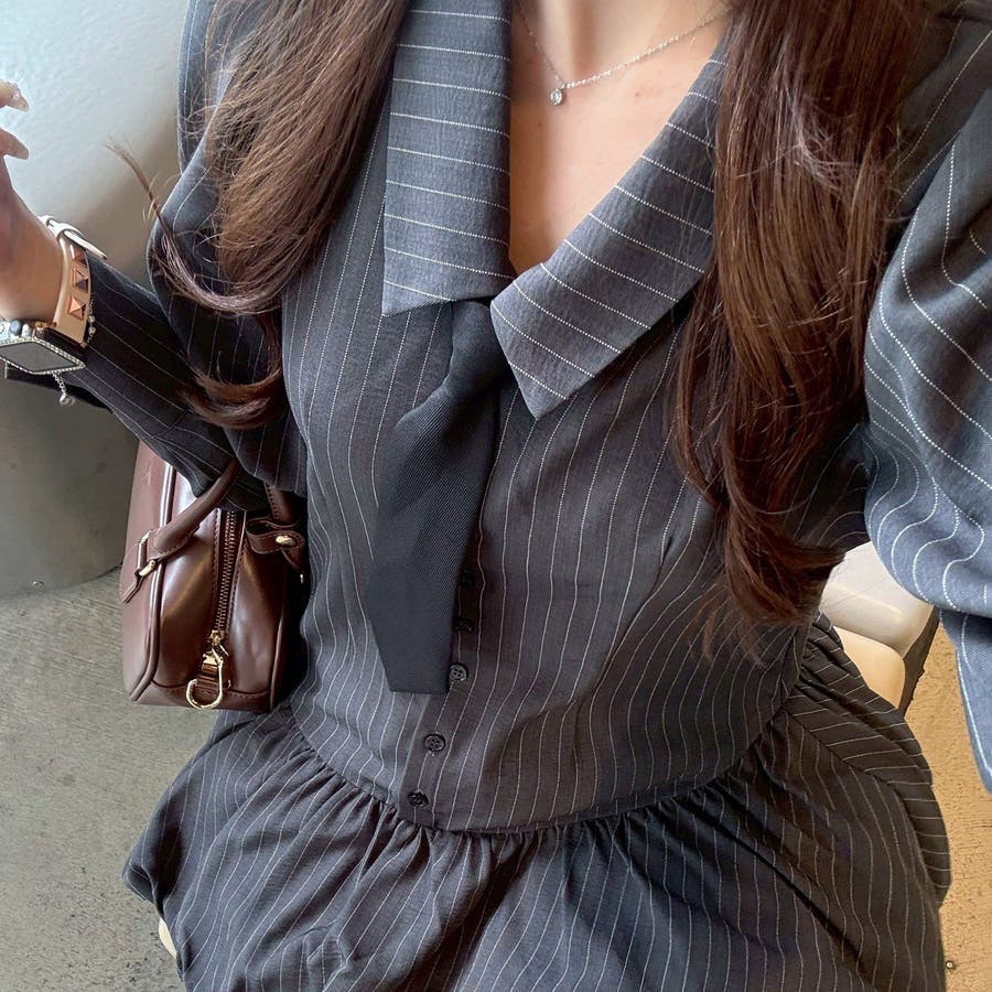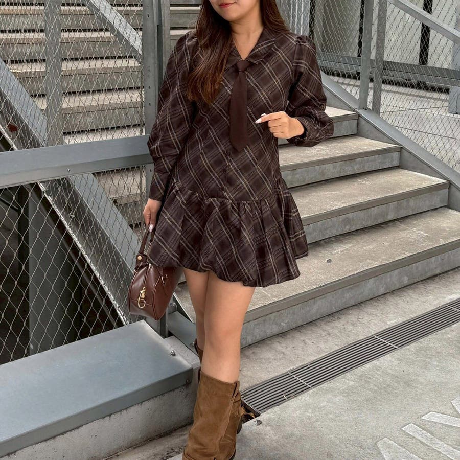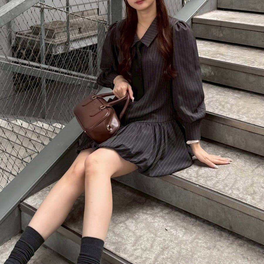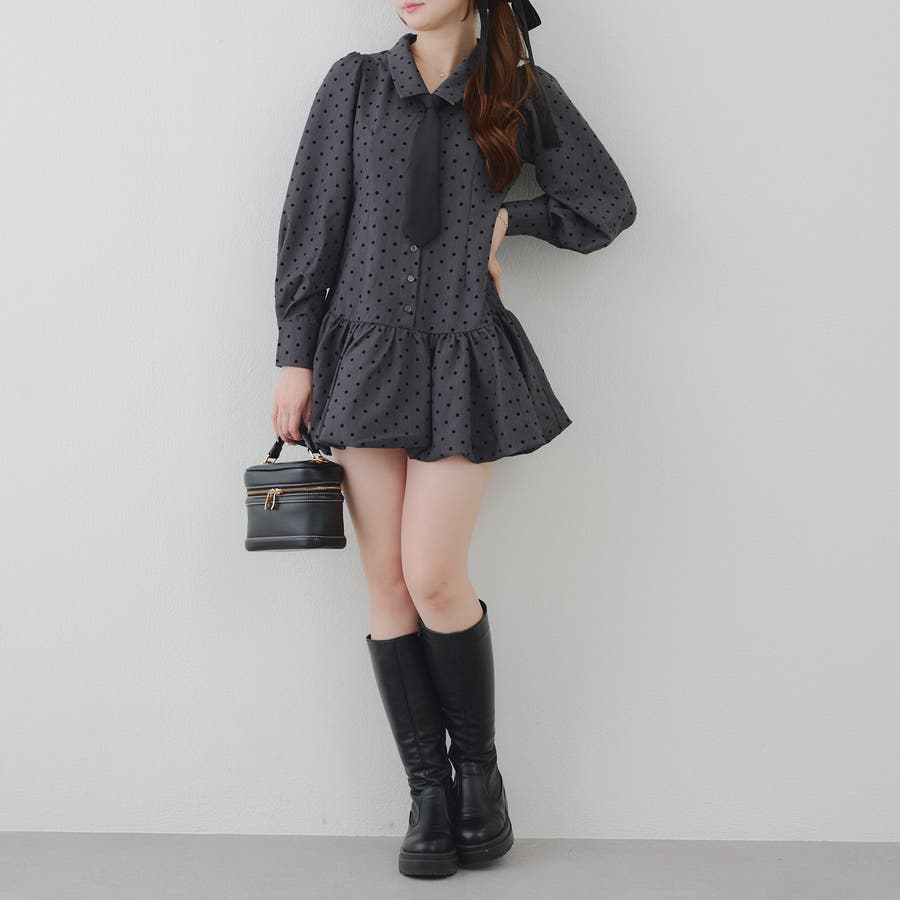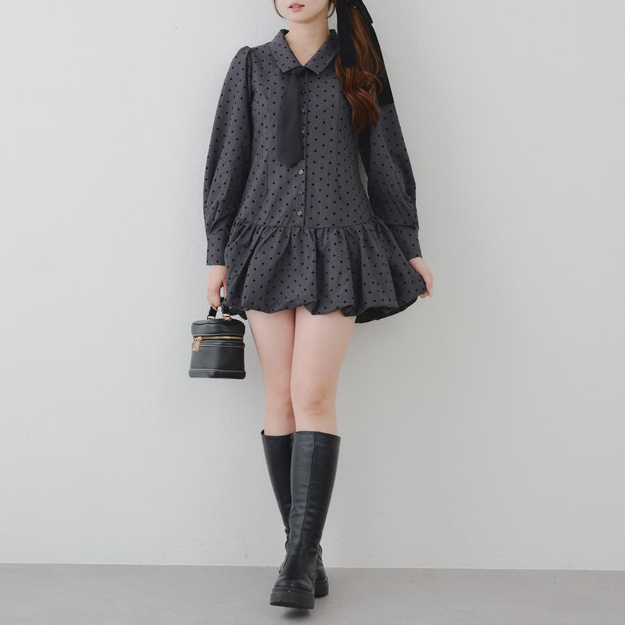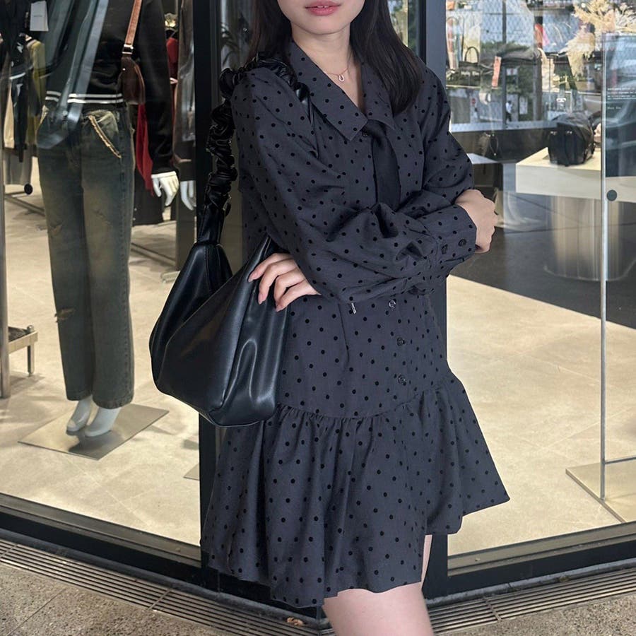 ・ネクタイ付きでクラシカルな雰囲気のトレンドワンピース