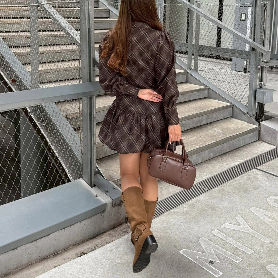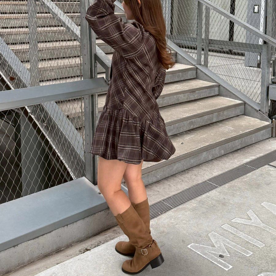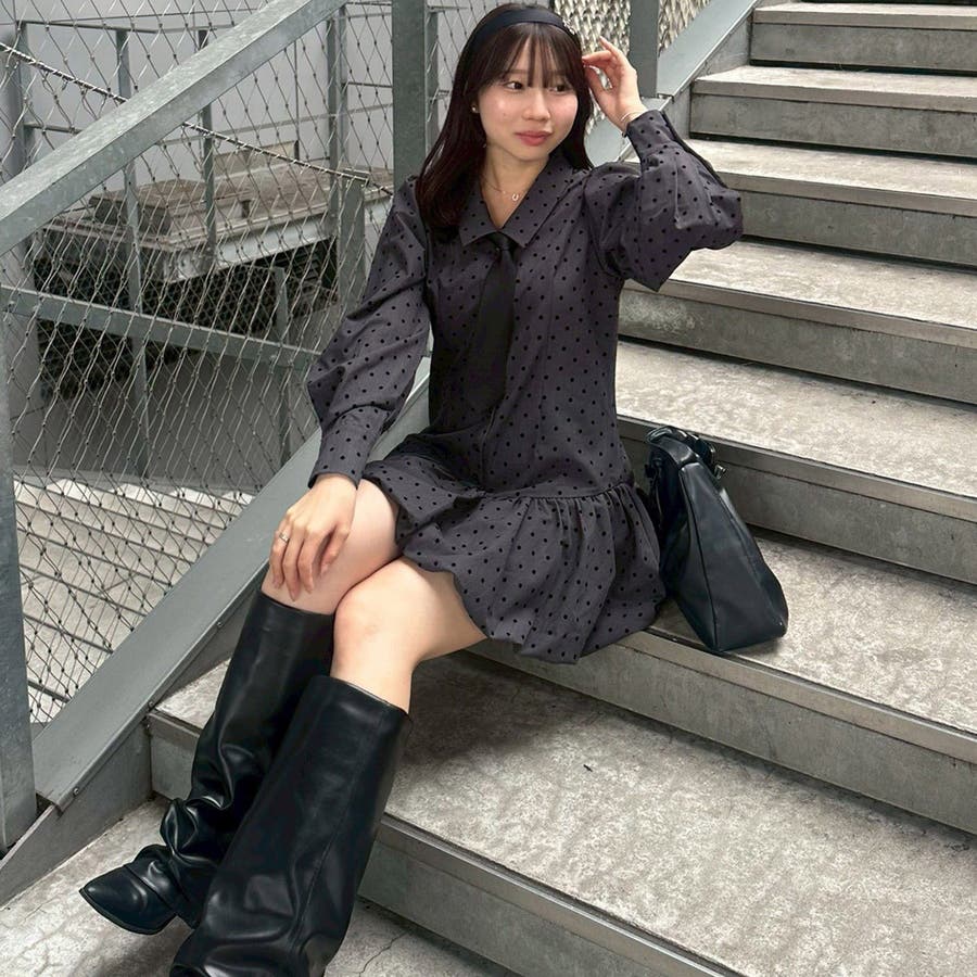 ・ルーズなロングブーツ合わせでこなれ感のある着こなしも◎