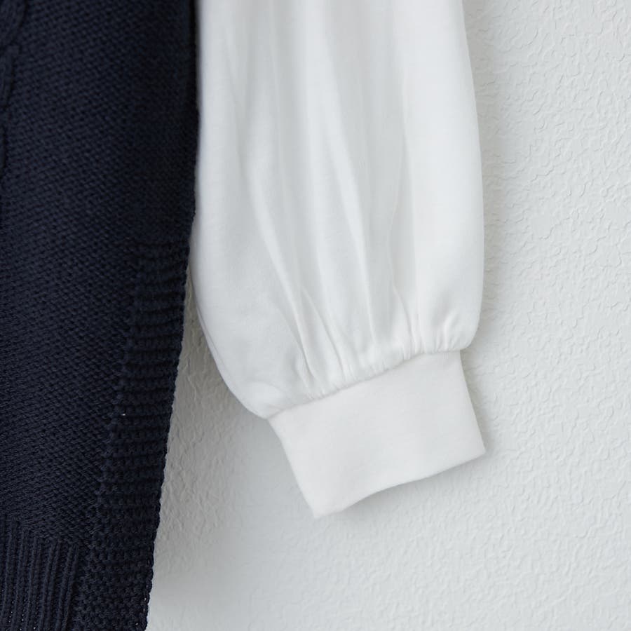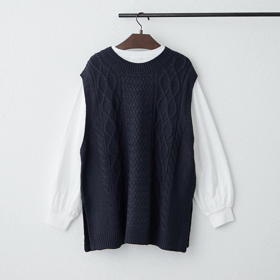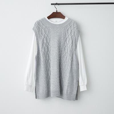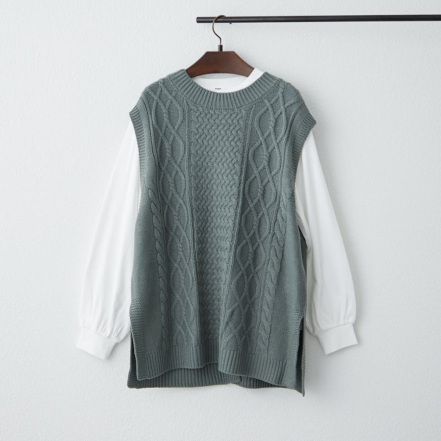・ニットベストとロンTのセットアイテム。別々でも着用できるので、着回しの幅が広がります。