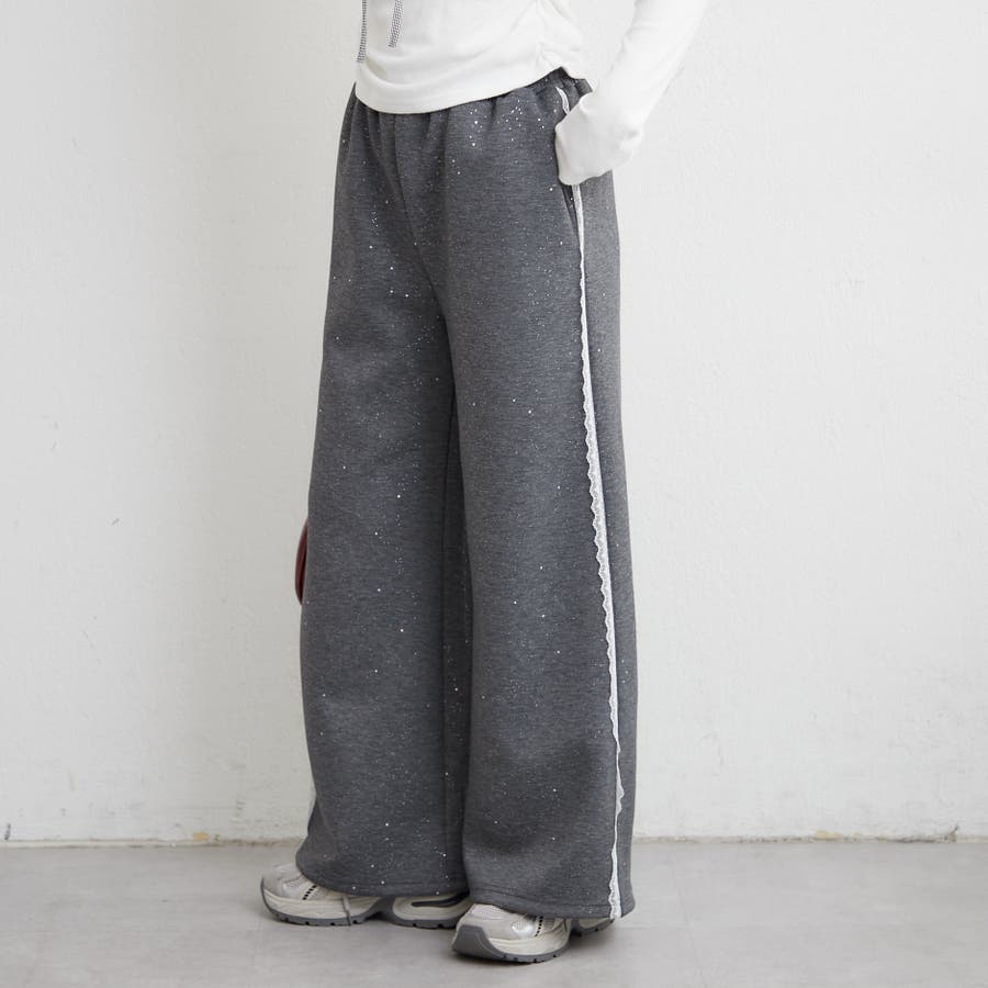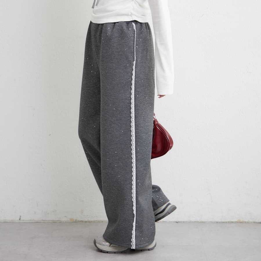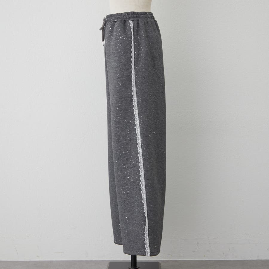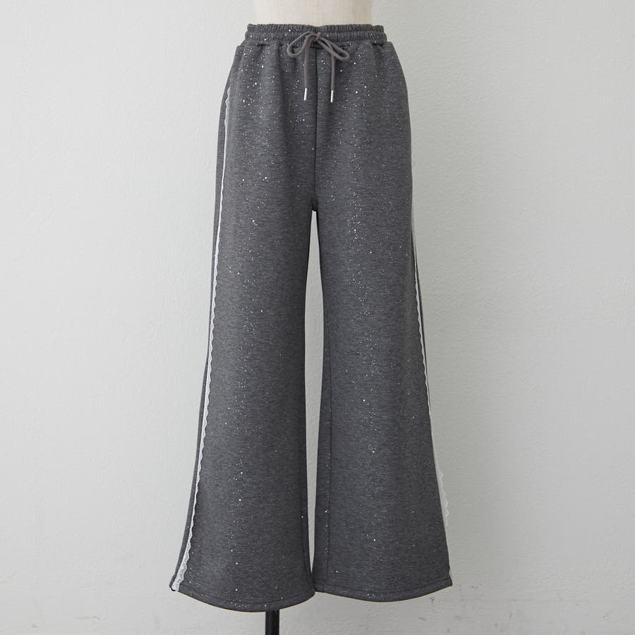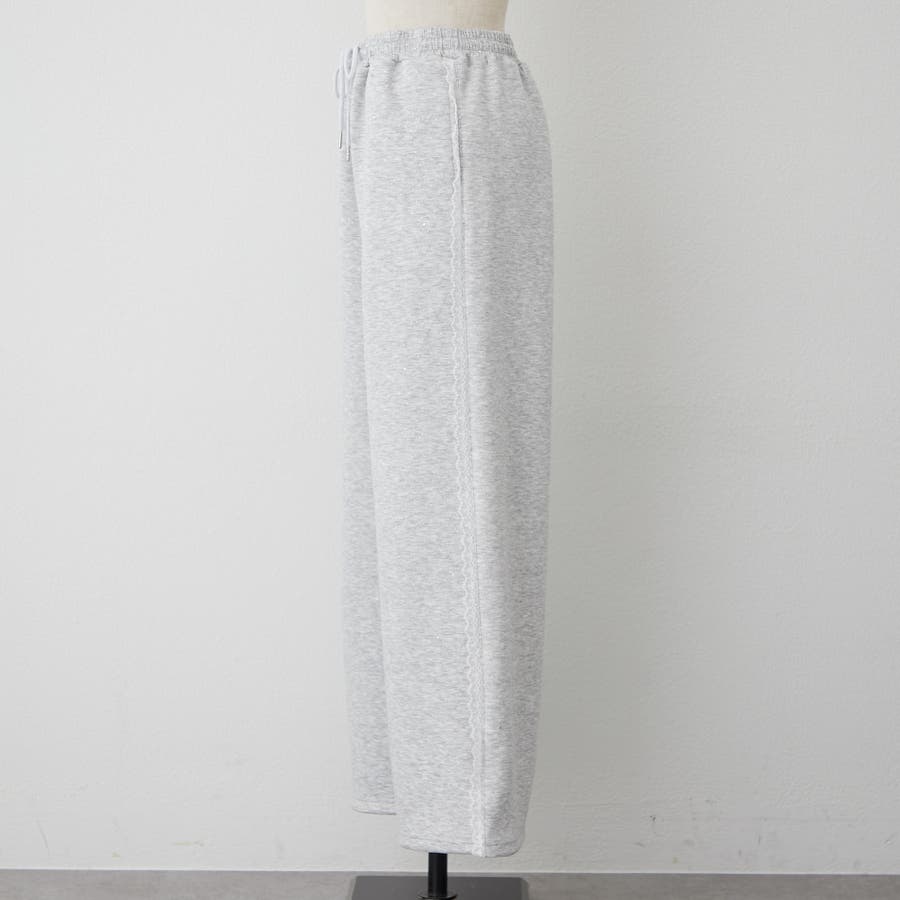 ・サイドにレースが施されたスウェットパンツ。