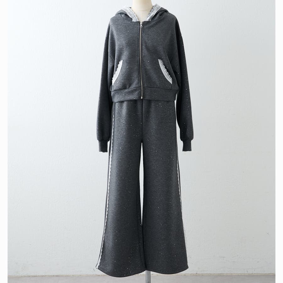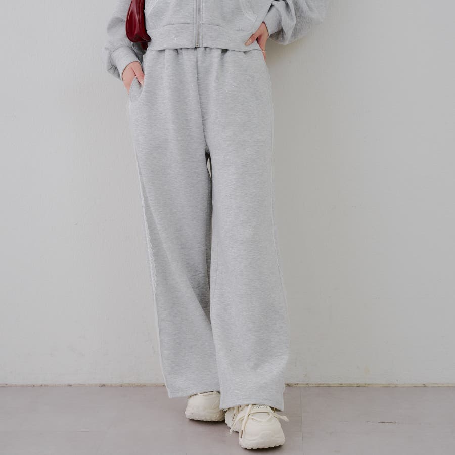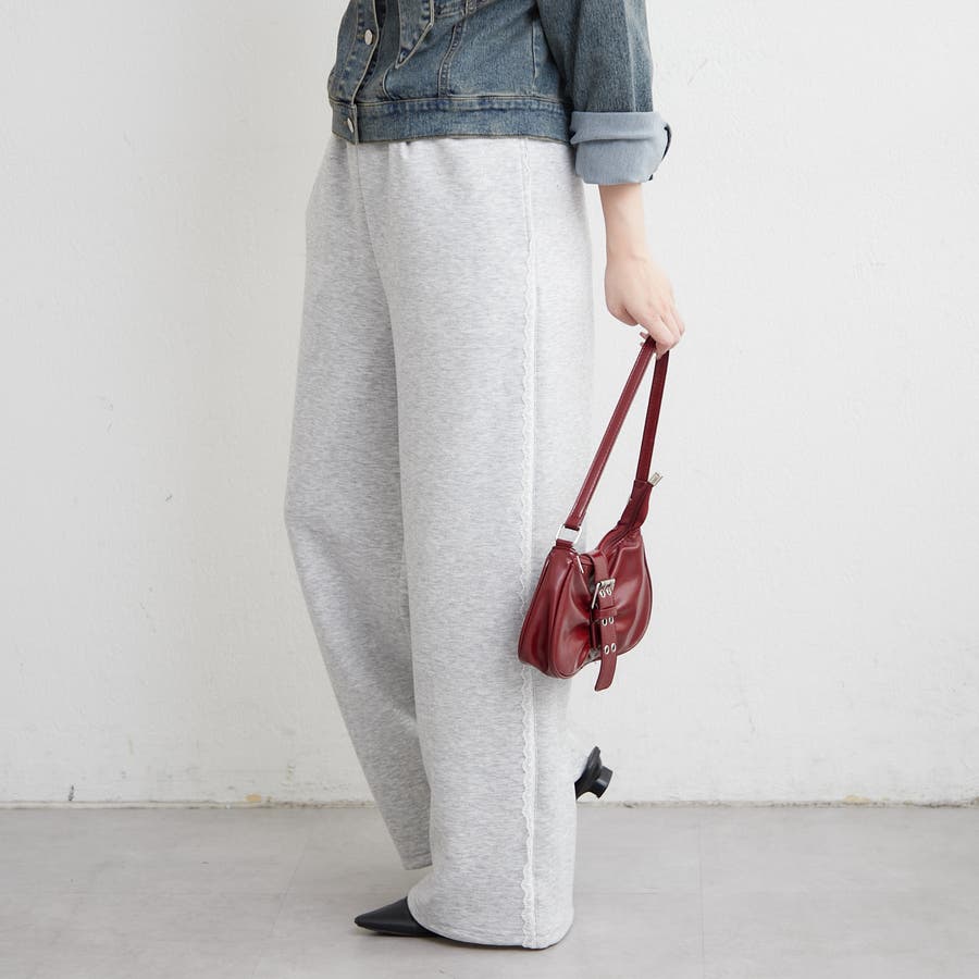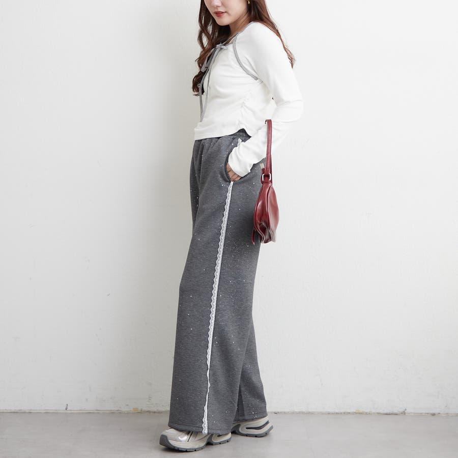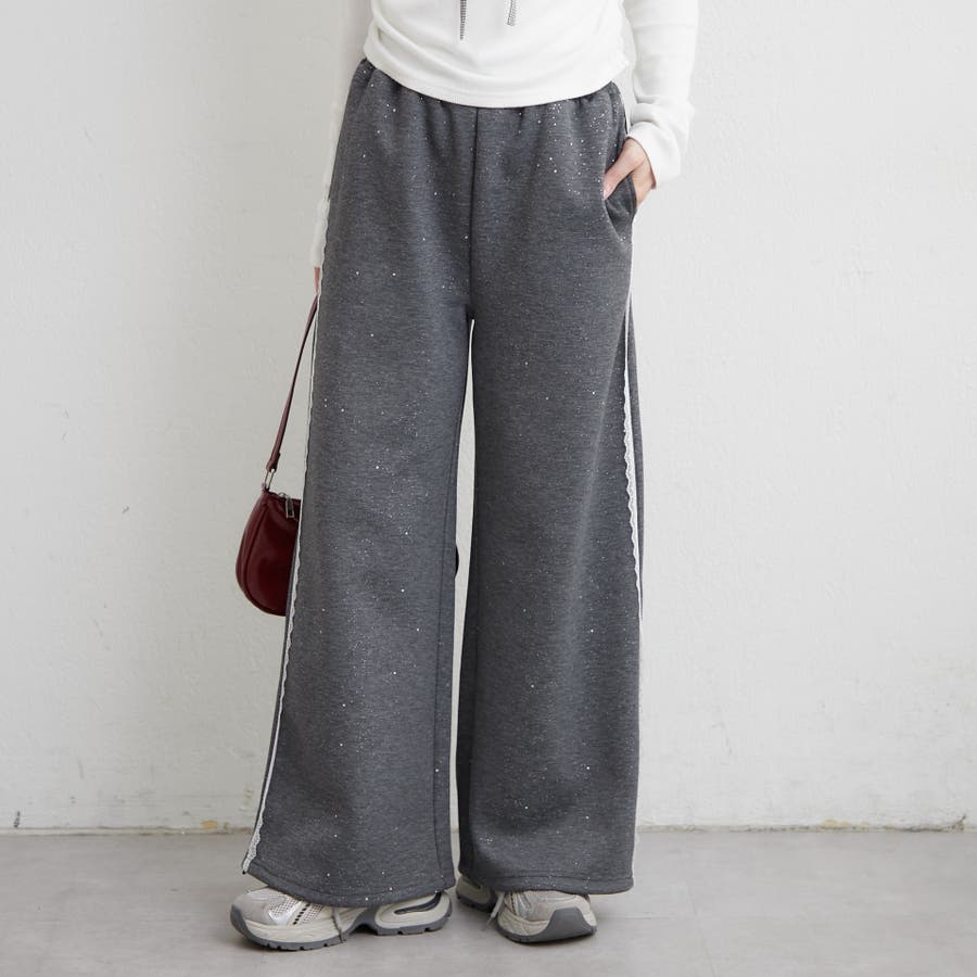 ・サイドにレースが施されたスウェットパンツ。