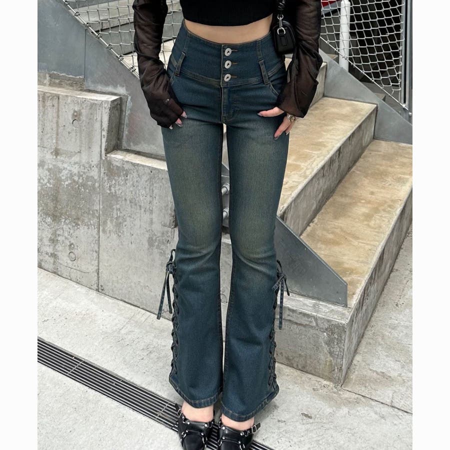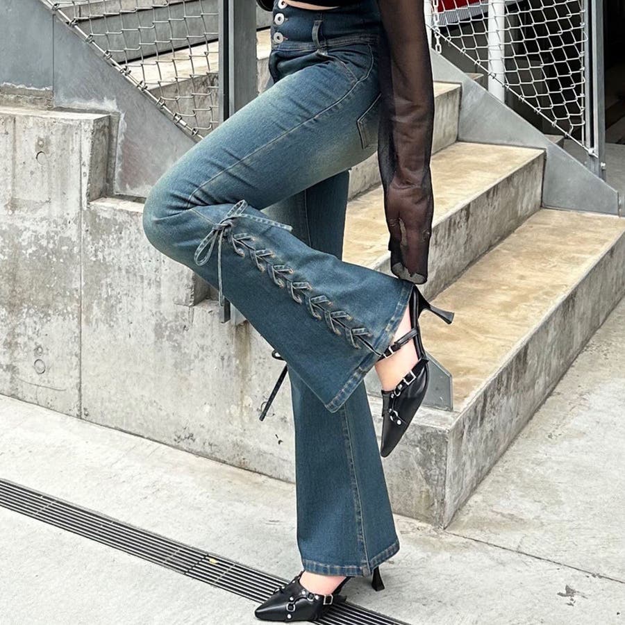 RMAF Remindmeandforever olivedesolive niceclaup 春 春服 春物 夏 夏服 夏物 韓国 韓国系 韓国風 韓国ファッション 10代 20代 30代 大人 人気 大人かわいい 大人カジュアル トレンド 新作 プチプラ パンツ ズボン フレアパンツ デニム デニムパンツ デニムフレアパンツ レースアップ レースアップパンツ ハイウエストパンツ ハイウエスト 6061020170
