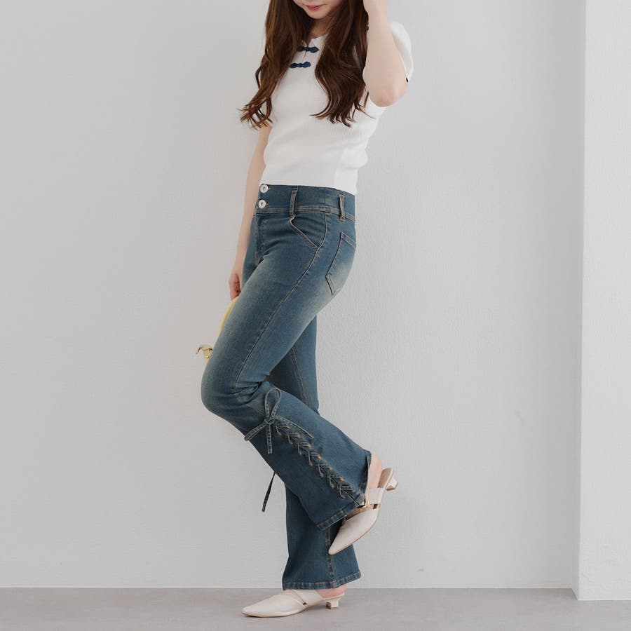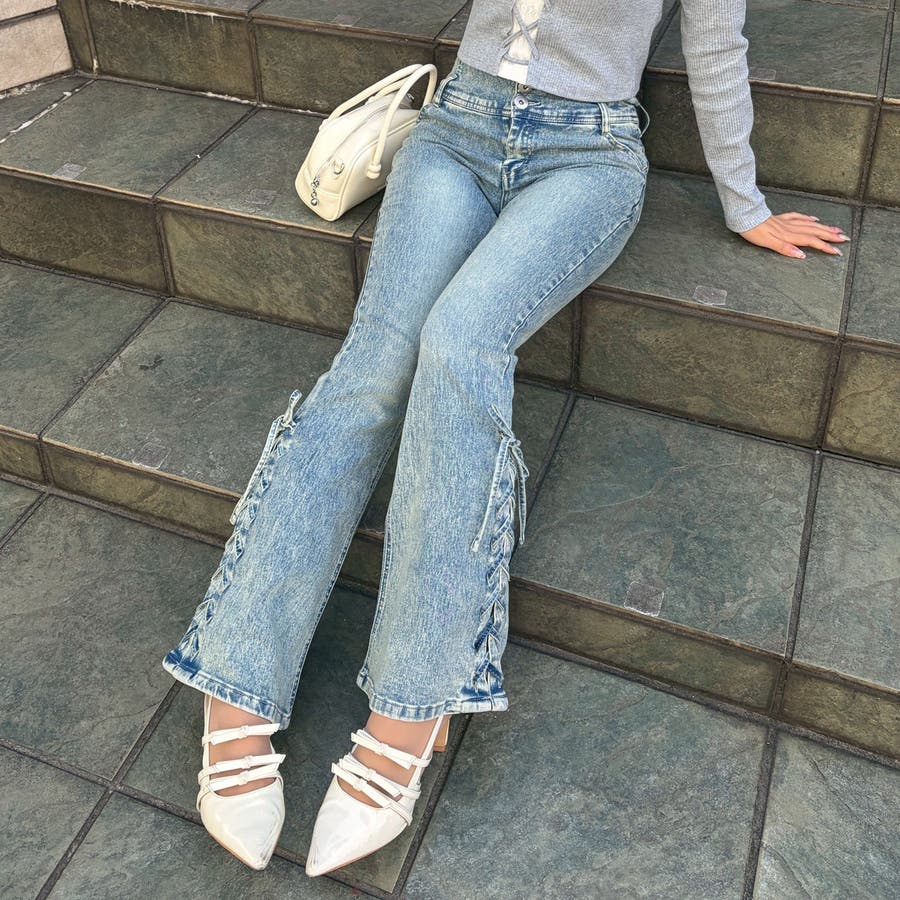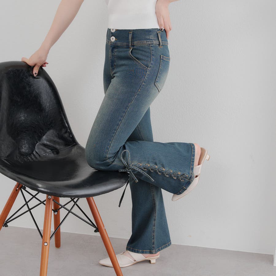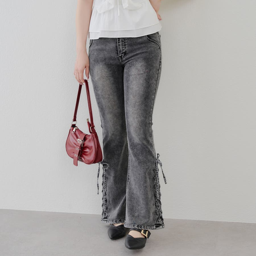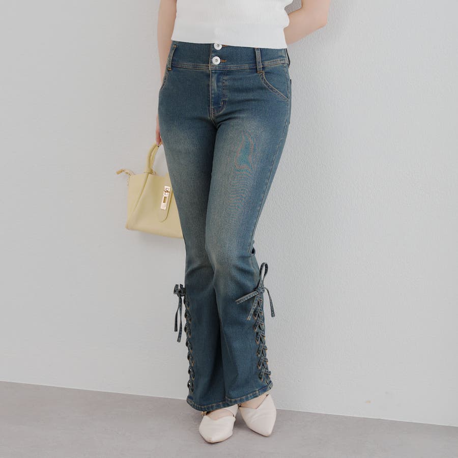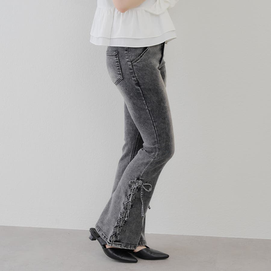 サイドレースアップセミフレアデニム