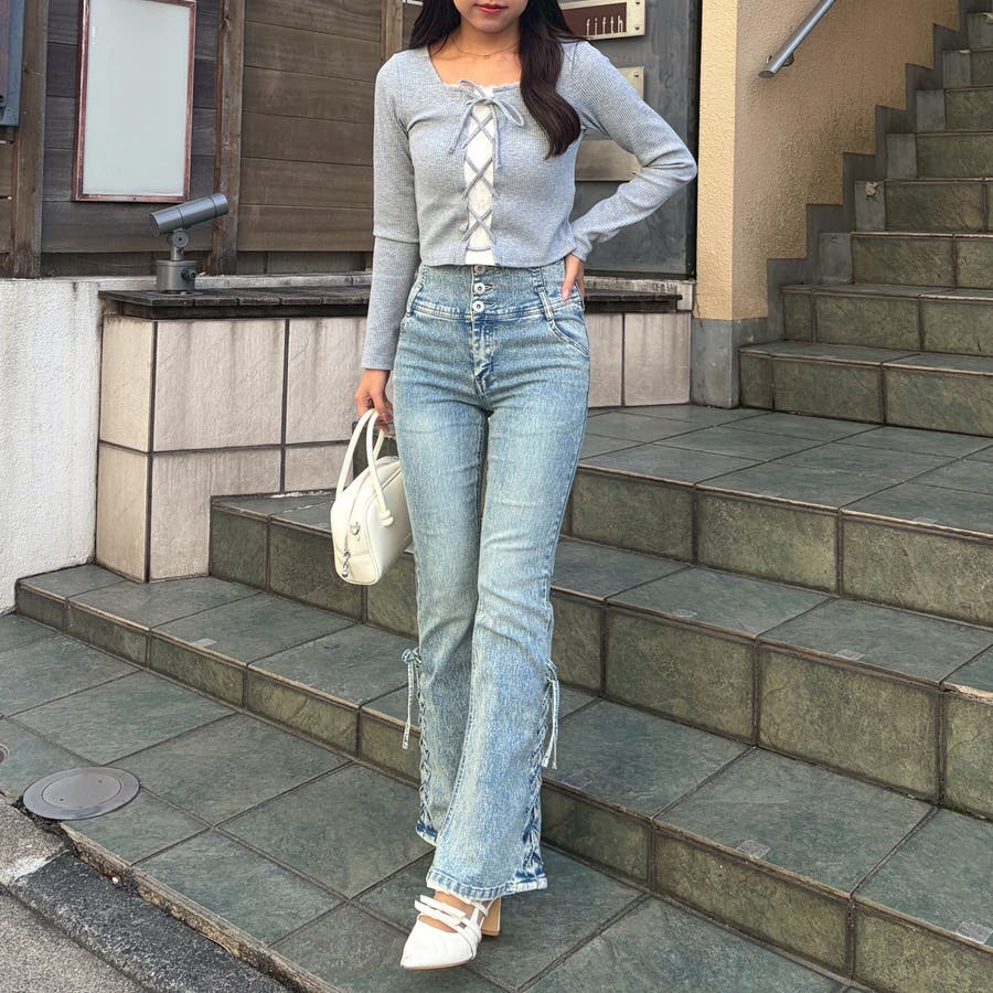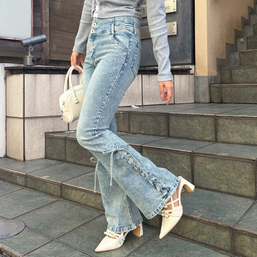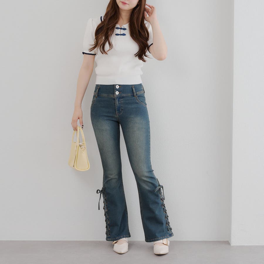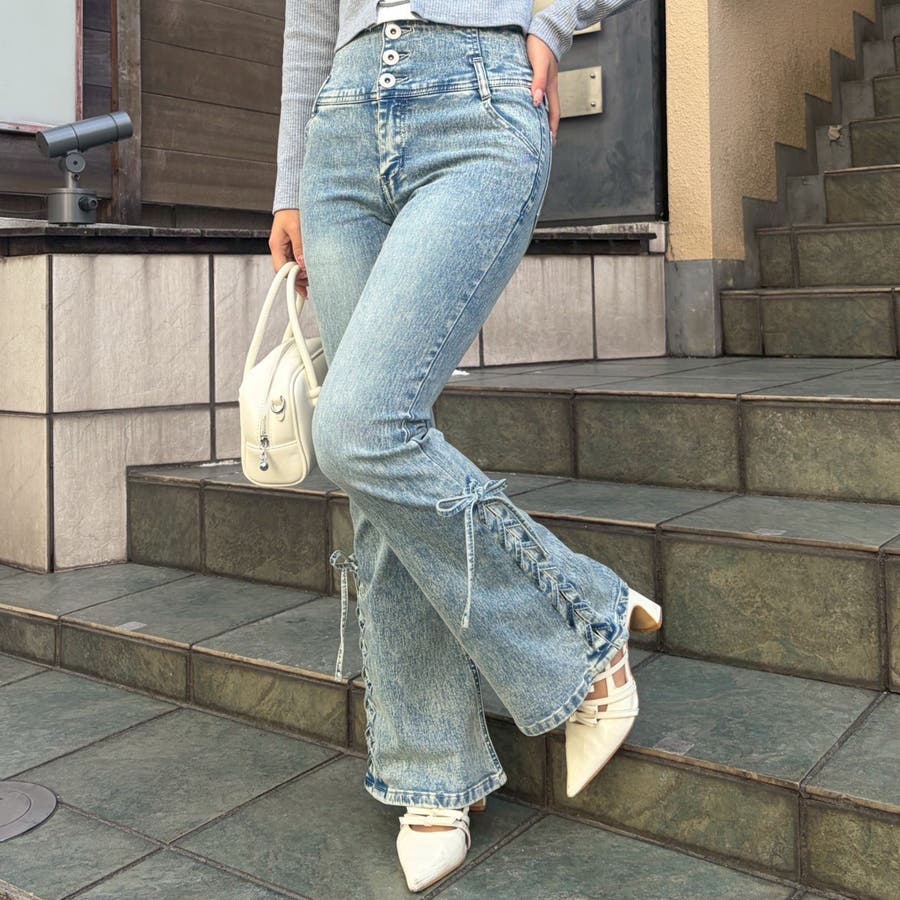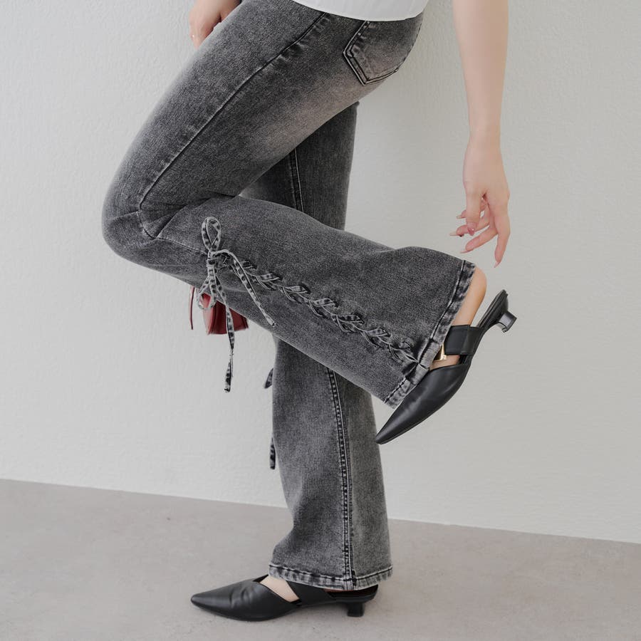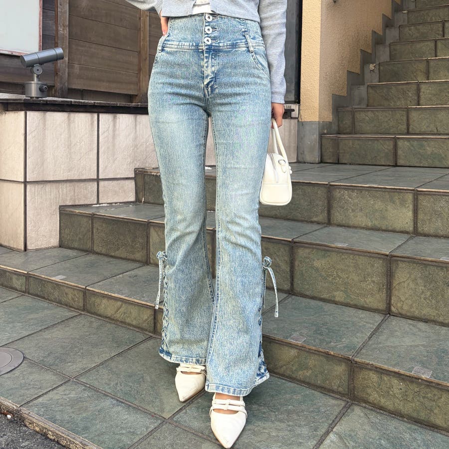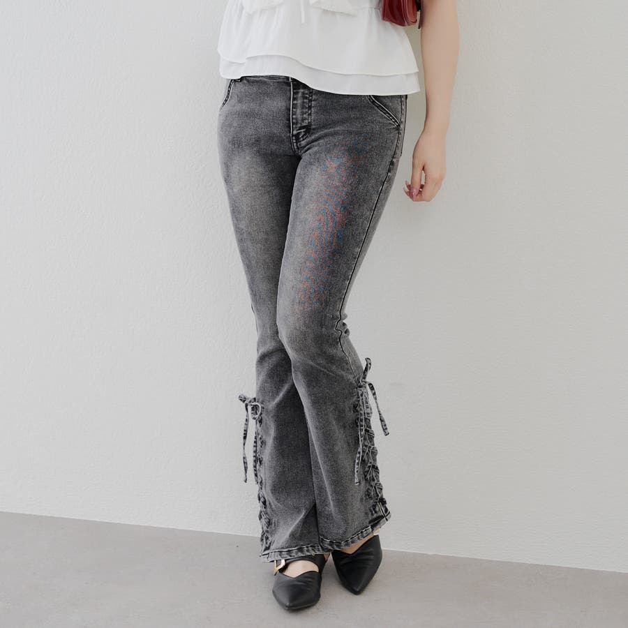 サイドレースアップセミフレアデニム