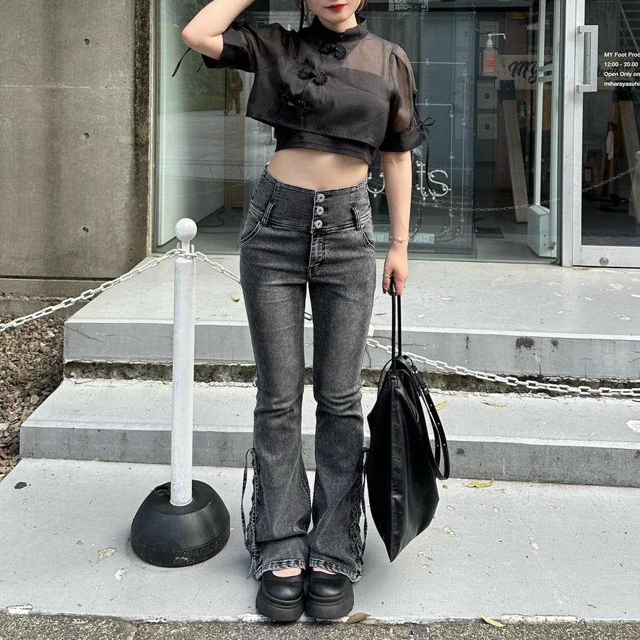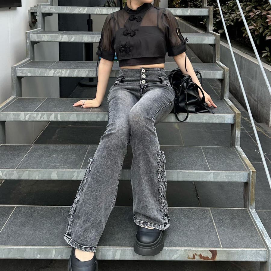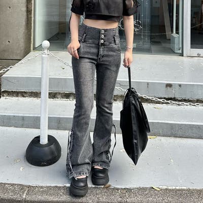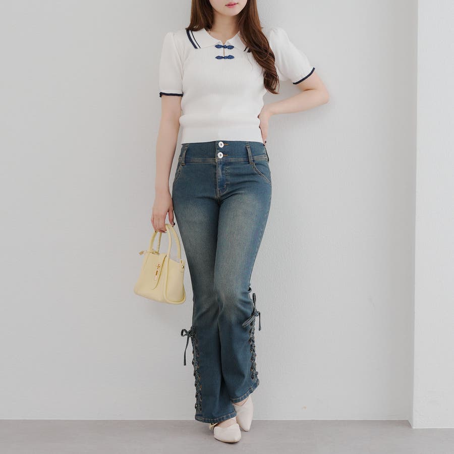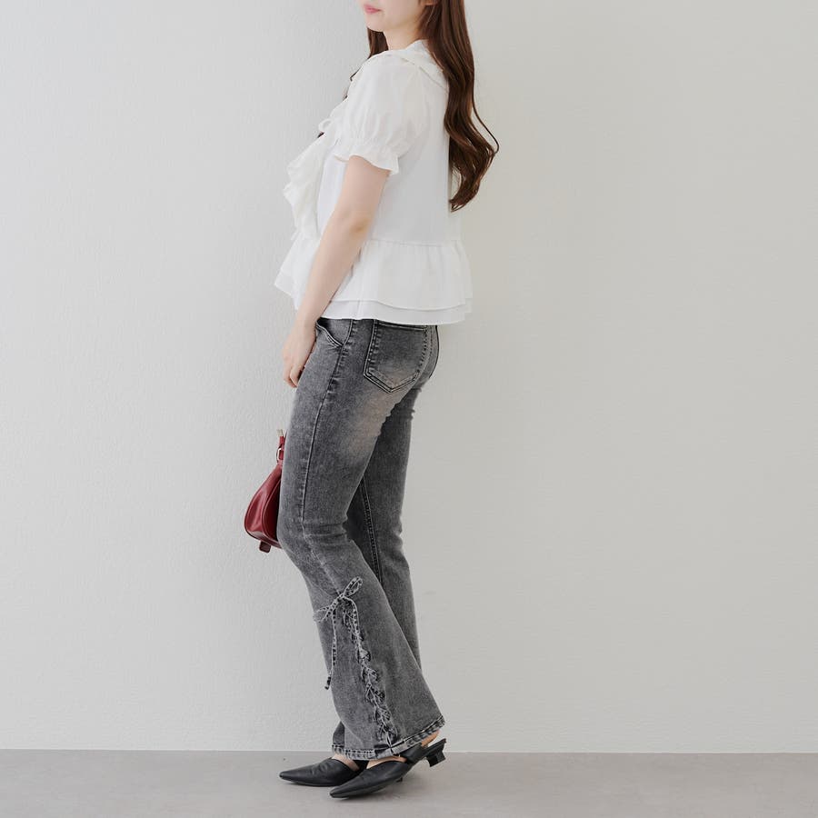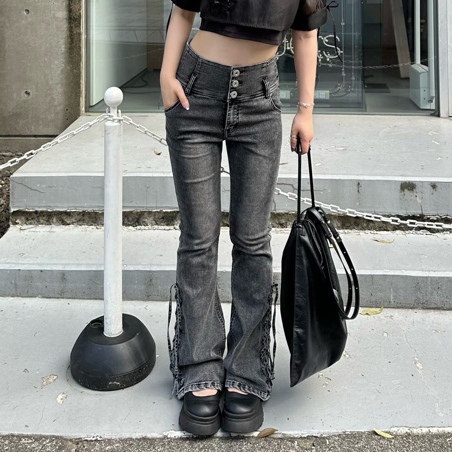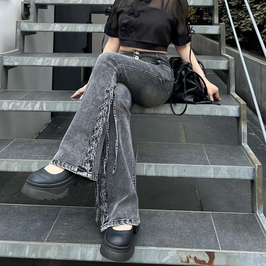 サイドレースアップセミフレアデニム