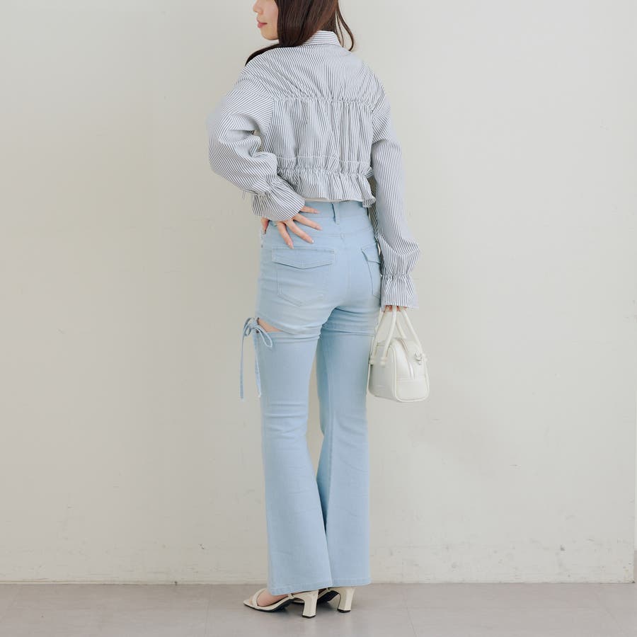 ・ハイウエストのフレアパンツで美脚見えコーデ