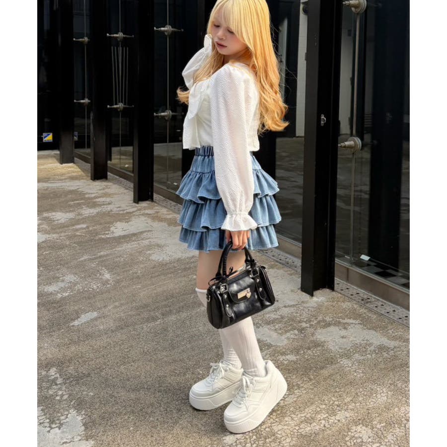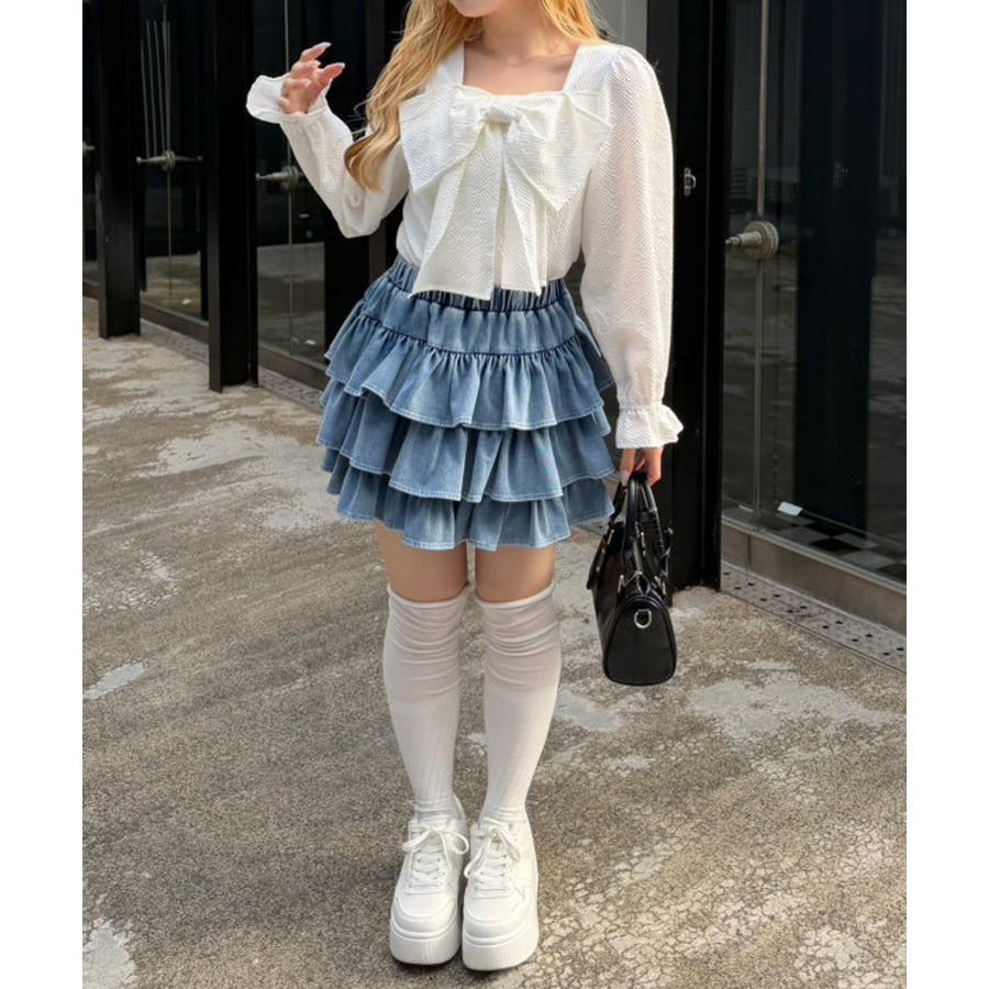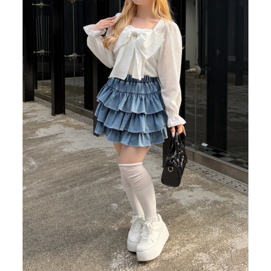 ・デニムミニスカートと合わせて、とことんキュートに着こなして