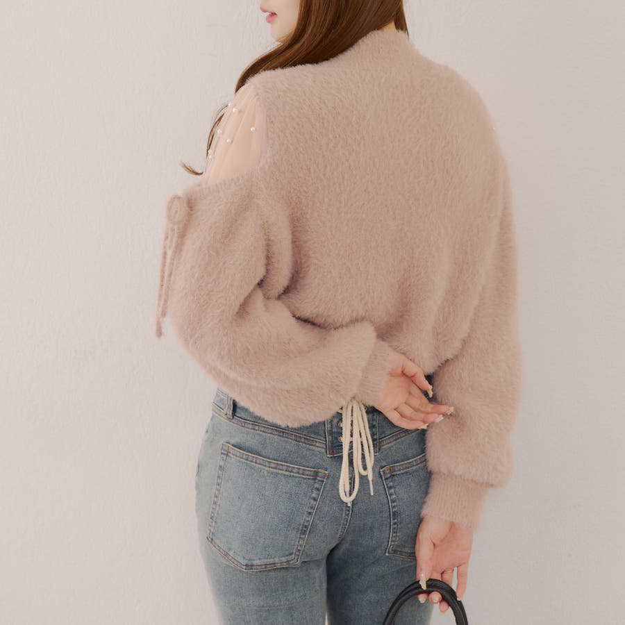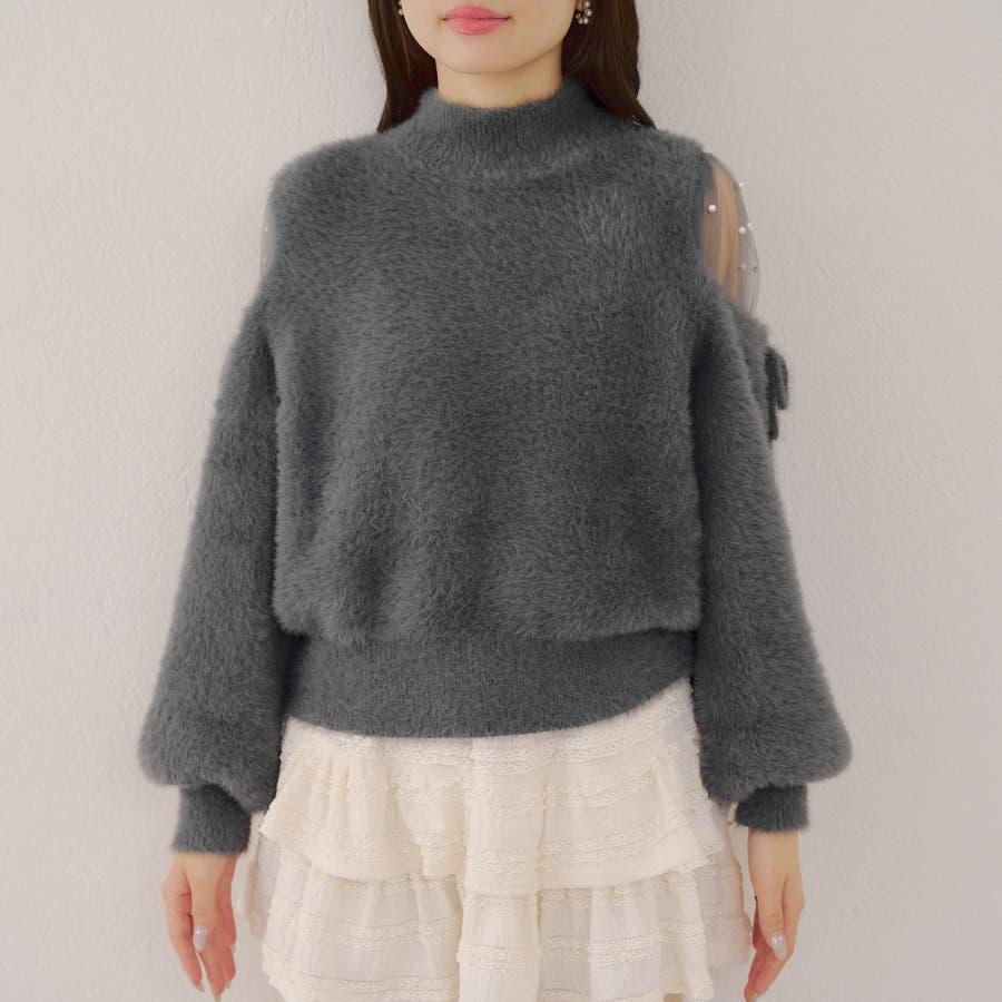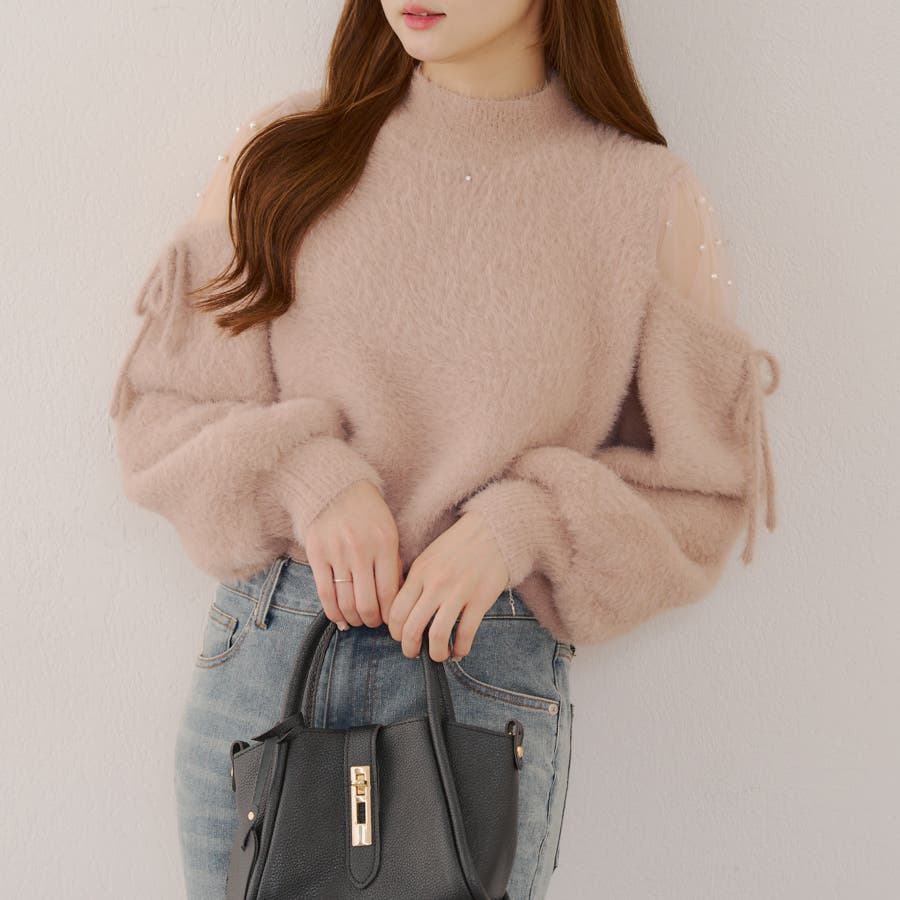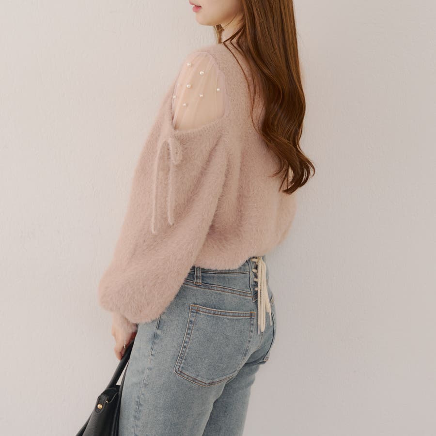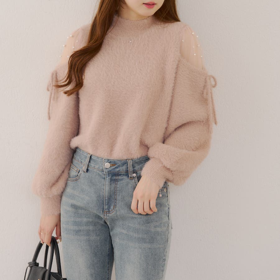 RMAF Remindmeandforever olivedesolive niceclaup 冬 冬服 冬物 春 春服 春物 韓国 韓国系 韓国風 韓国ファッション 10代 20代 30代 大人 人気 大人かわいい 大人カジュアル トレンド 新作 プチプラ トップス ニット ニットトップス パール 肩開きニット リボン シャギーニット ガーリー 6061050120