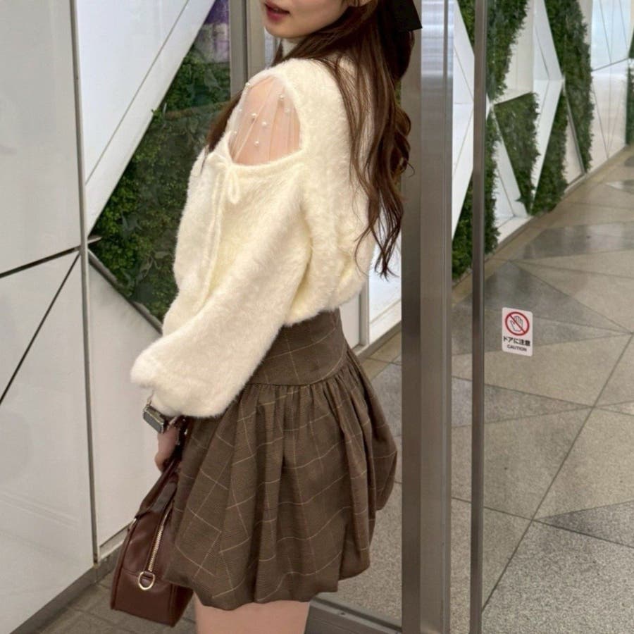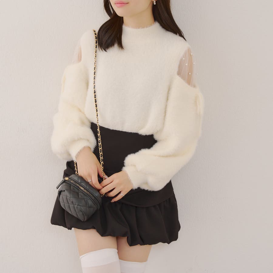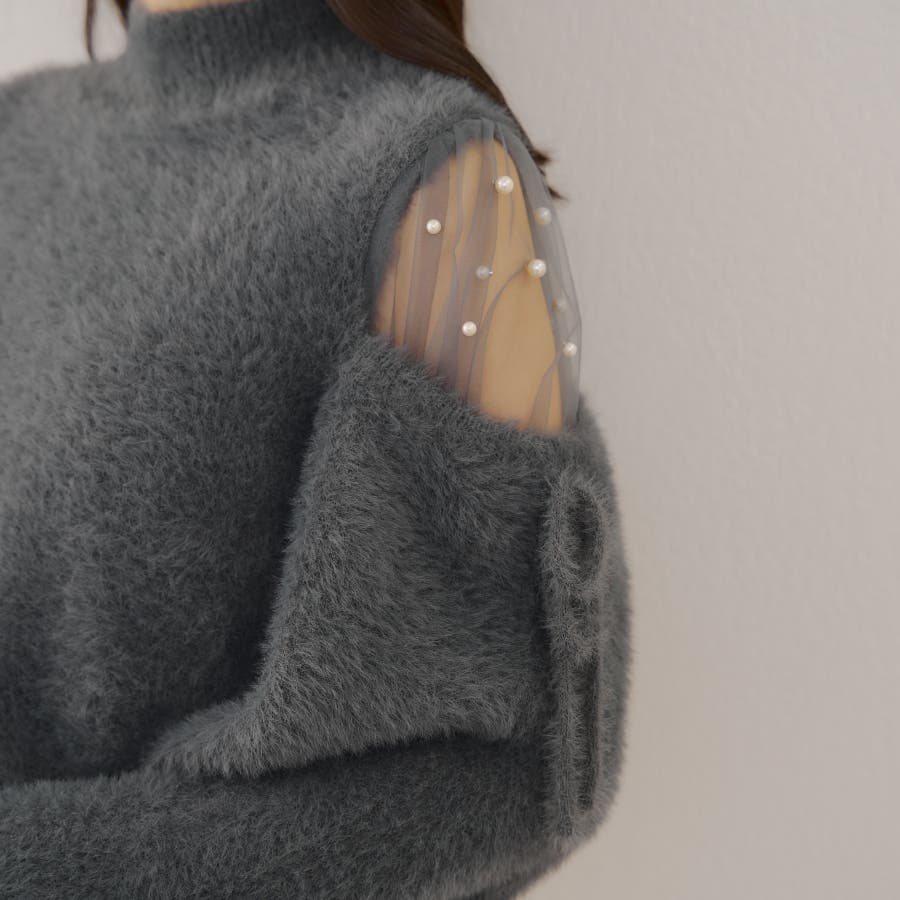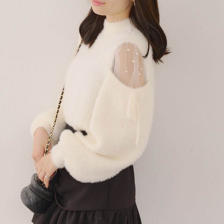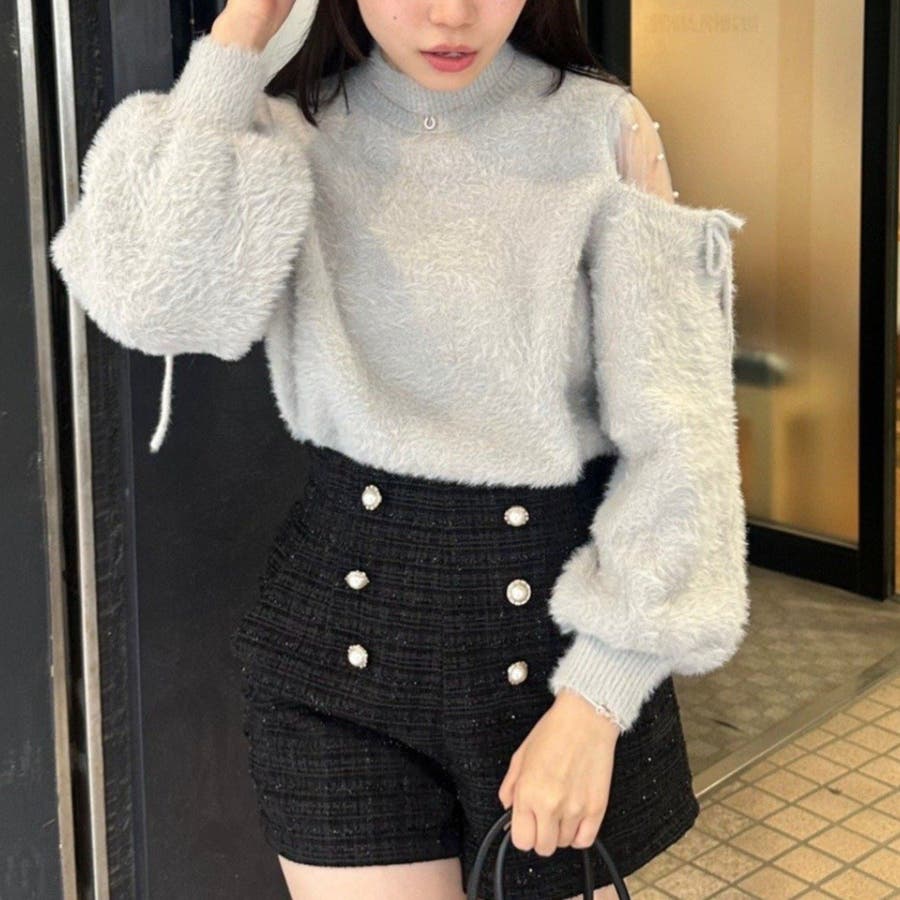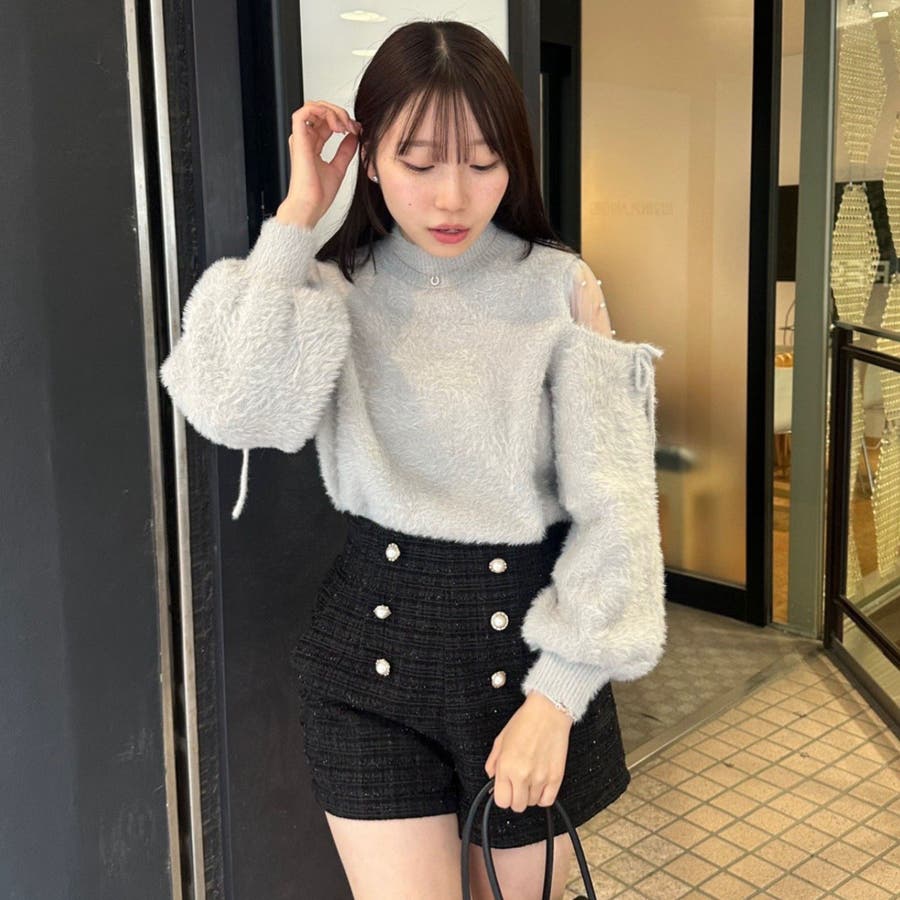 RMAF Remindmeandforever olivedesolive niceclaup 冬 冬服 冬物 春 春服 春物 韓国 韓国系 韓国風 韓国ファッション 10代 20代 30代 大人 人気 大人かわいい 大人カジュアル トレンド 新作 プチプラ トップス ニット ニットトップス パール 肩開きニット リボン シャギーニット ガーリー 6061050120